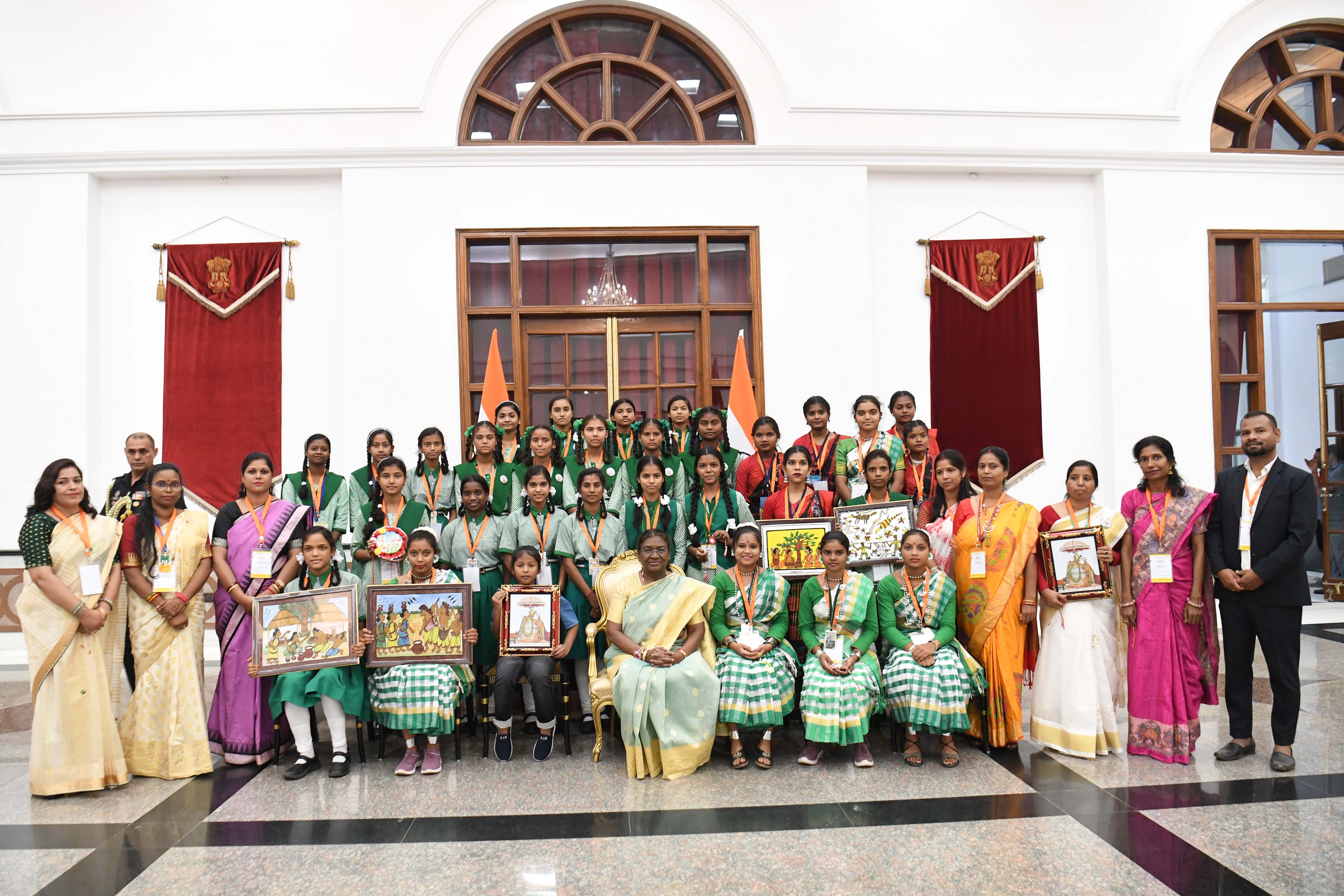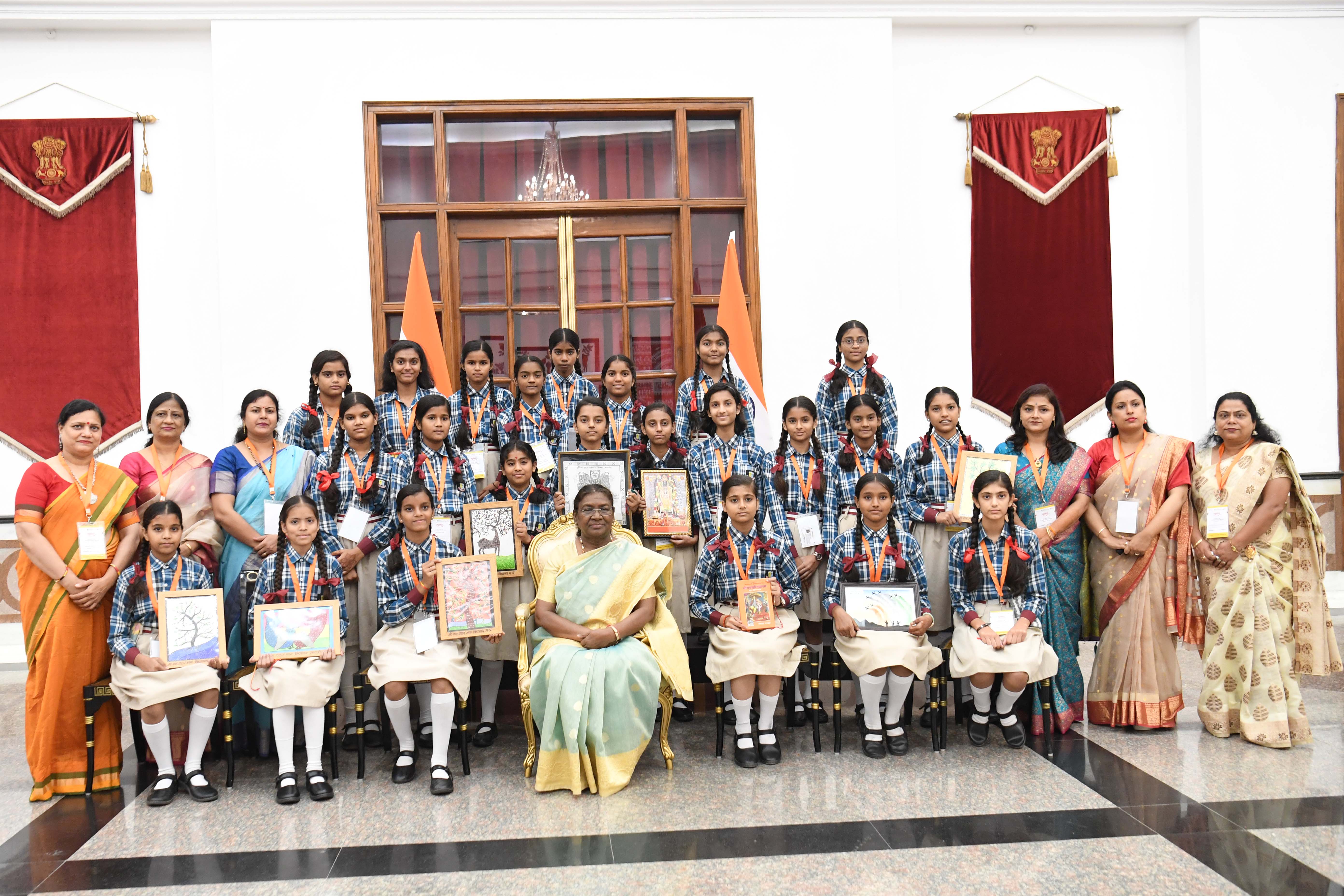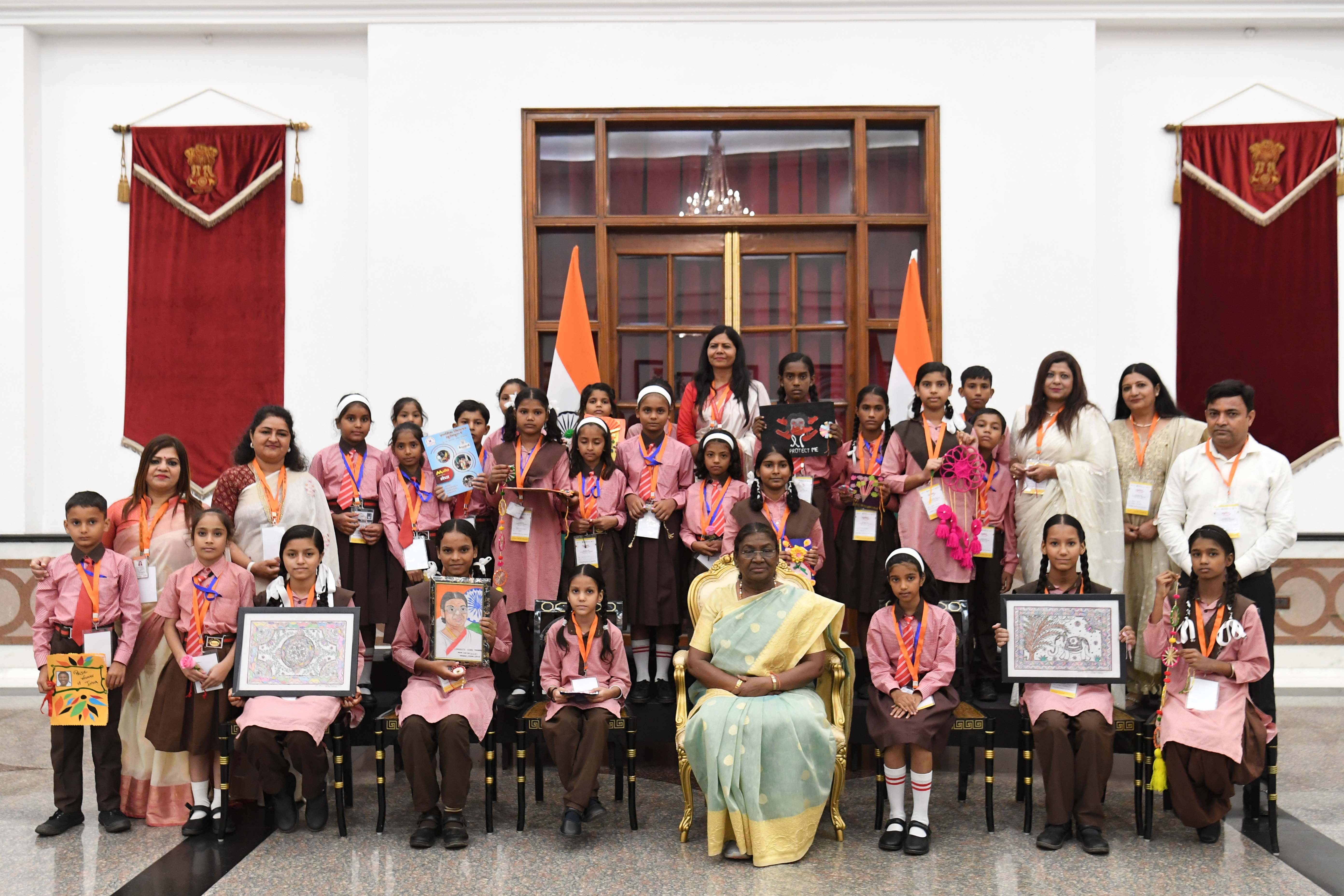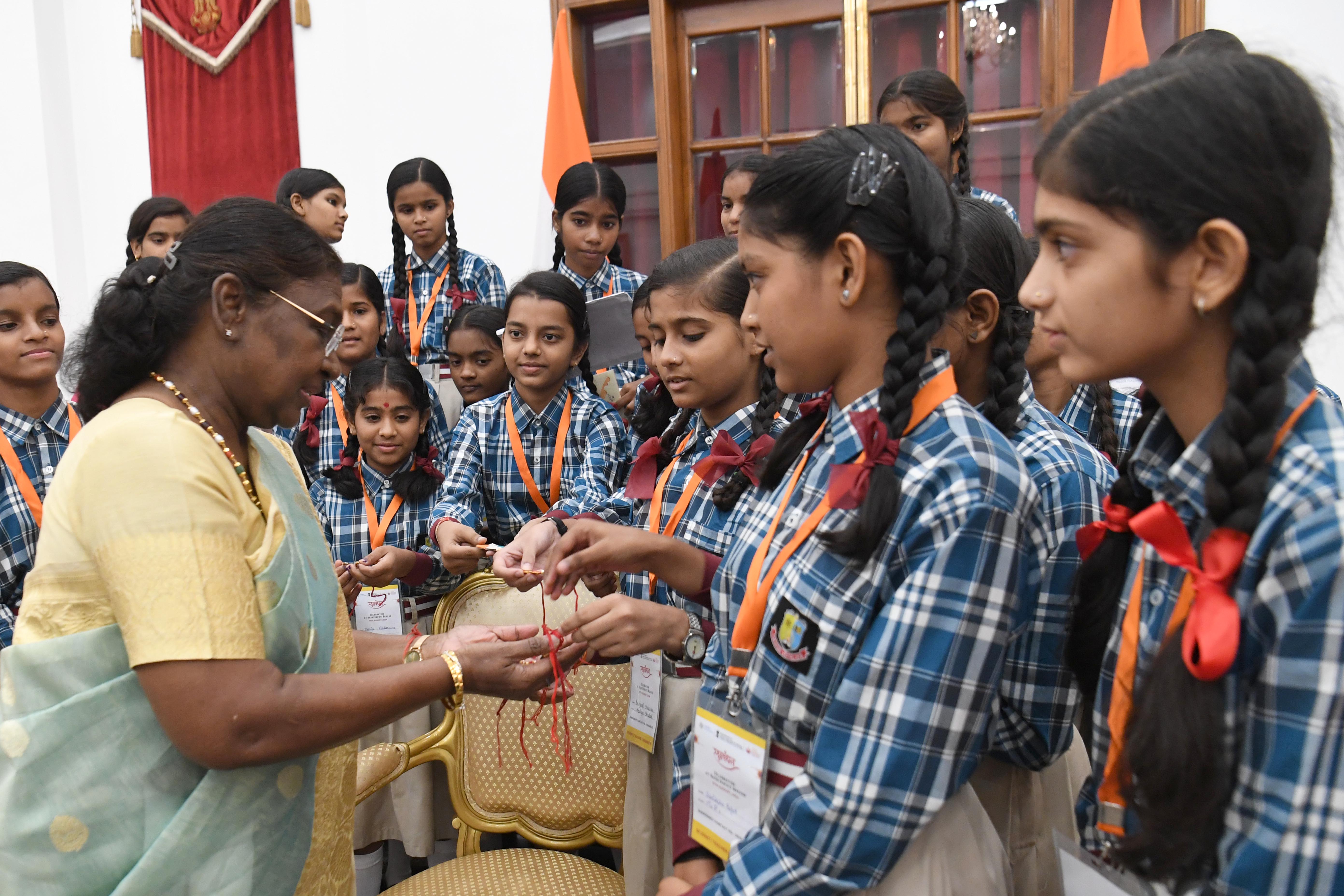 | Caption: | The President of India, Smt Droupadi Murmu interacting with the Children on the occasion of Raksha Bandhan at Rashtrapati Bhavan, New Delhi on August 19, 2024. |