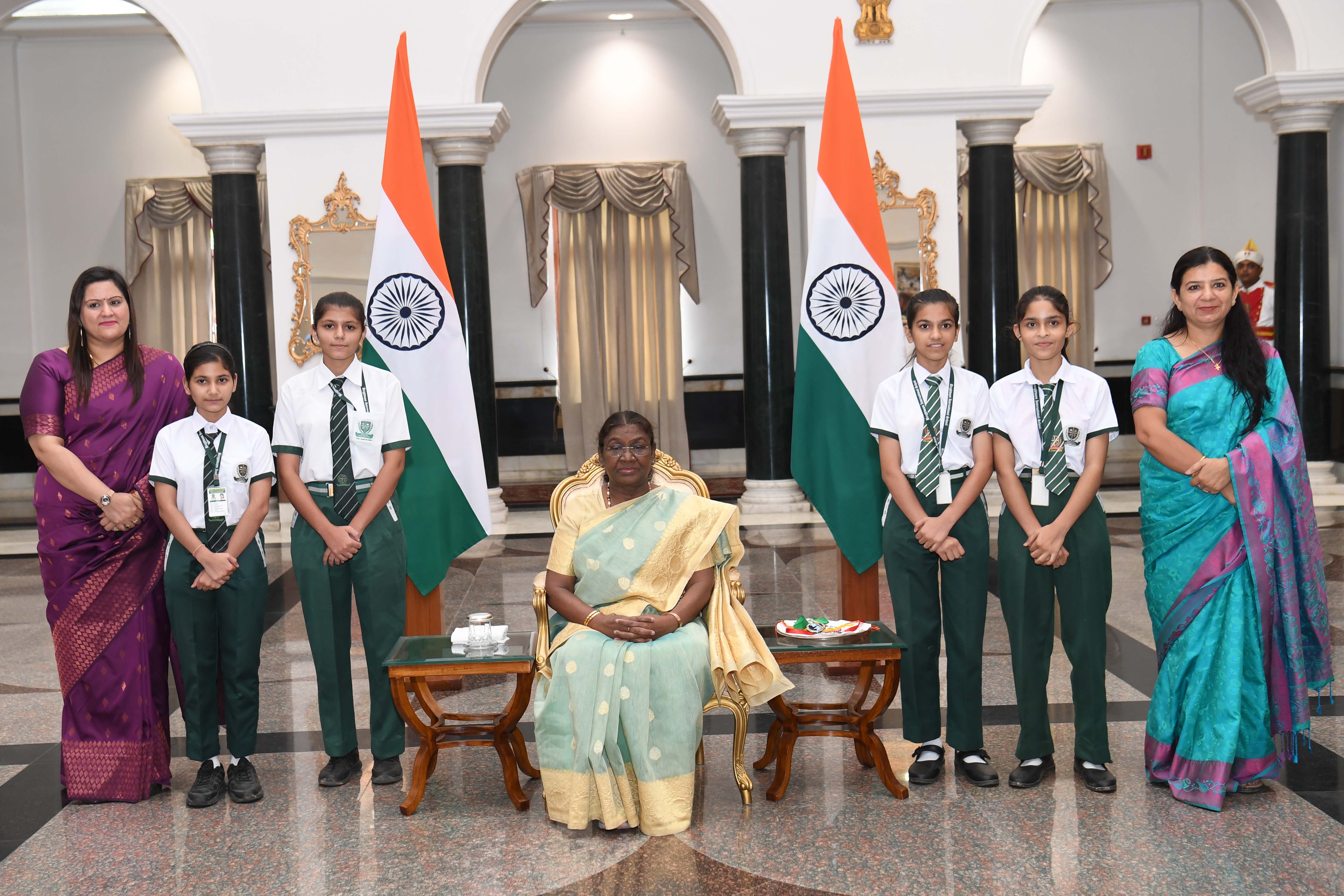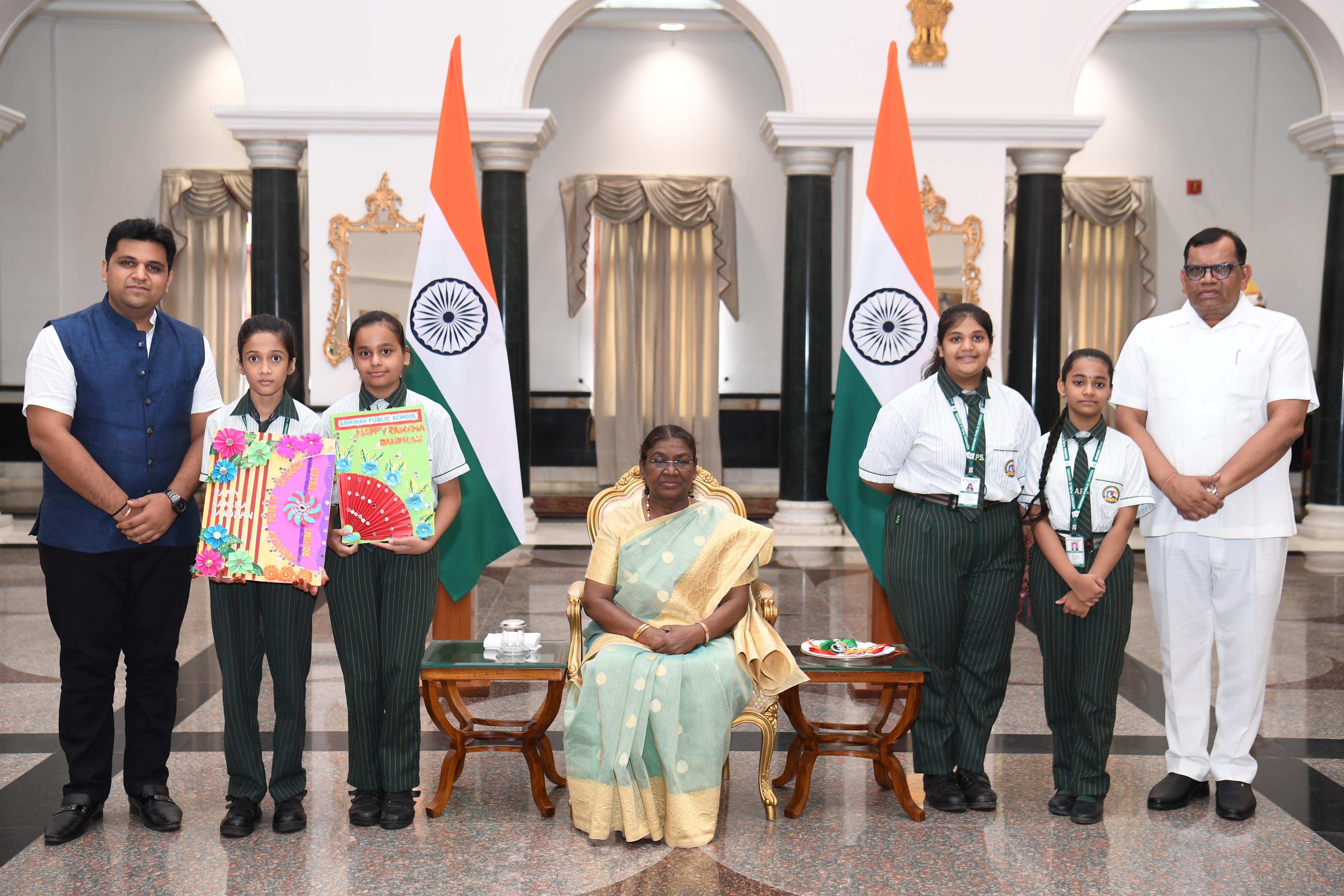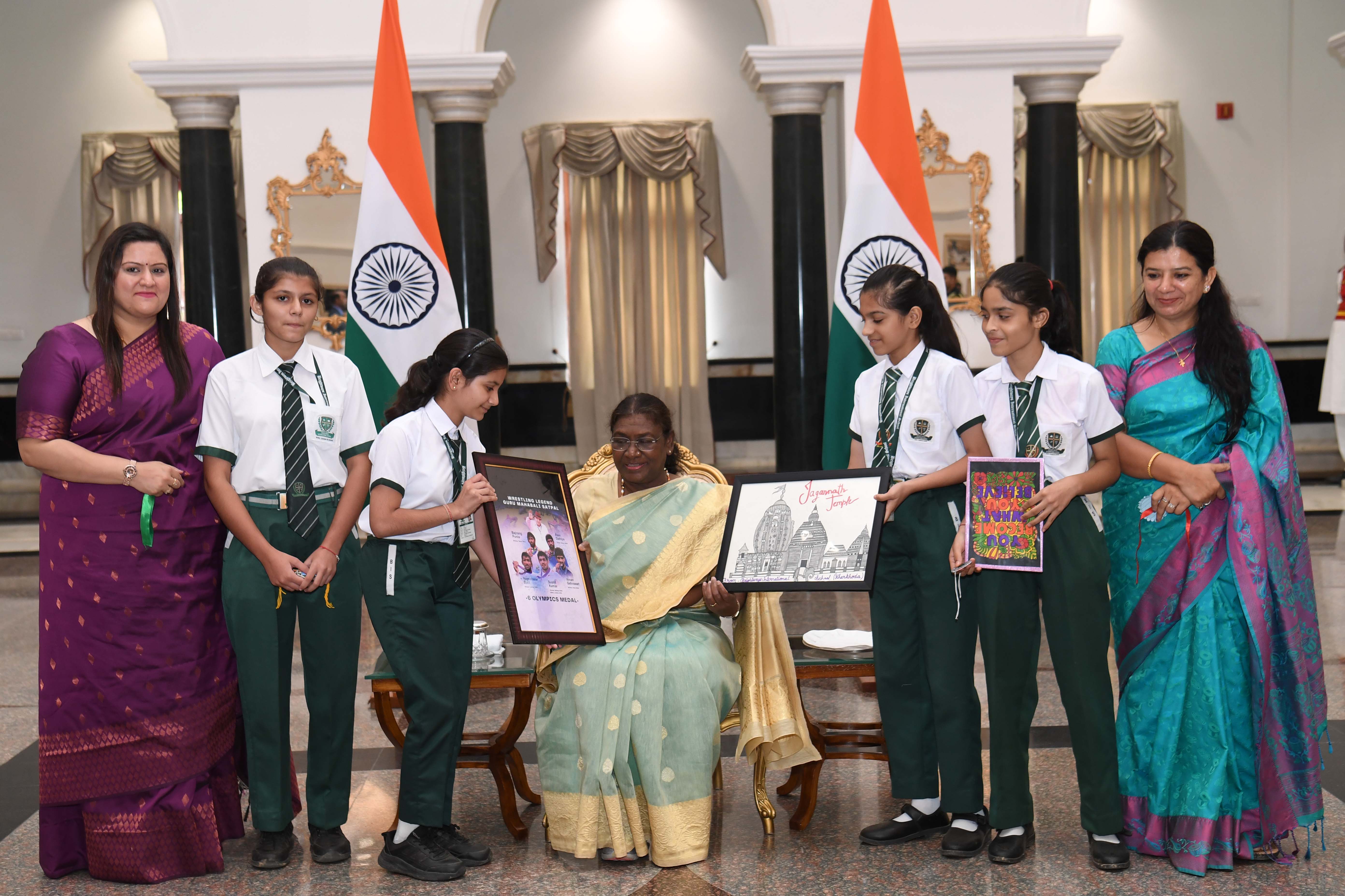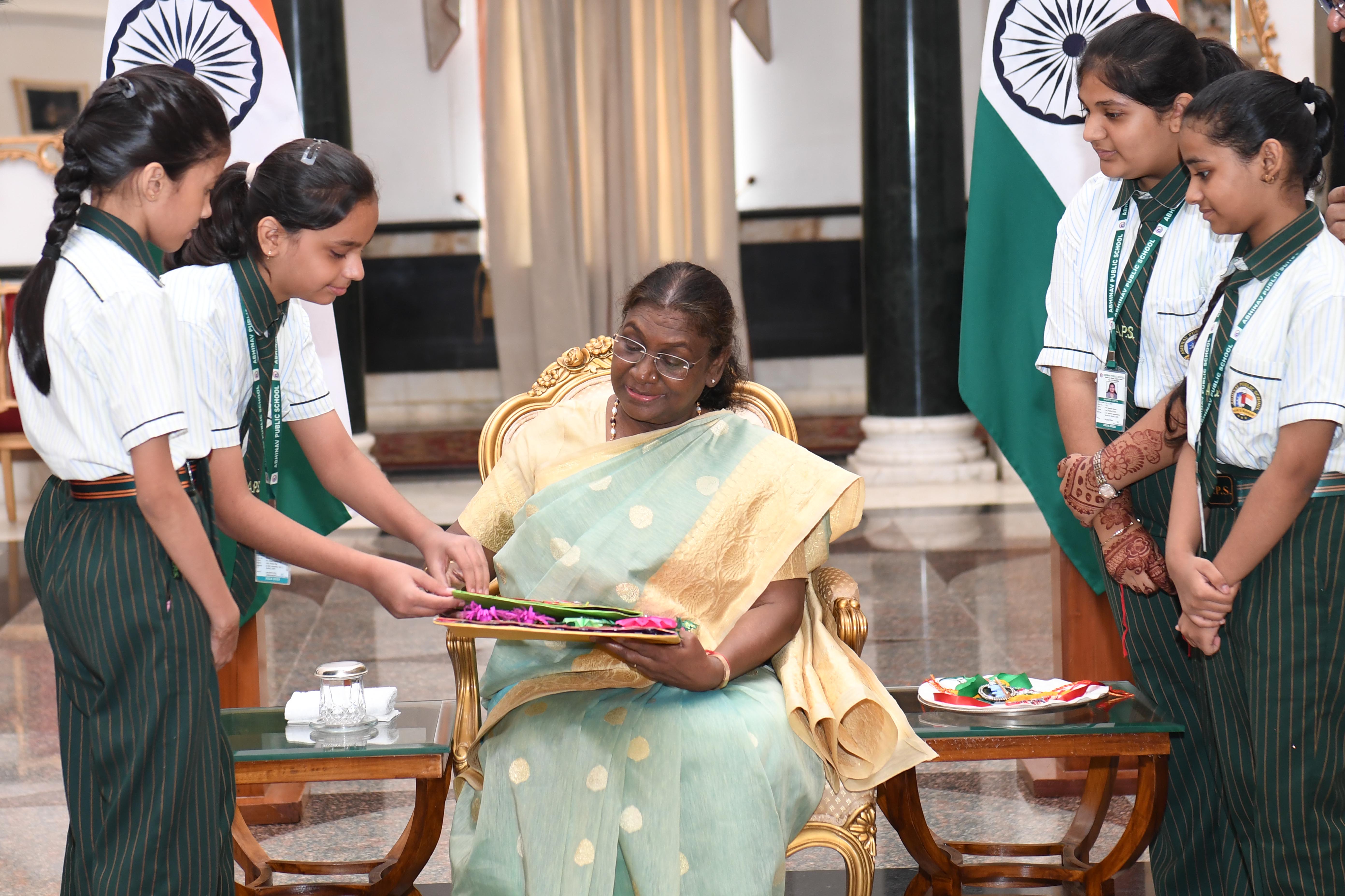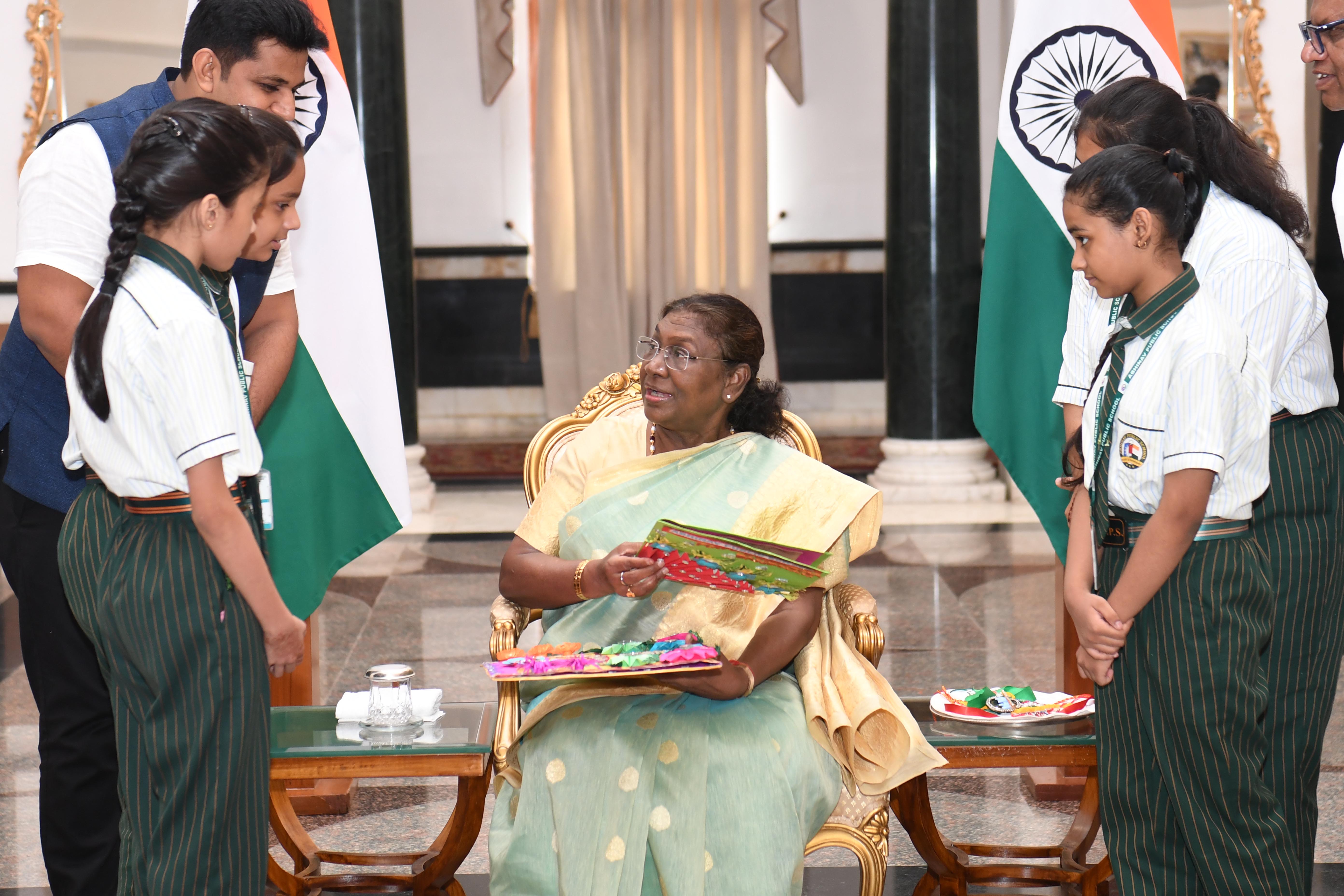 | Caption: | The President of India, Smt Droupadi Murmu interacting with the Children on the occasion of Raksha Bandhan at Rashtrapati Bhavan, New Delhi on August 19, 2024. |