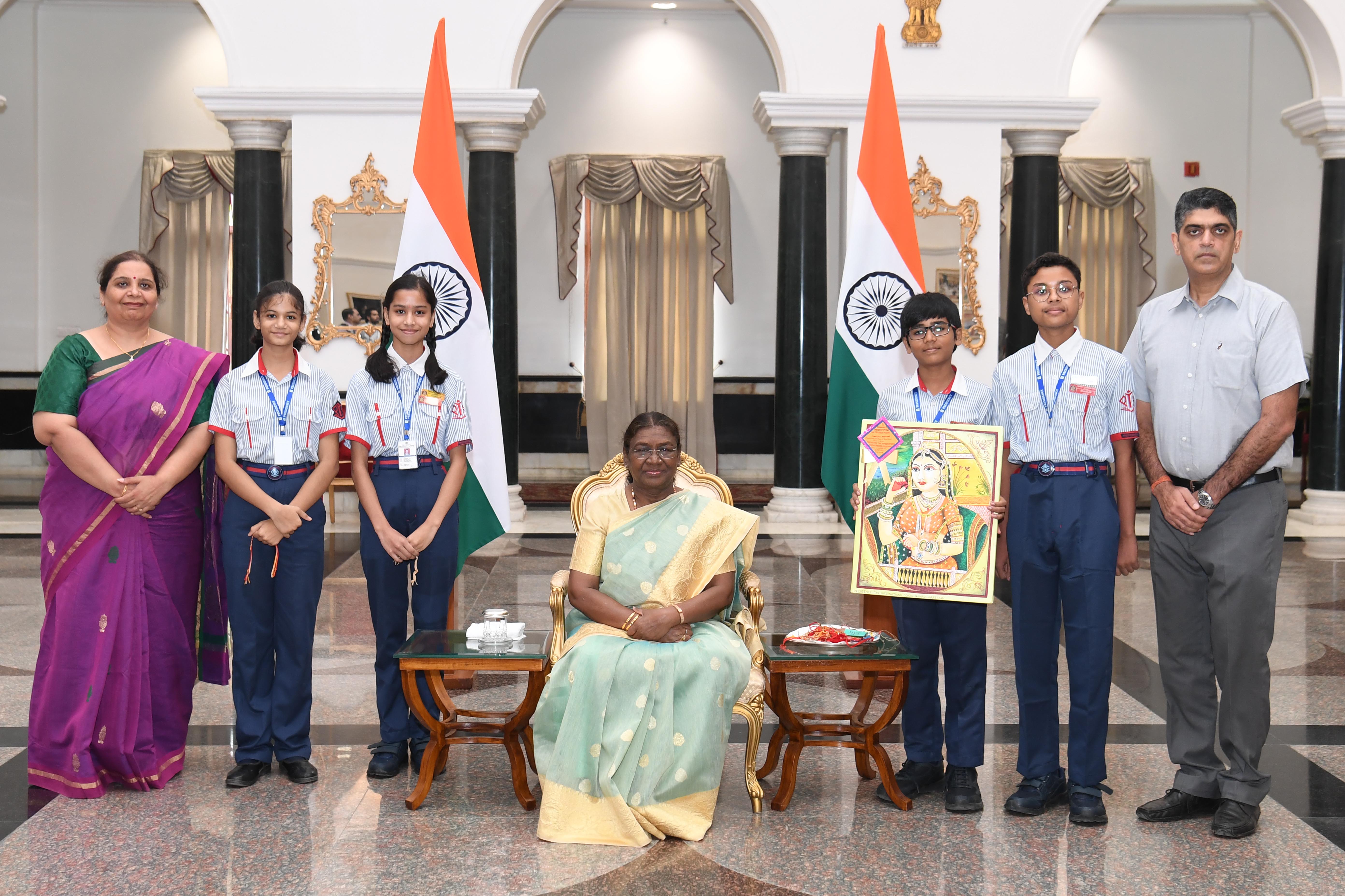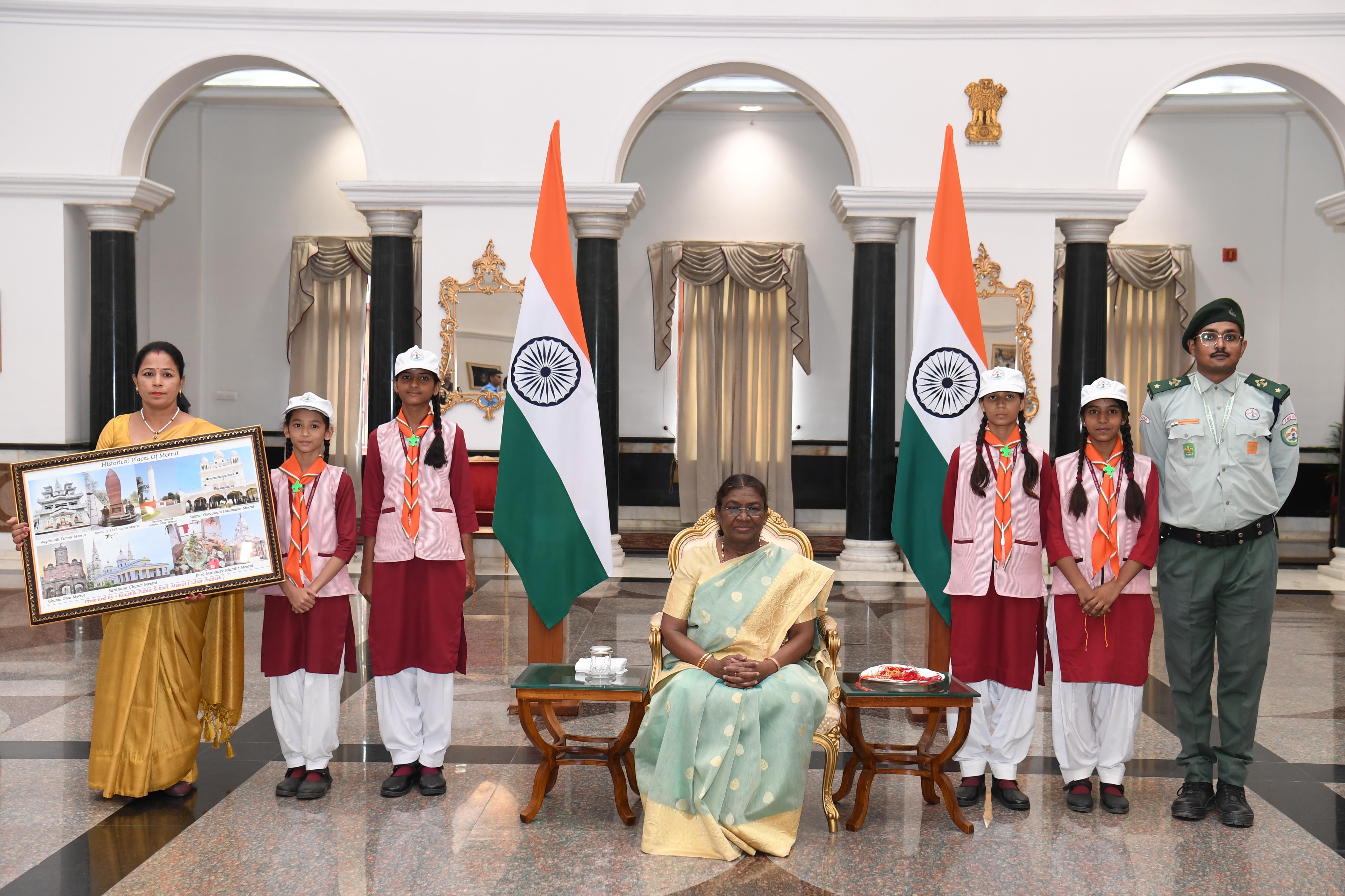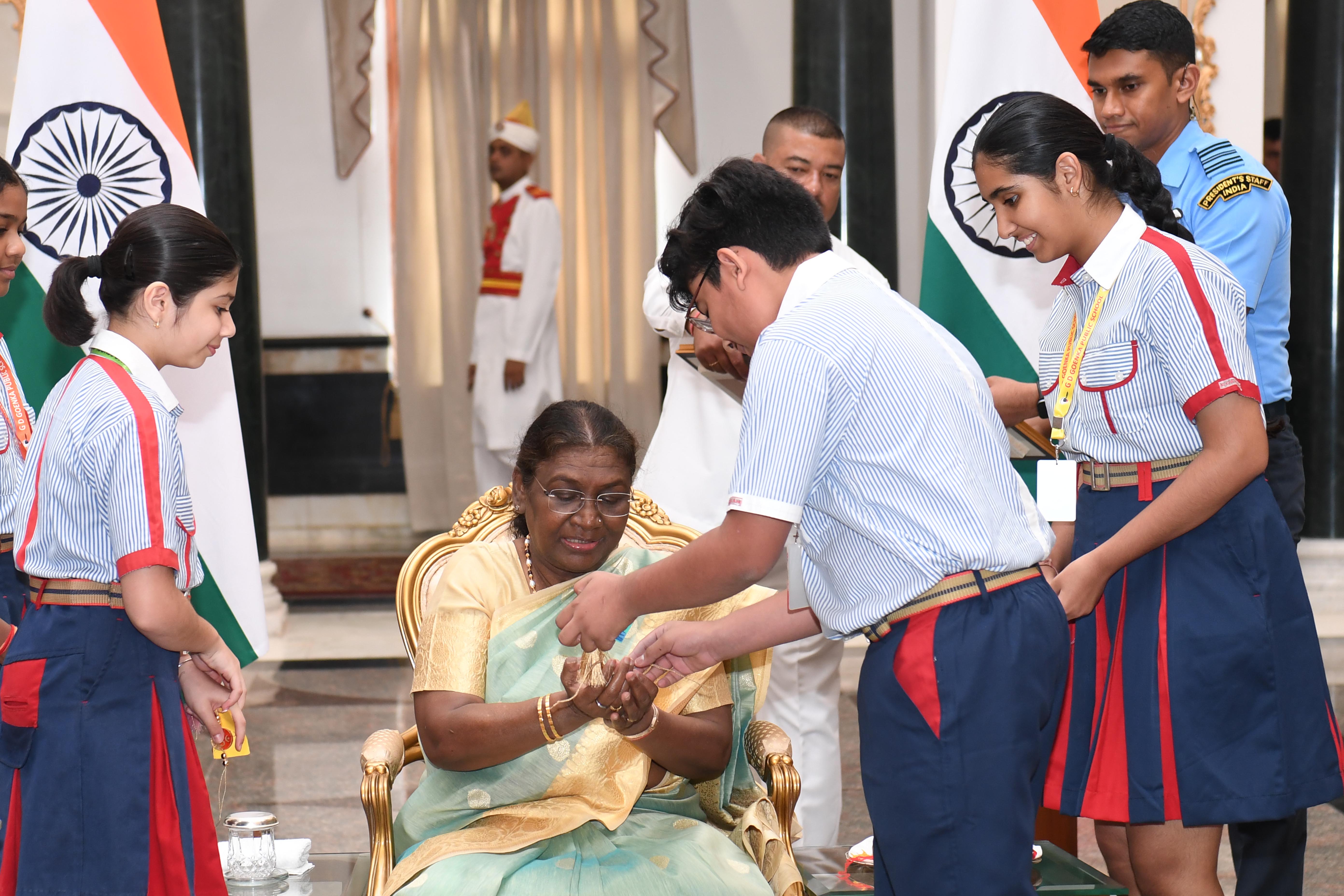 | Caption: | The President of India, Smt Droupadi Murmu interacting with the Children on the occasion of Raksha Bandhan at Rashtrapati Bhavan, New Delhi on August 19, 2024. |