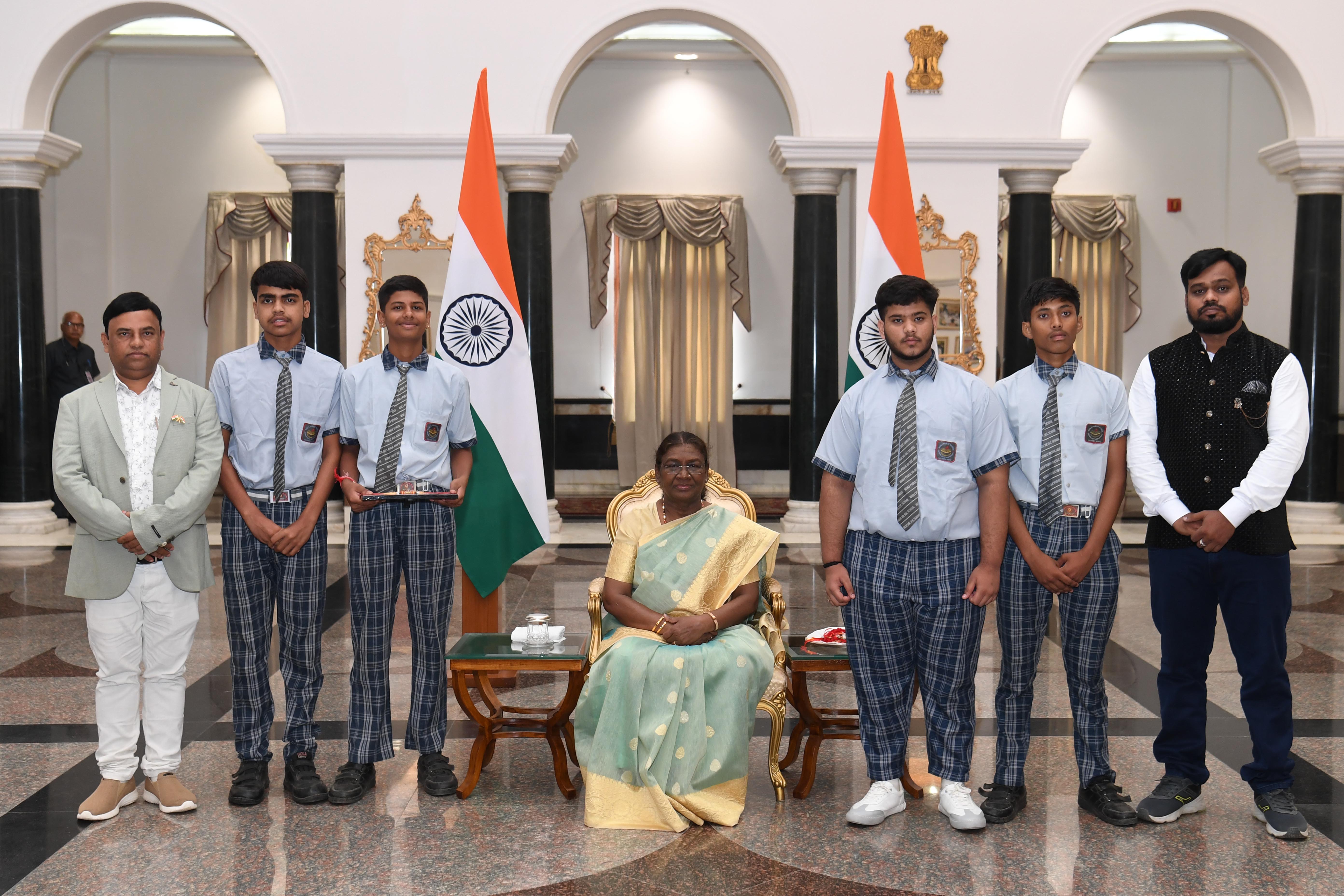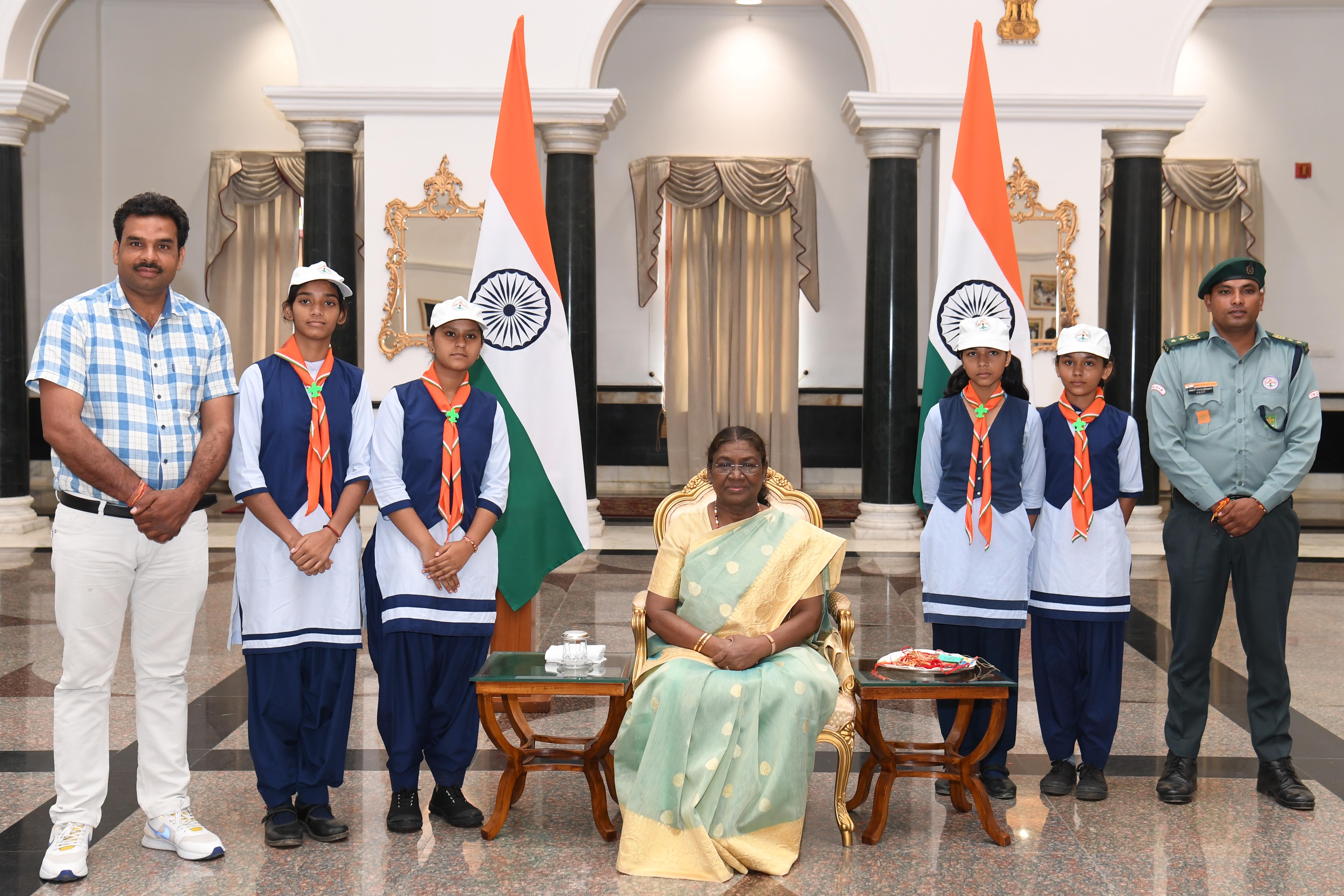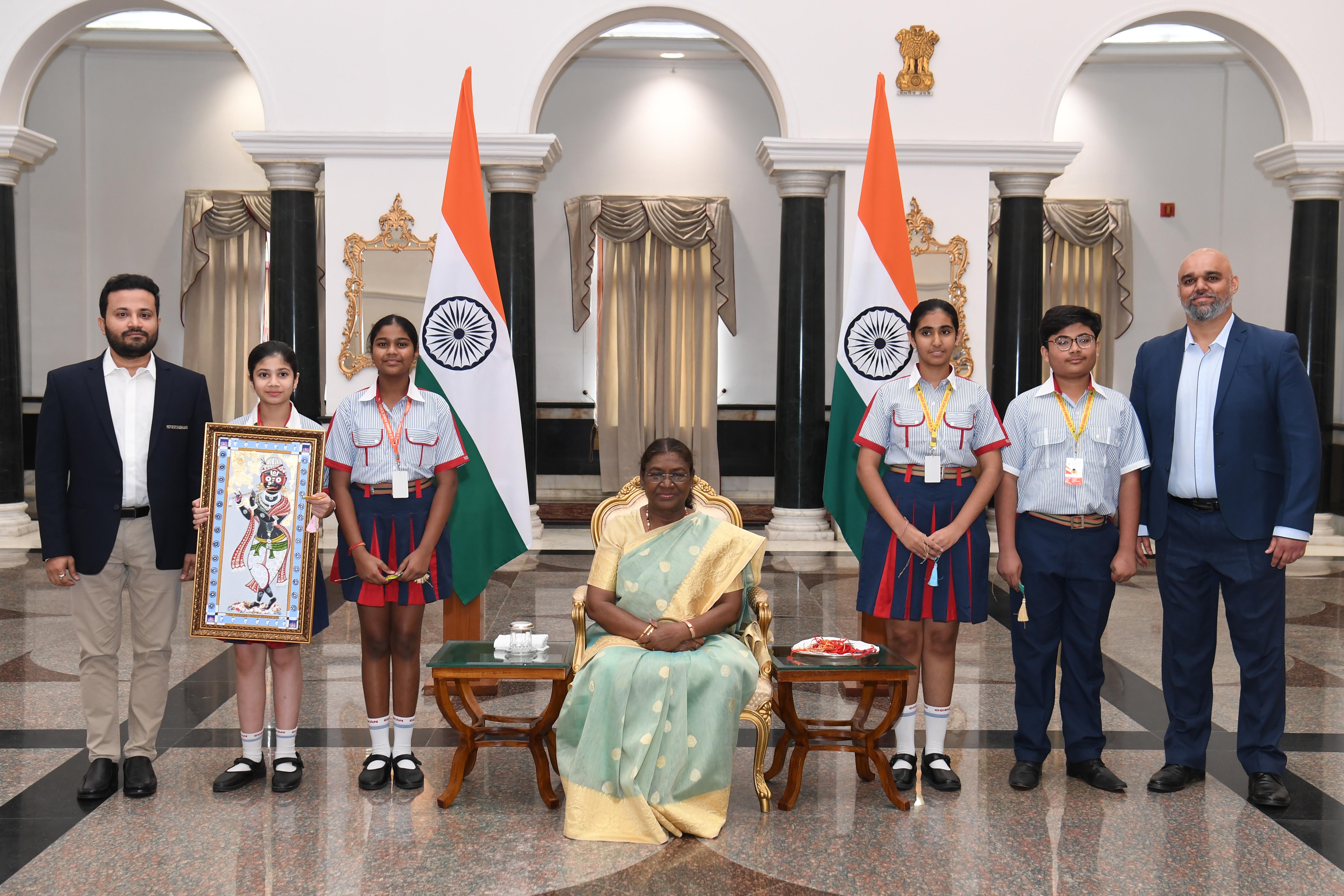 | Caption: | The President of India, Smt Droupadi Murmu interacting with the Children on the occasion of Raksha Bandhan at Rashtrapati Bhavan, New Delhi on August 19, 2024. |