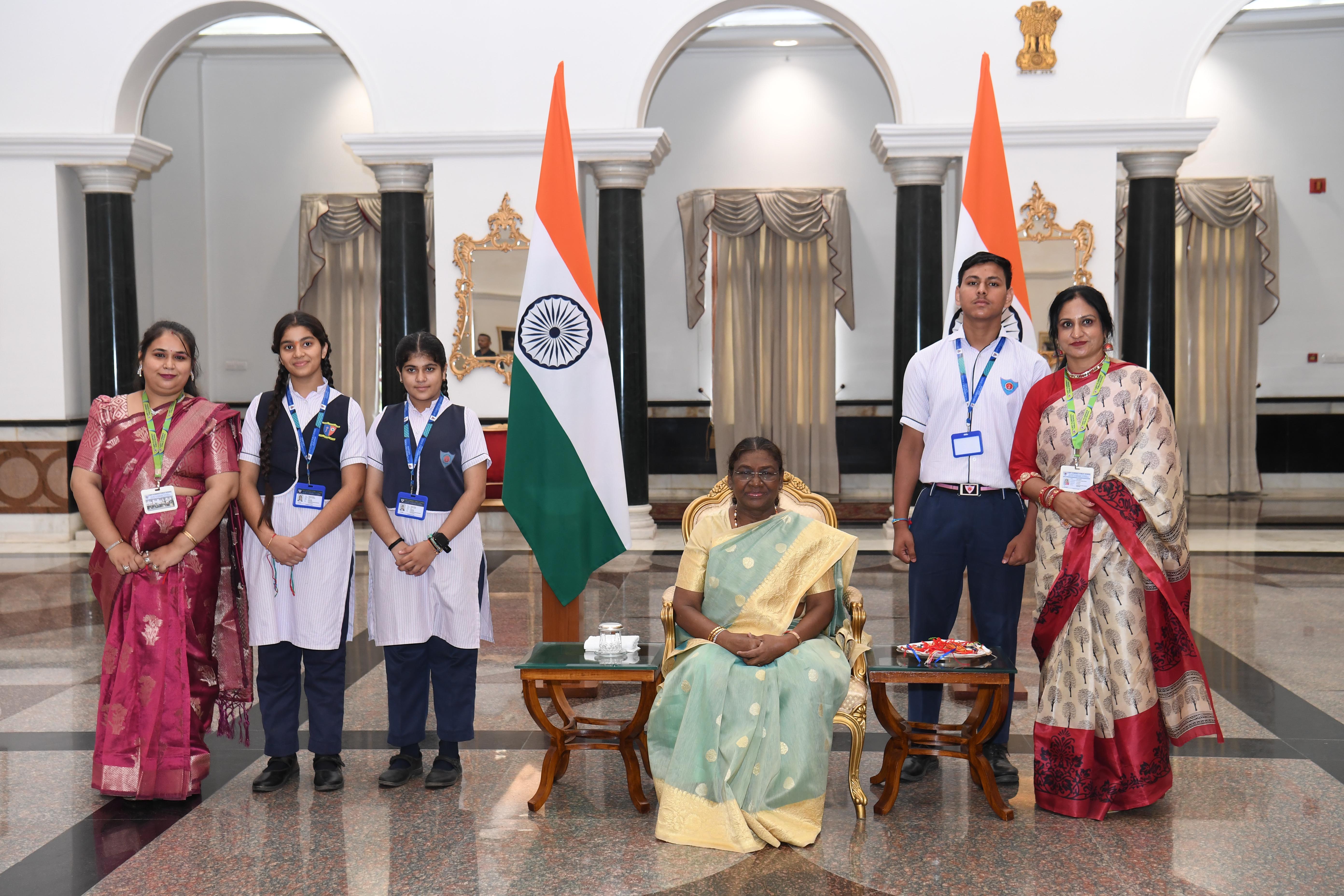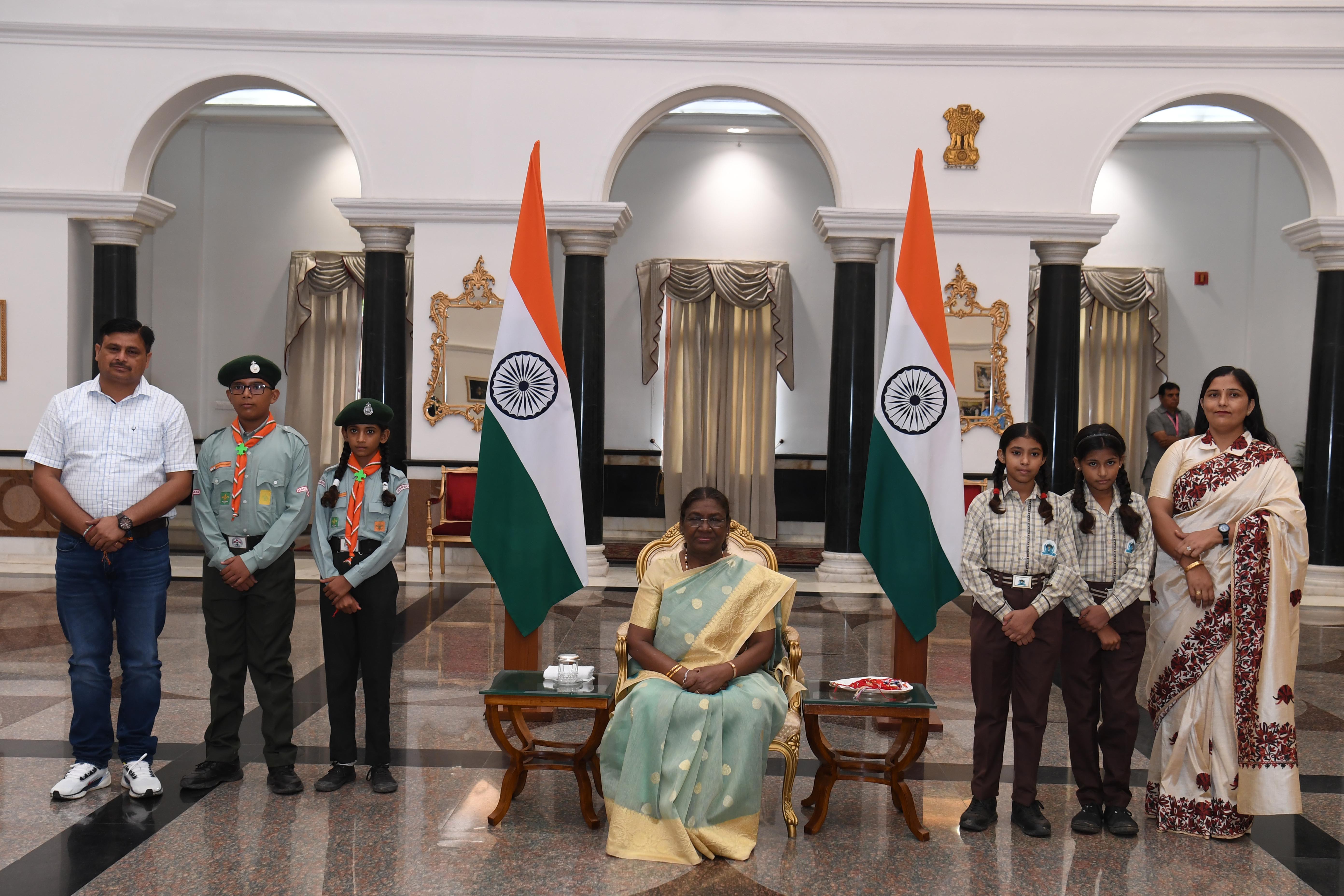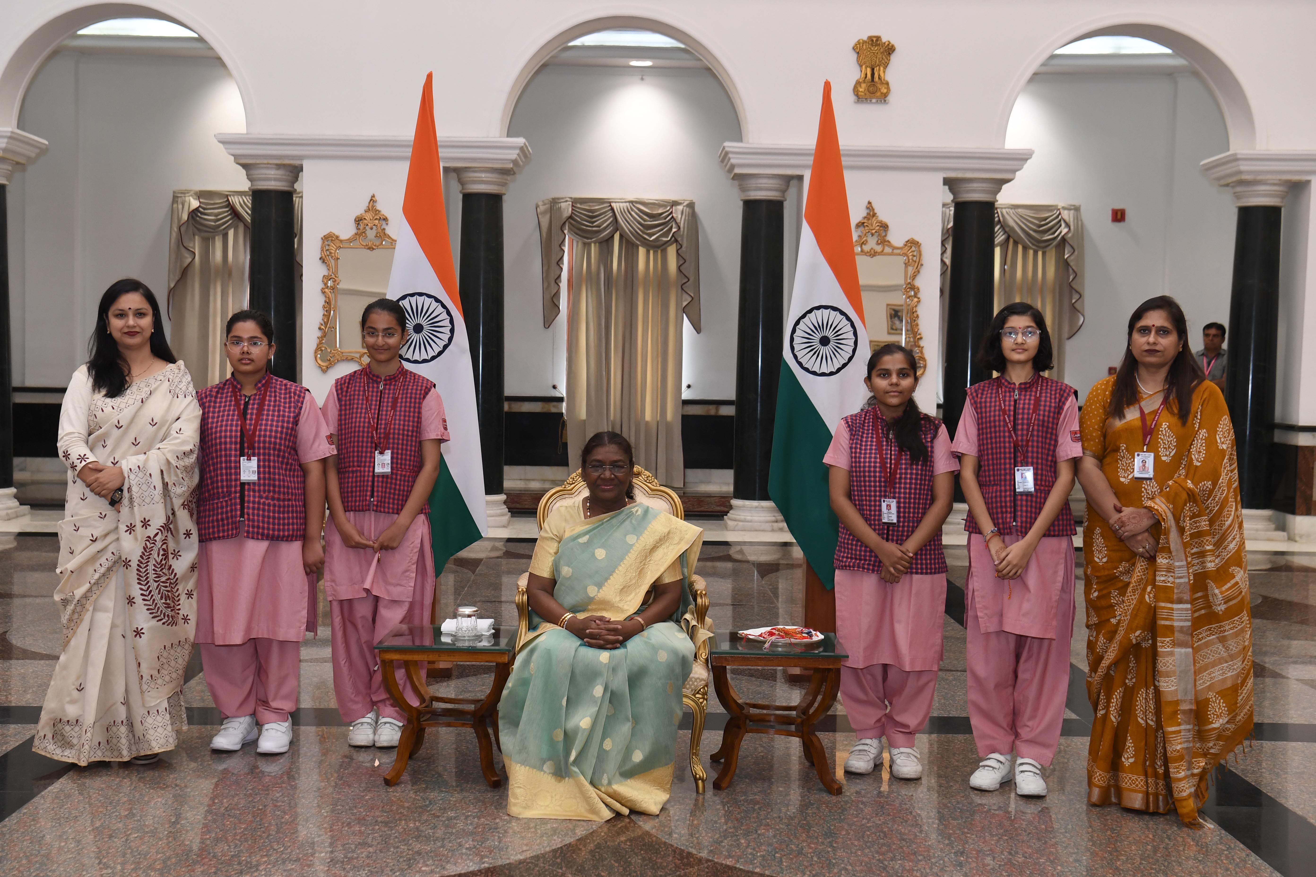| Caption: | The President of India, Smt Droupadi Murmu interacting with the Children on the occasion of Raksha Bandhan at Rashtrapati Bhavan, New Delhi on August 19, 2024. |