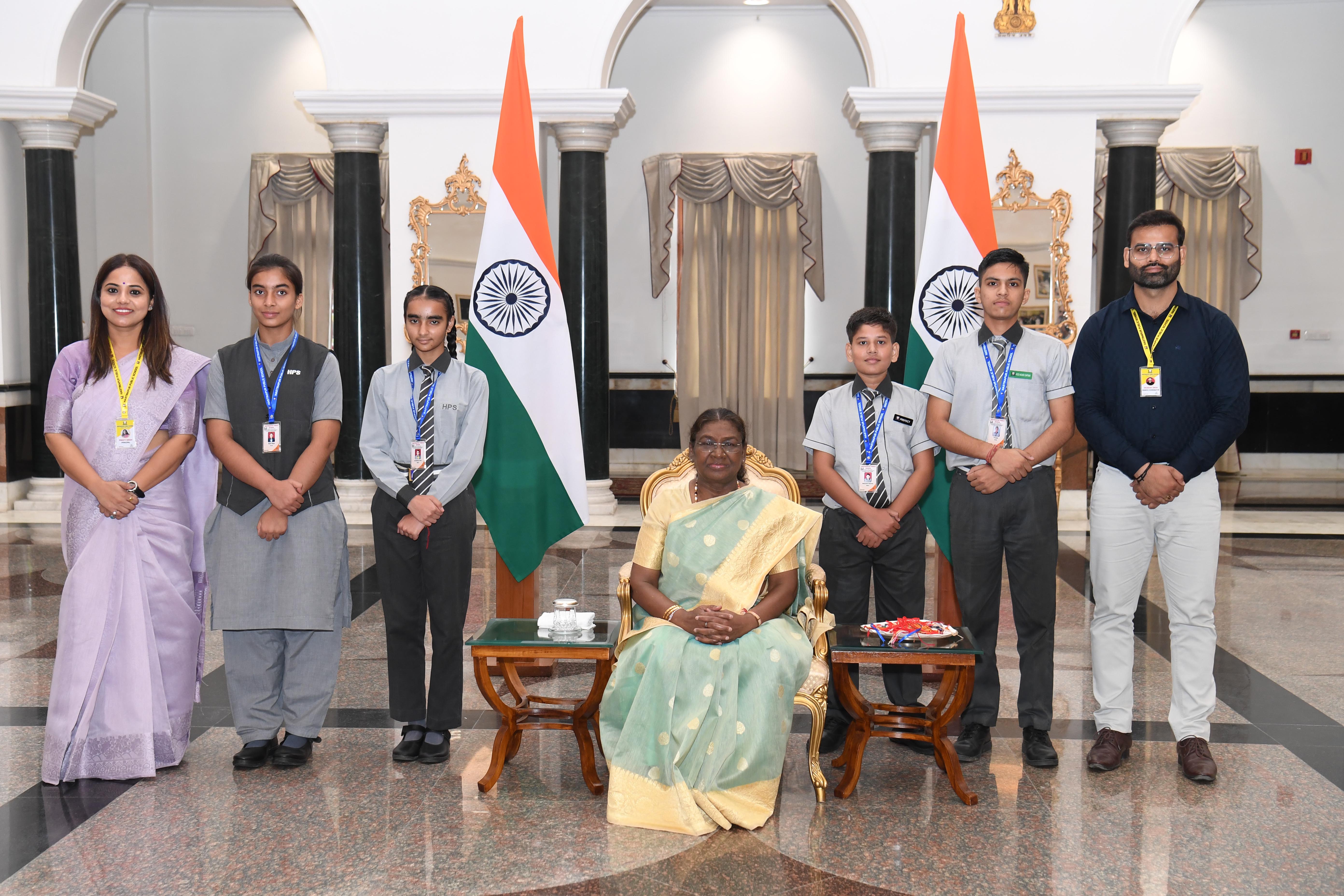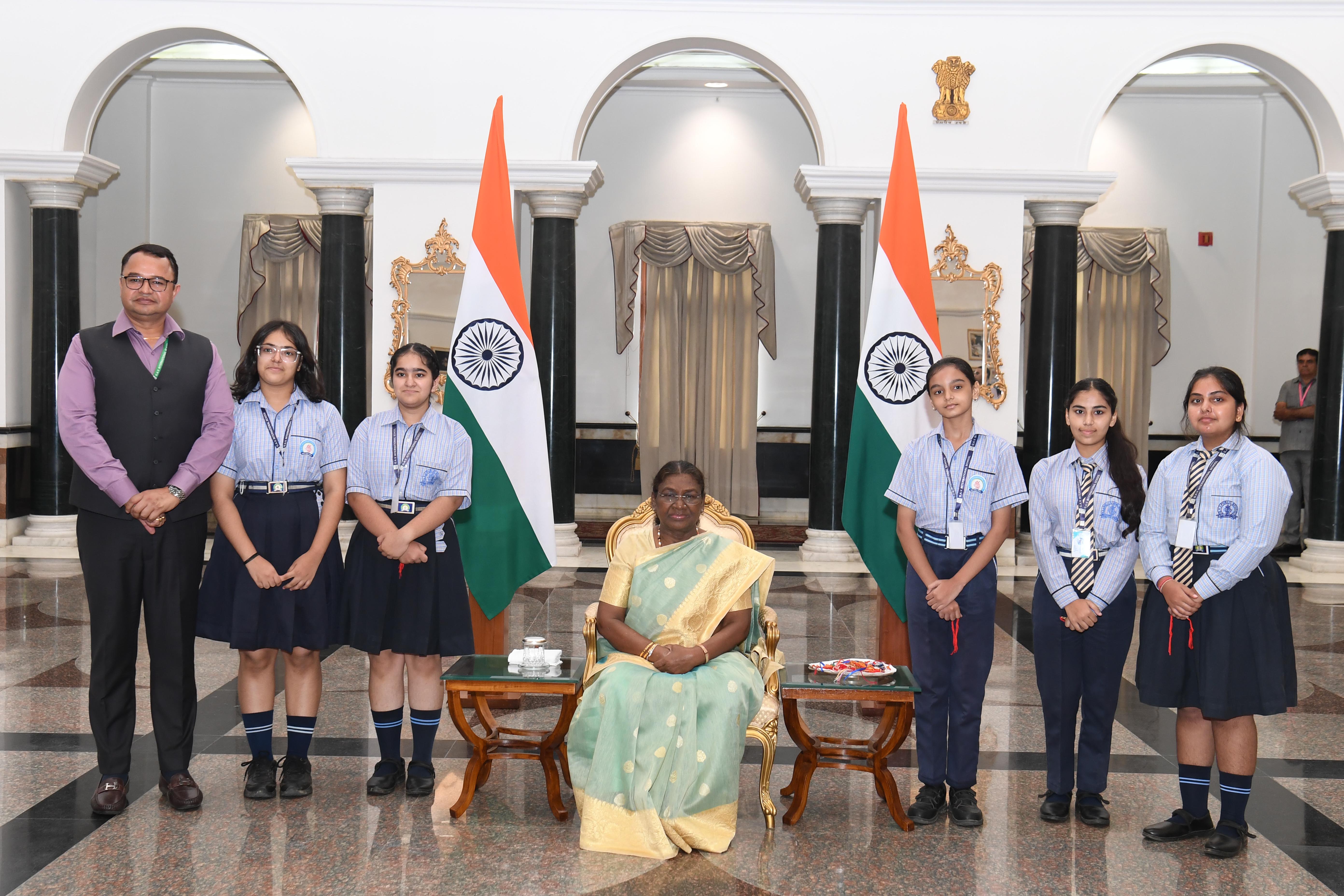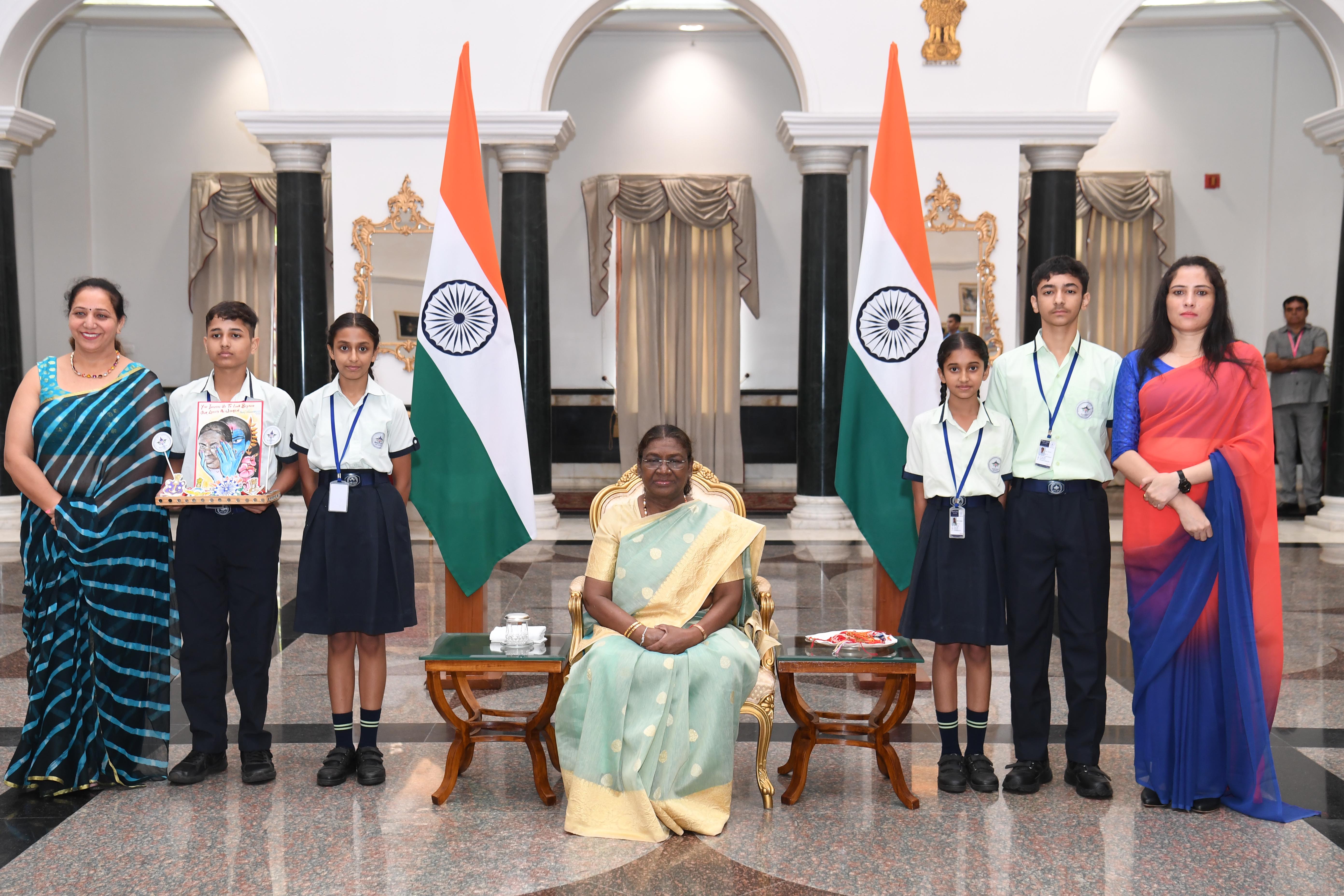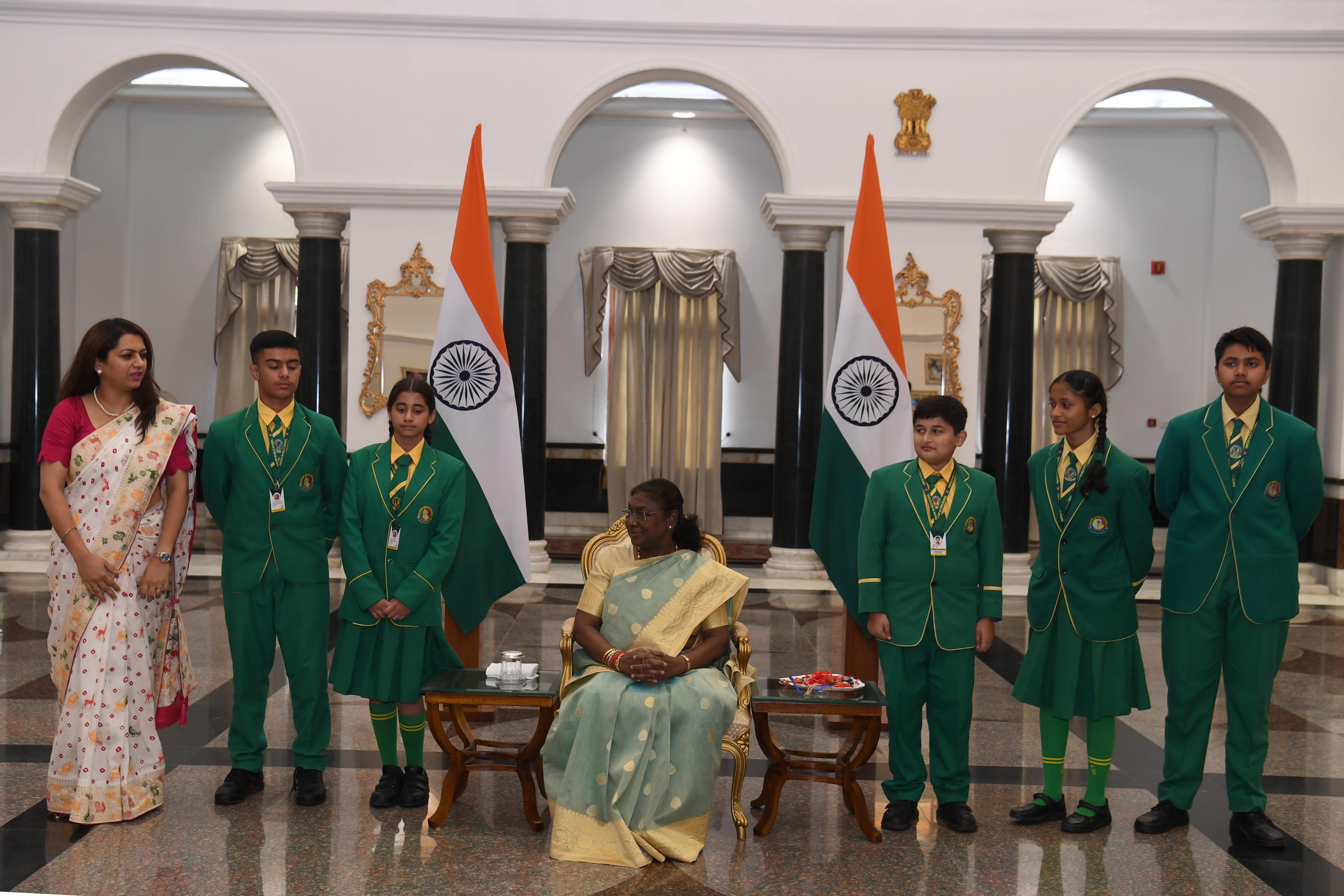 | Caption: | The President of India, Smt Droupadi Murmu interacting with the Children on the occasion of Raksha Bandhan at Rashtrapati Bhavan, New Delhi on August 19, 2024. |