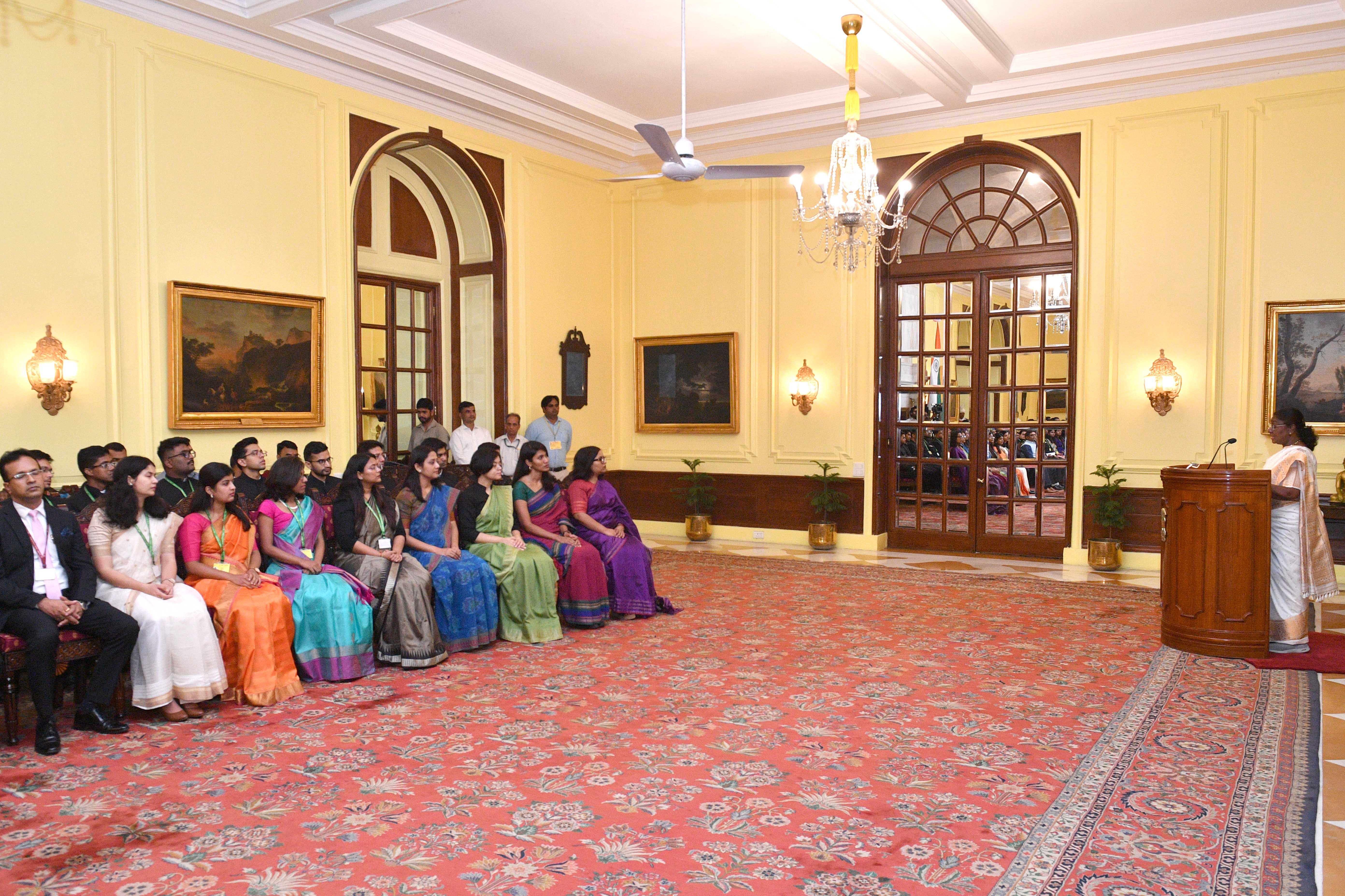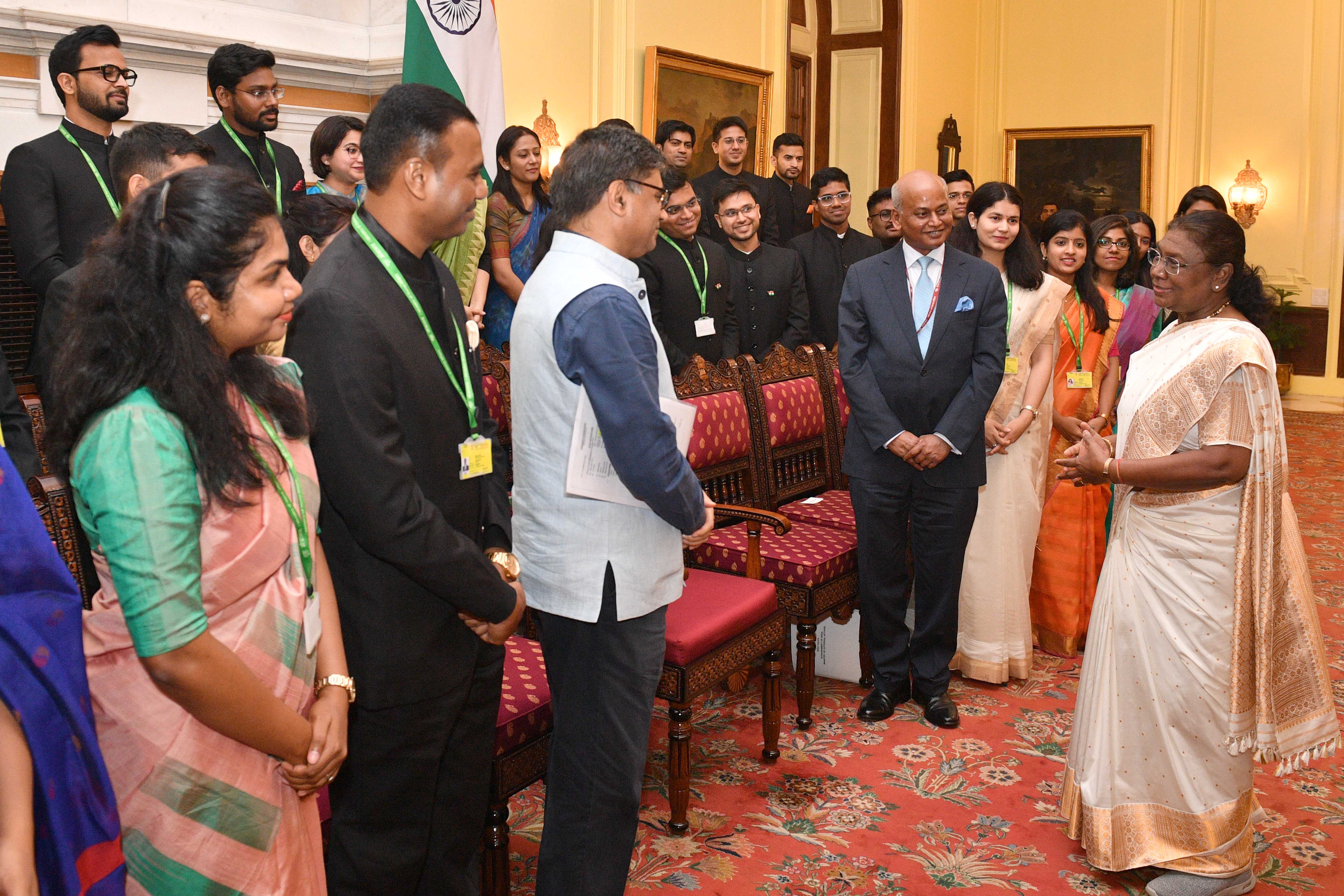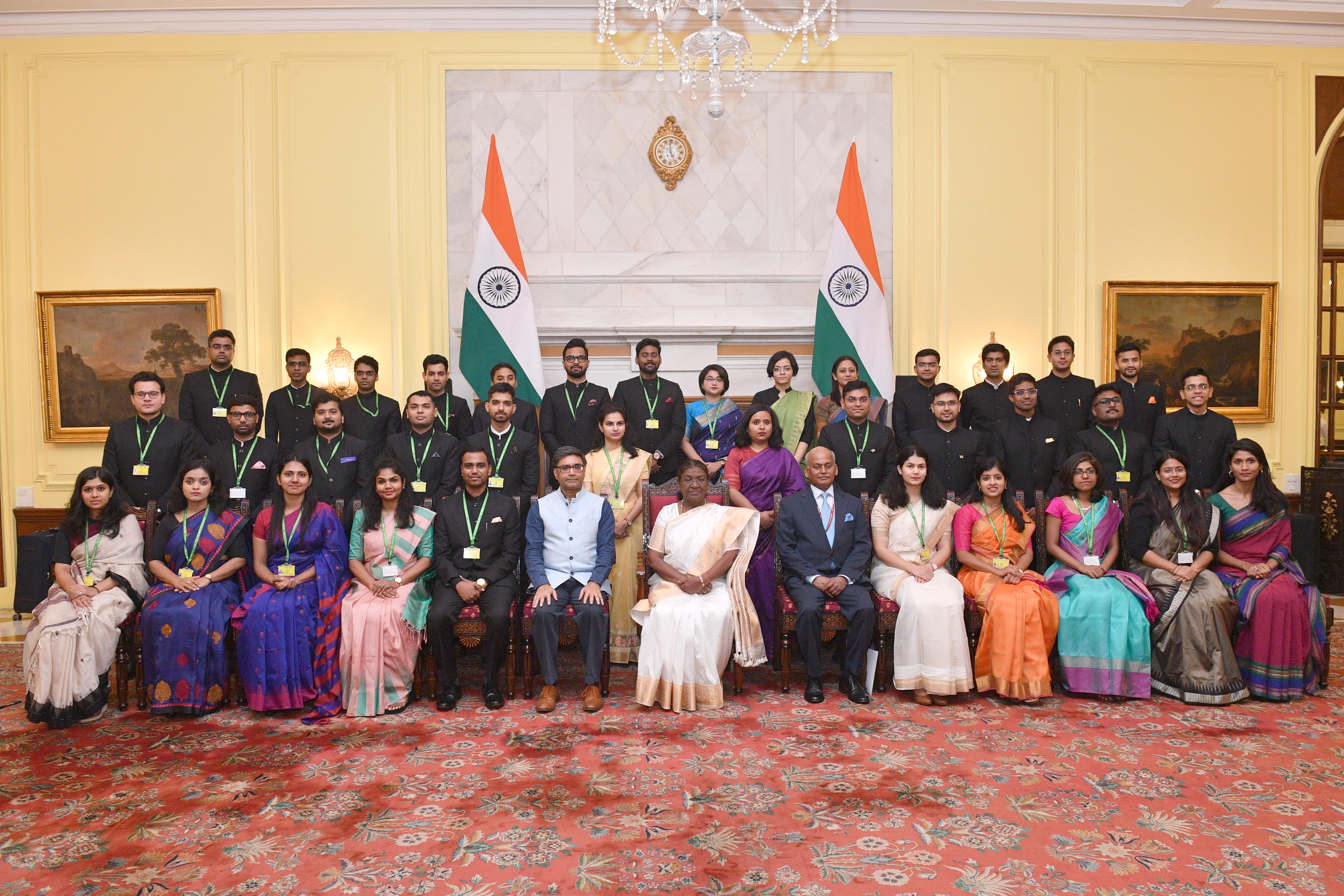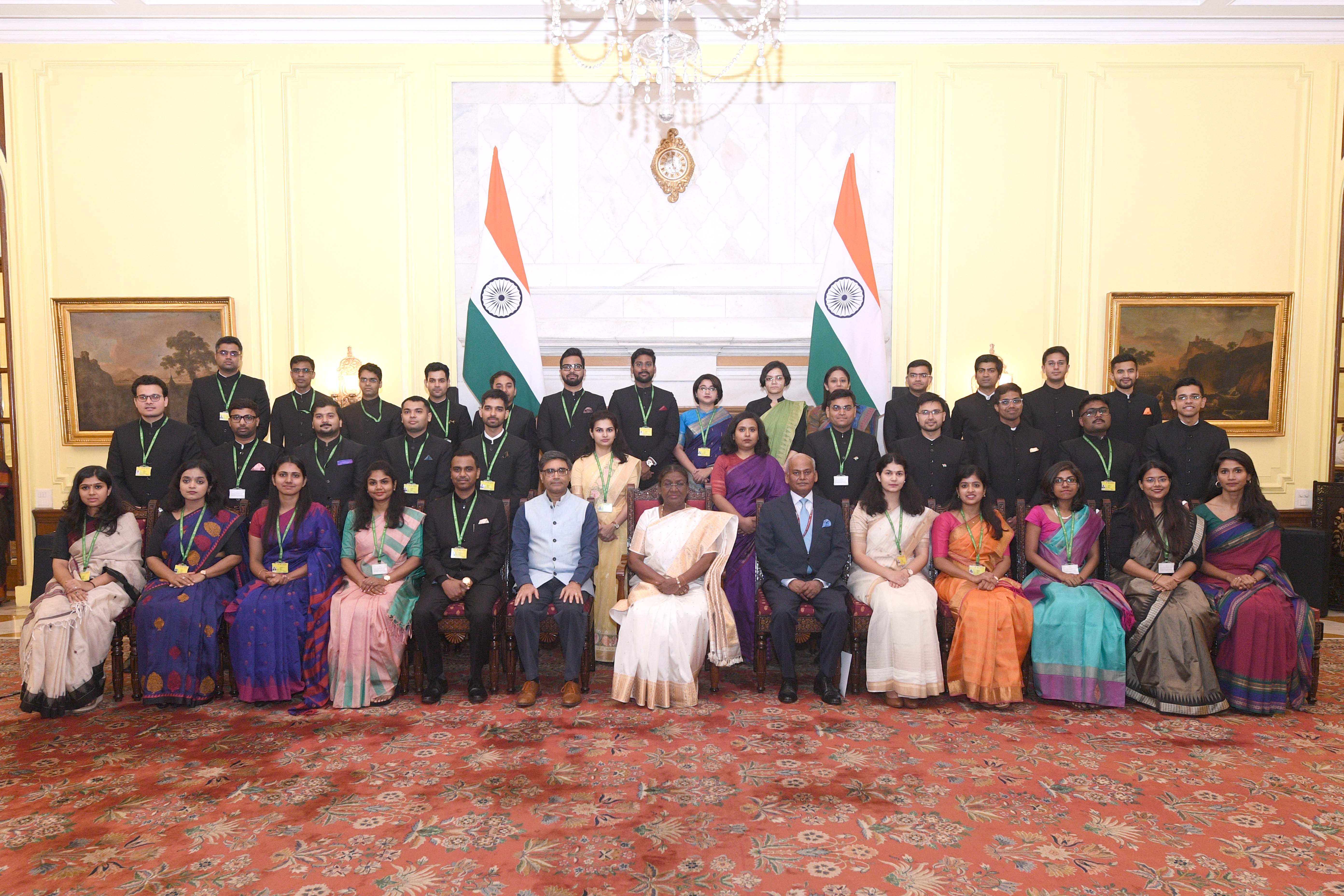 | Caption: | The Officer Trainees of the Indian Foreign Service (2023 Batch) called on the President of India, Smt Droupadi Murmu at Rashtrapati Bhavan on August 19, 2024. |