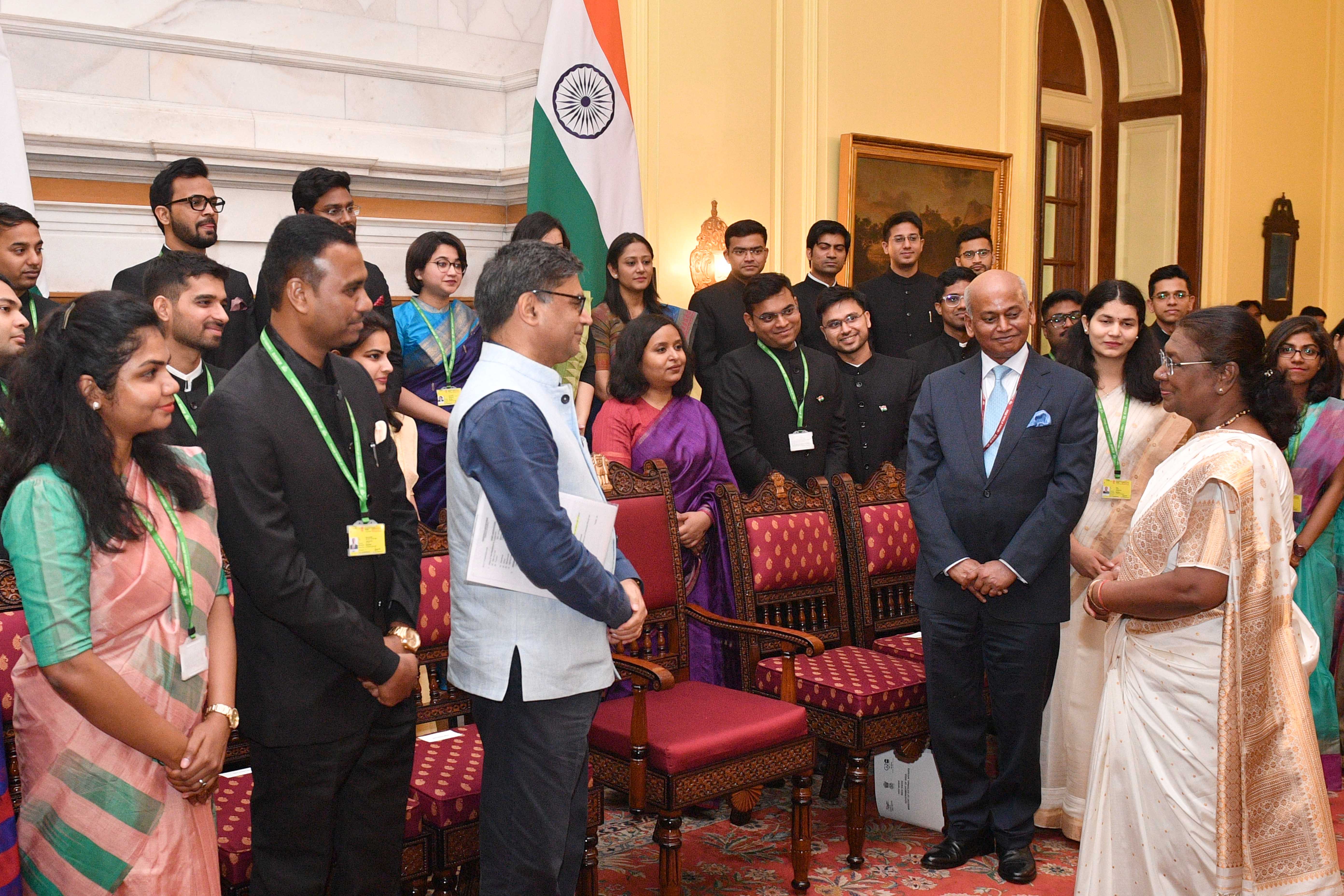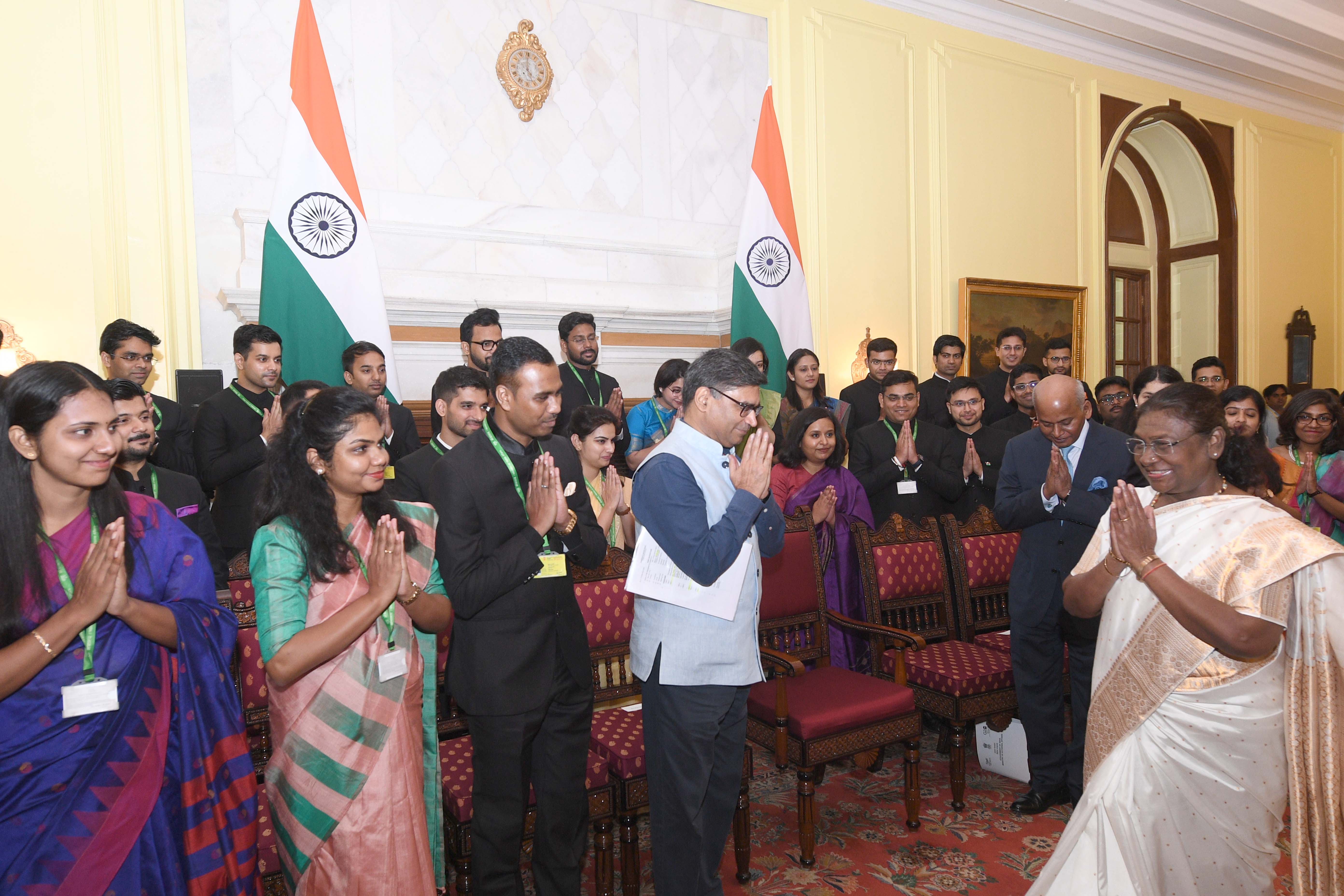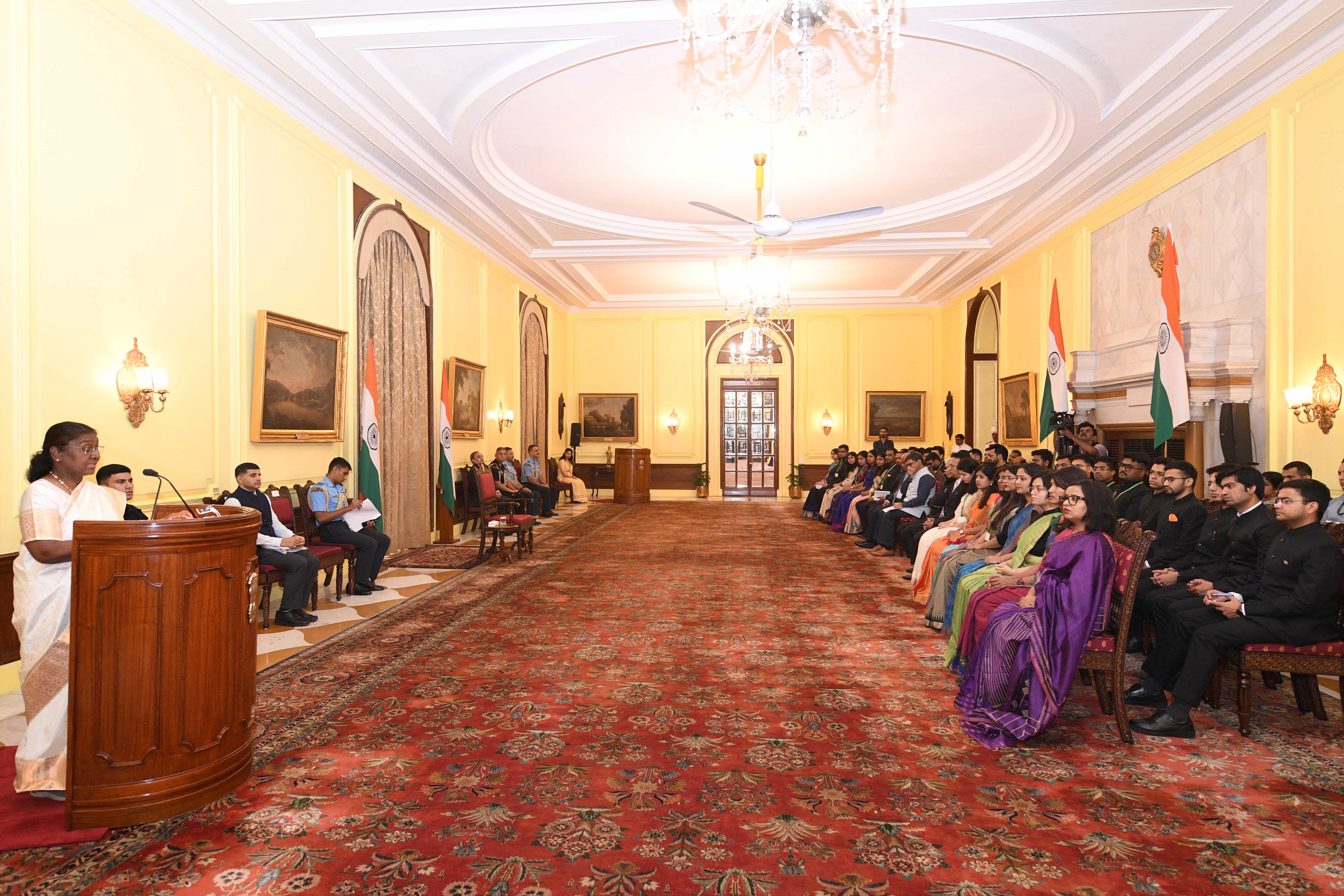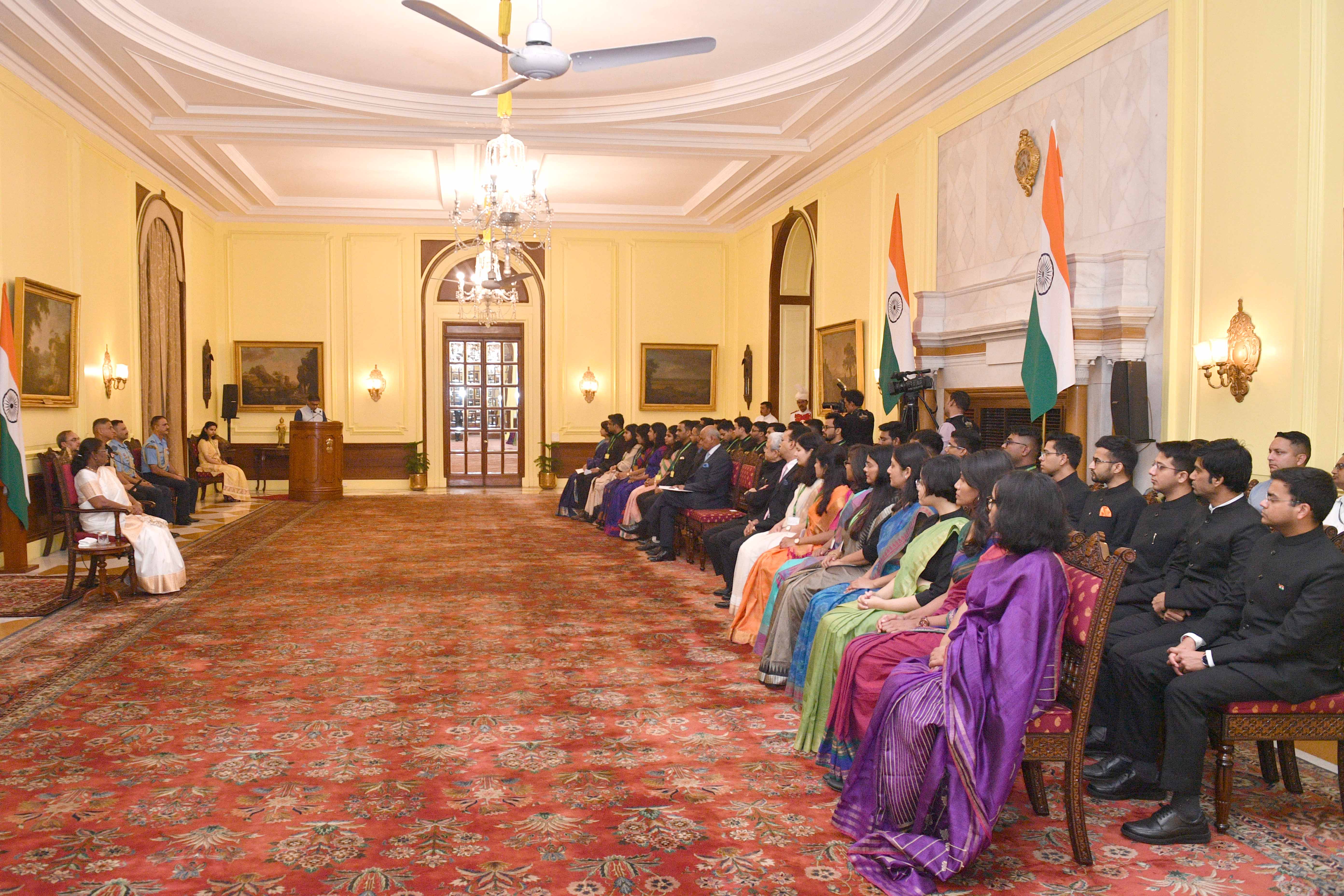 | Caption: | The Officer Trainees of the Indian Foreign Service (2023 Batch) called on the President of India, Smt Droupadi Murmu at Rashtrapati Bhavan on August 19, 2024. |