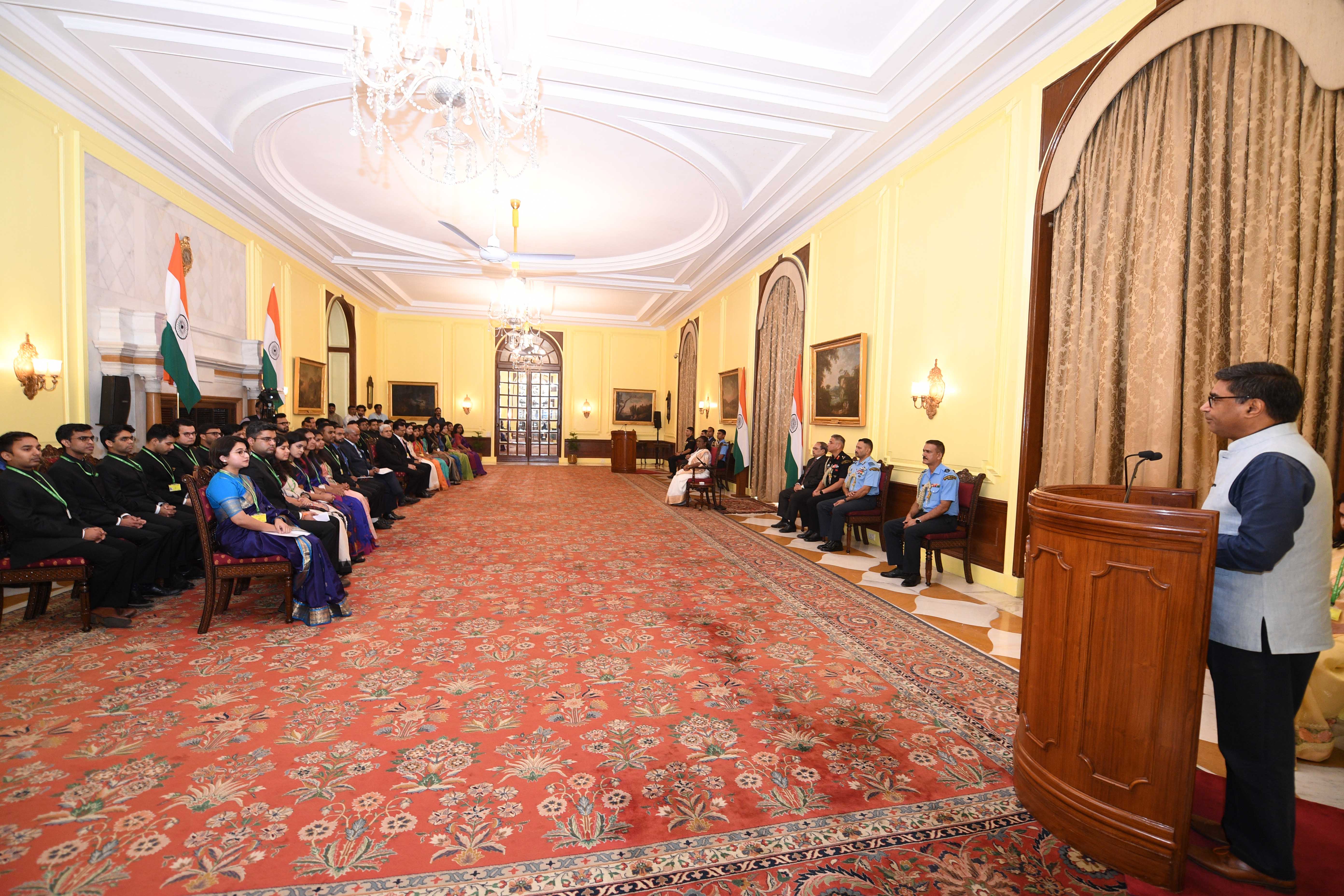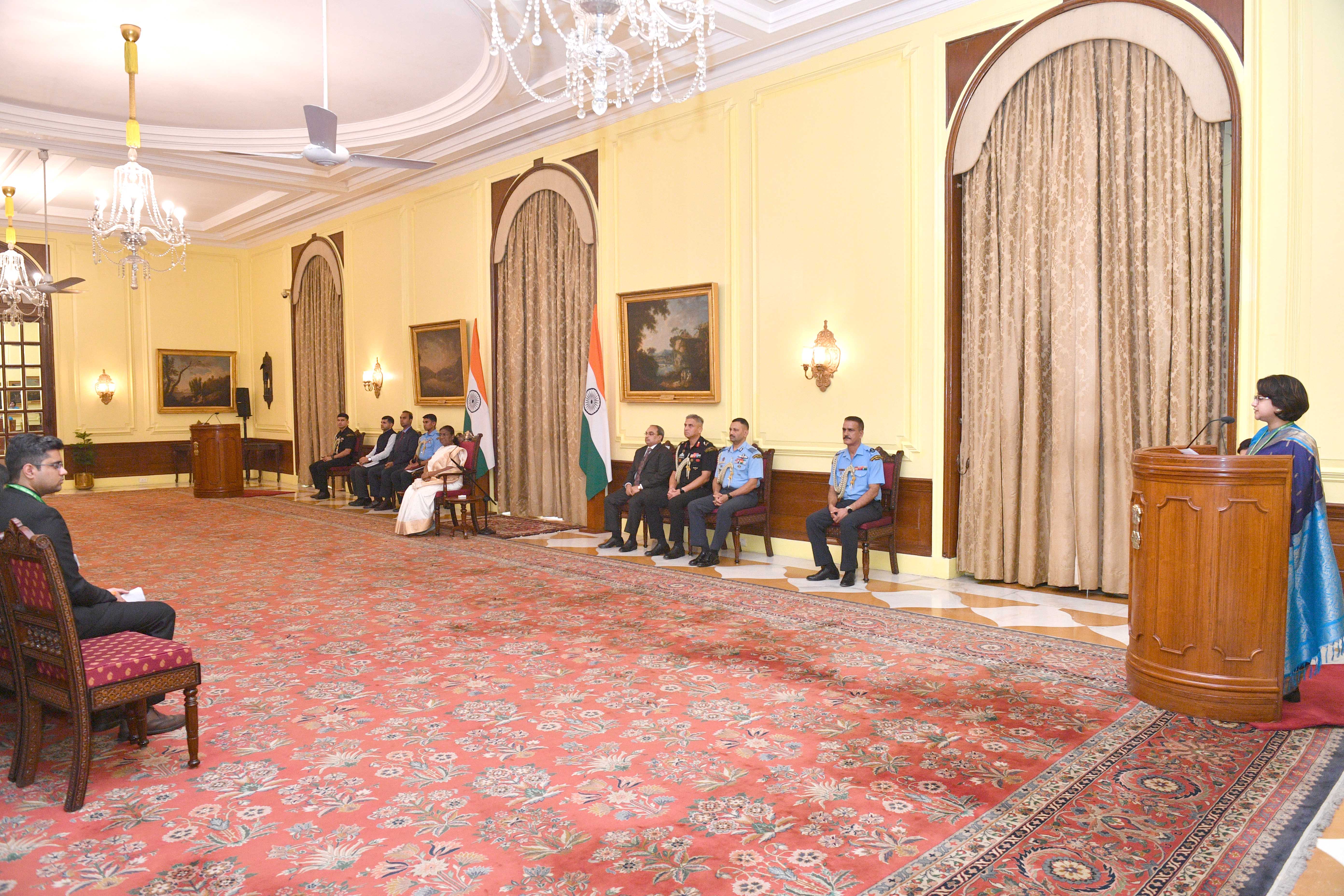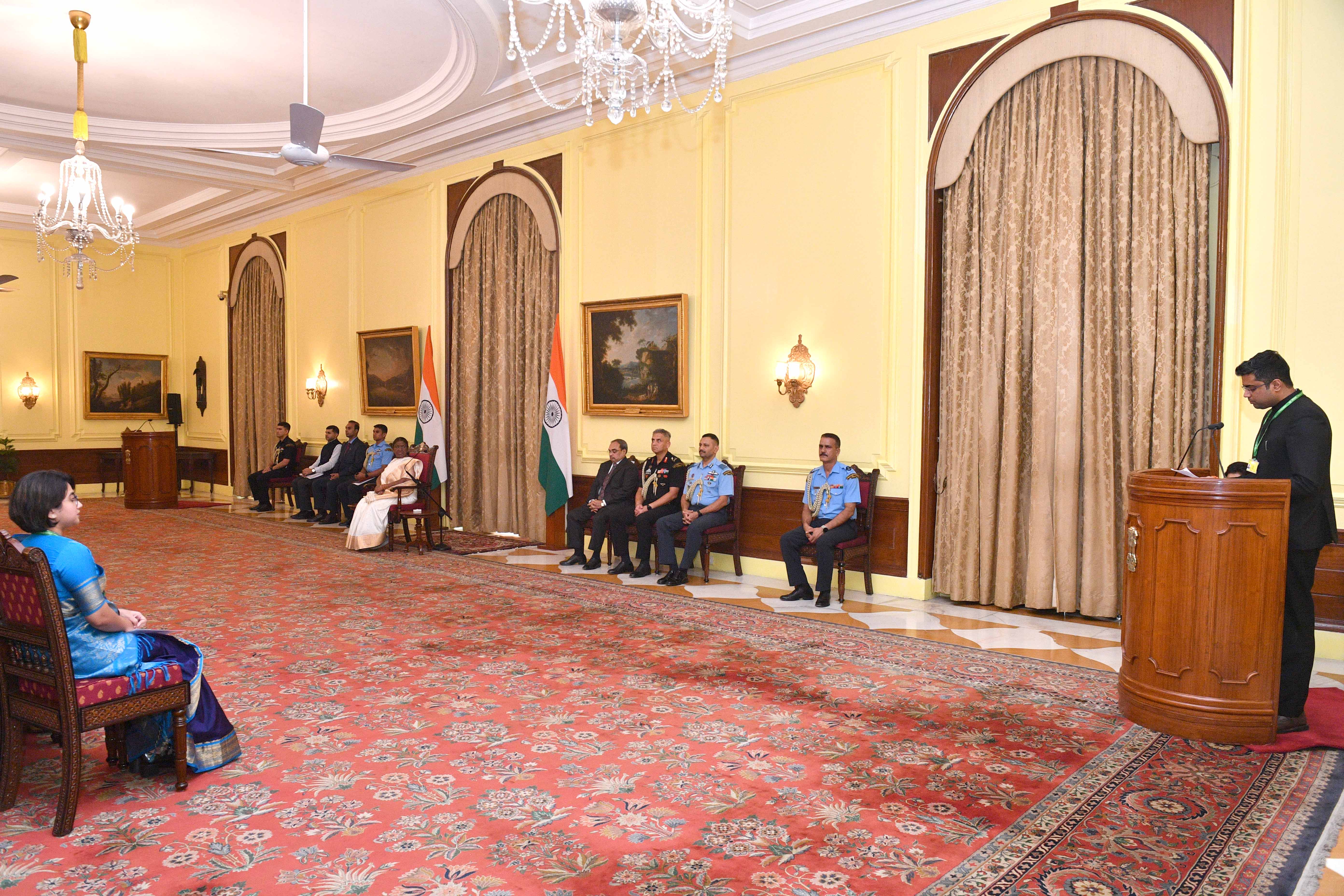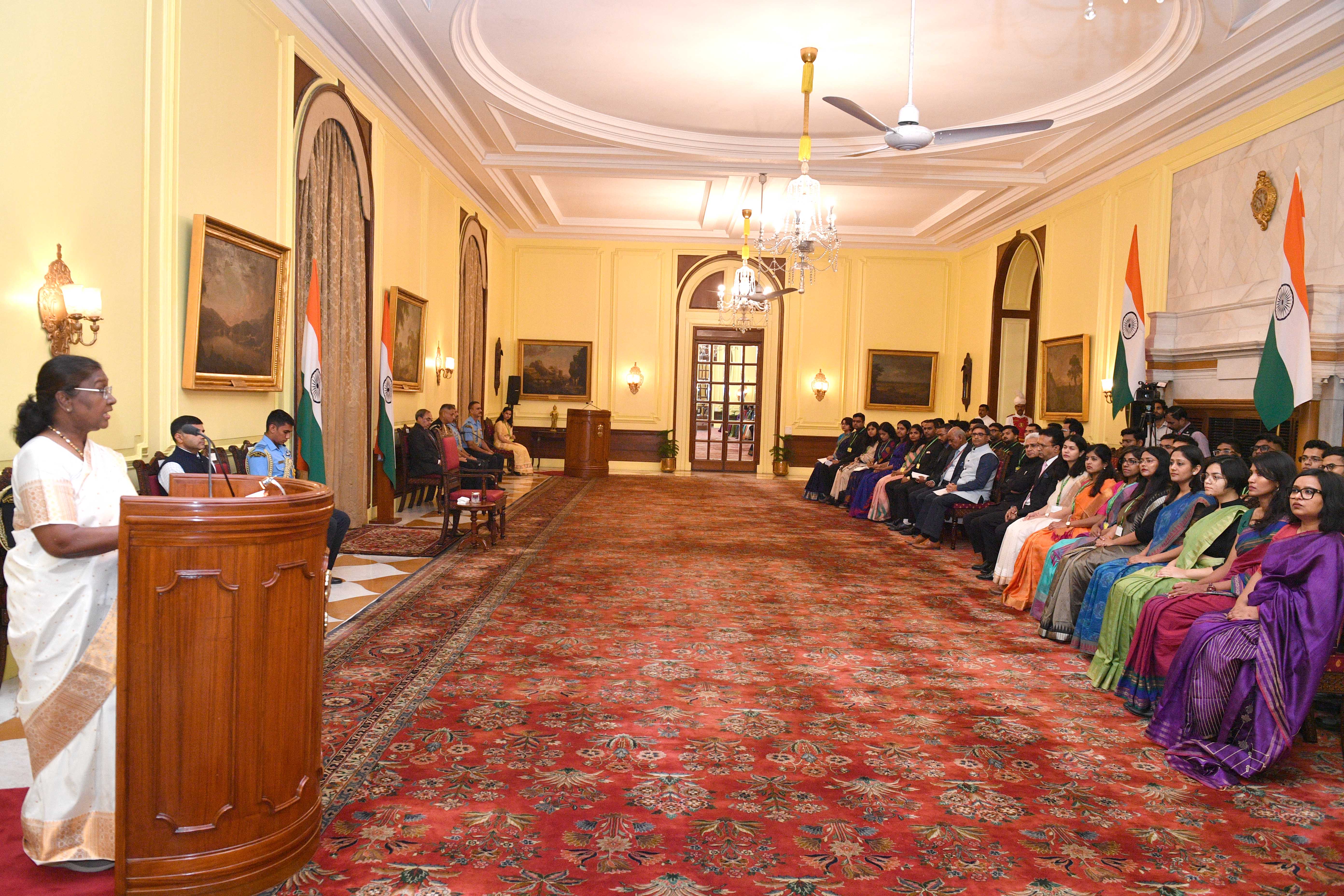| Caption: | The Officer Trainees of the Indian Foreign Service (2023 Batch) called on the President of India, Smt Droupadi Murmu at Rashtrapati Bhavan on August 19, 2024. |