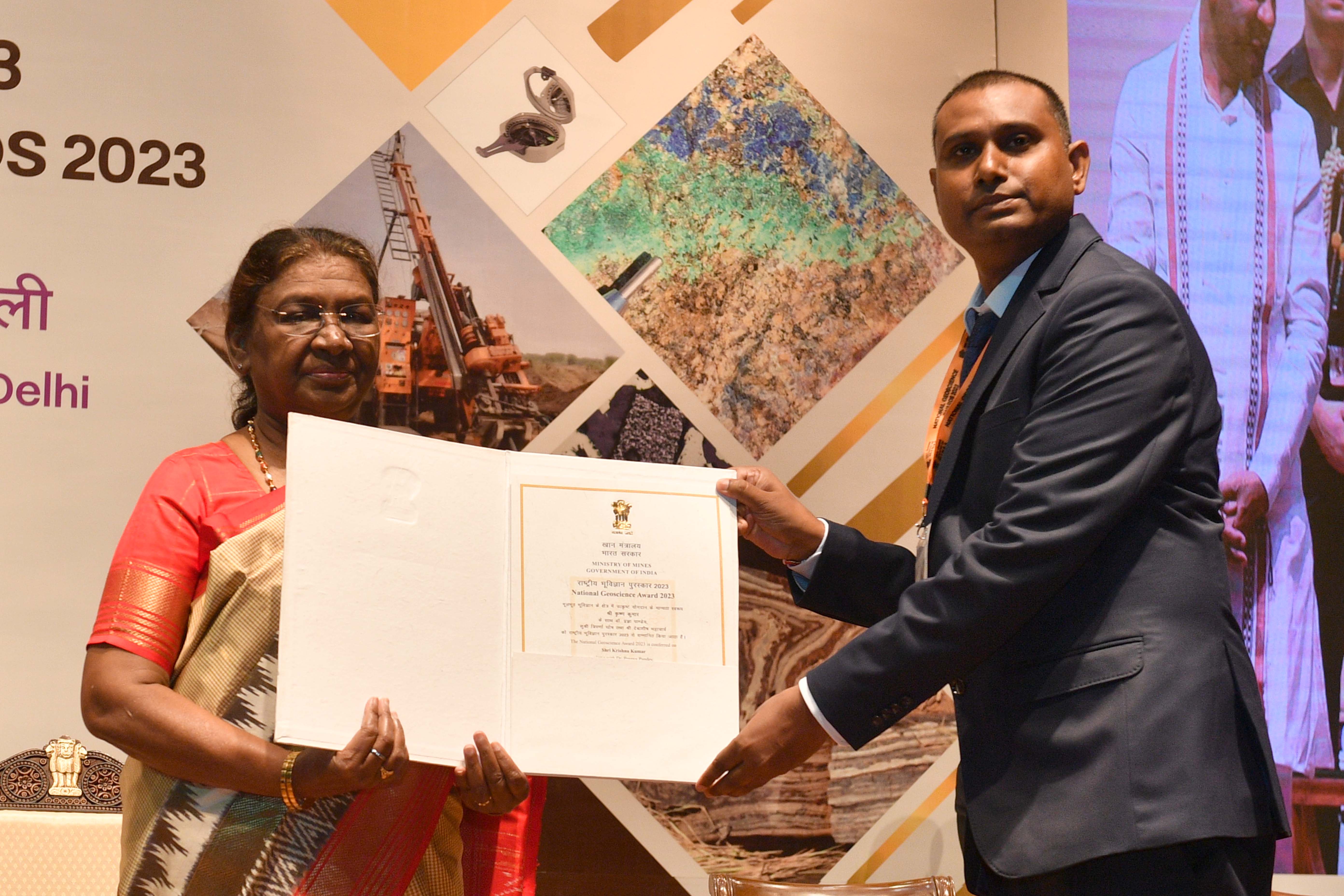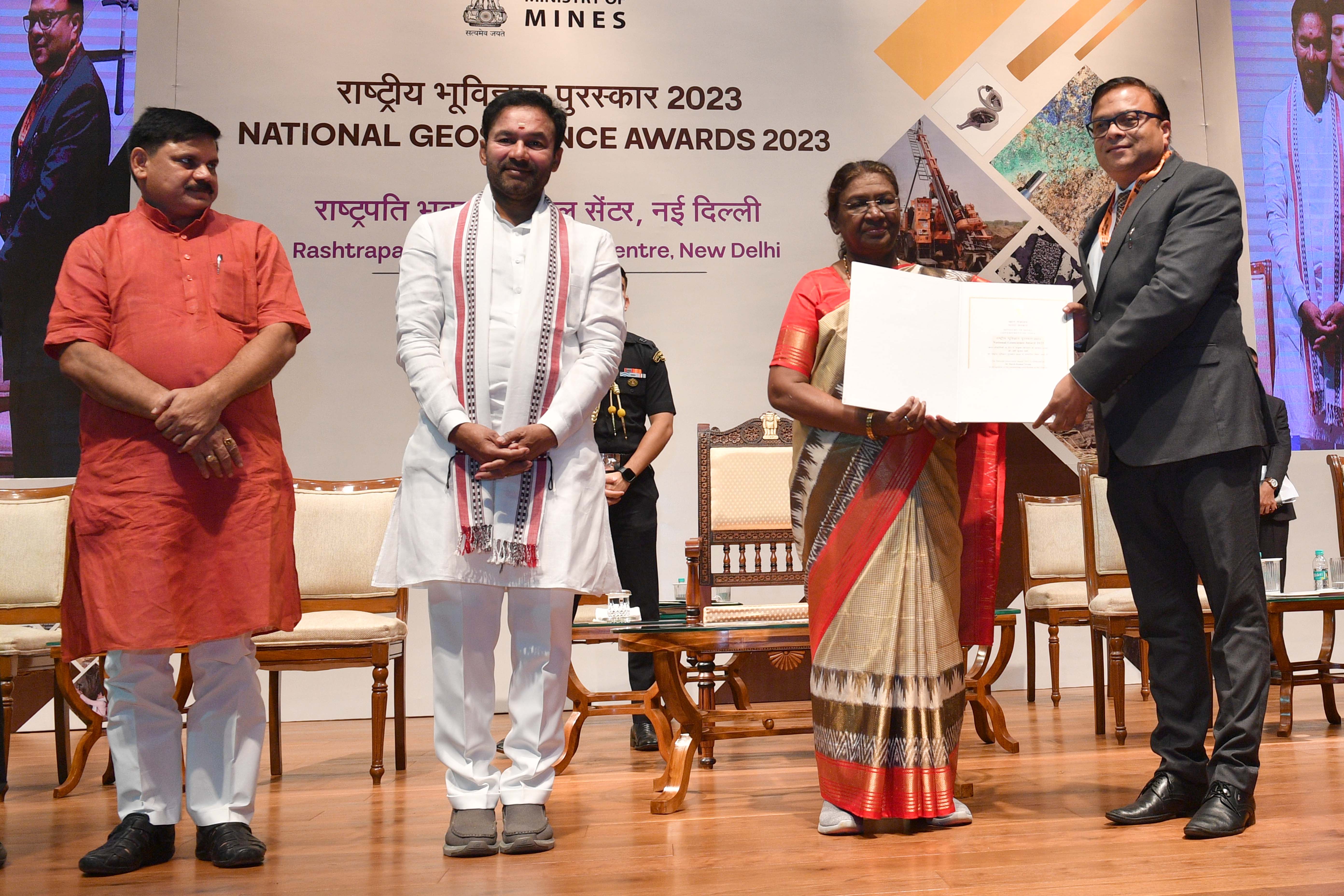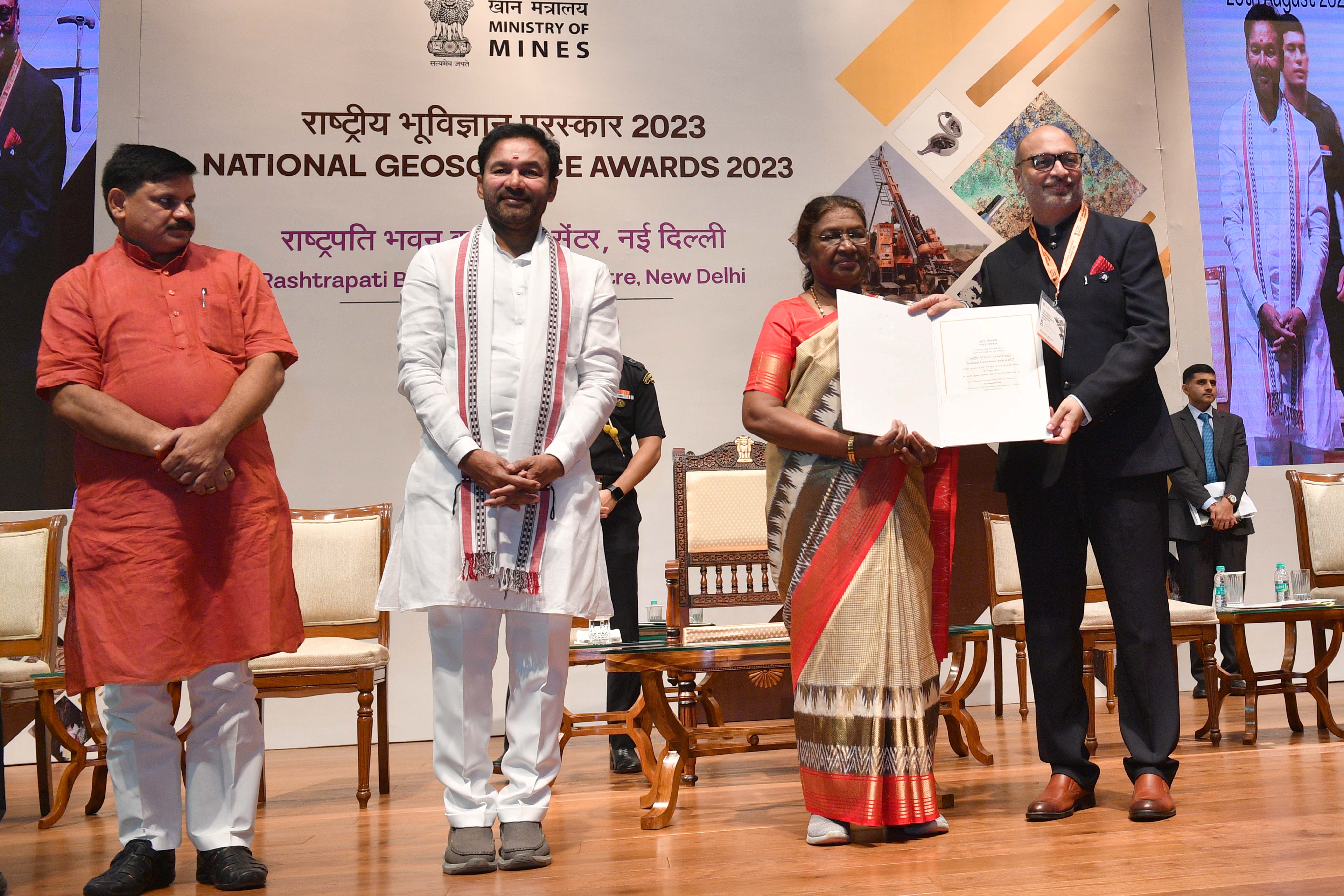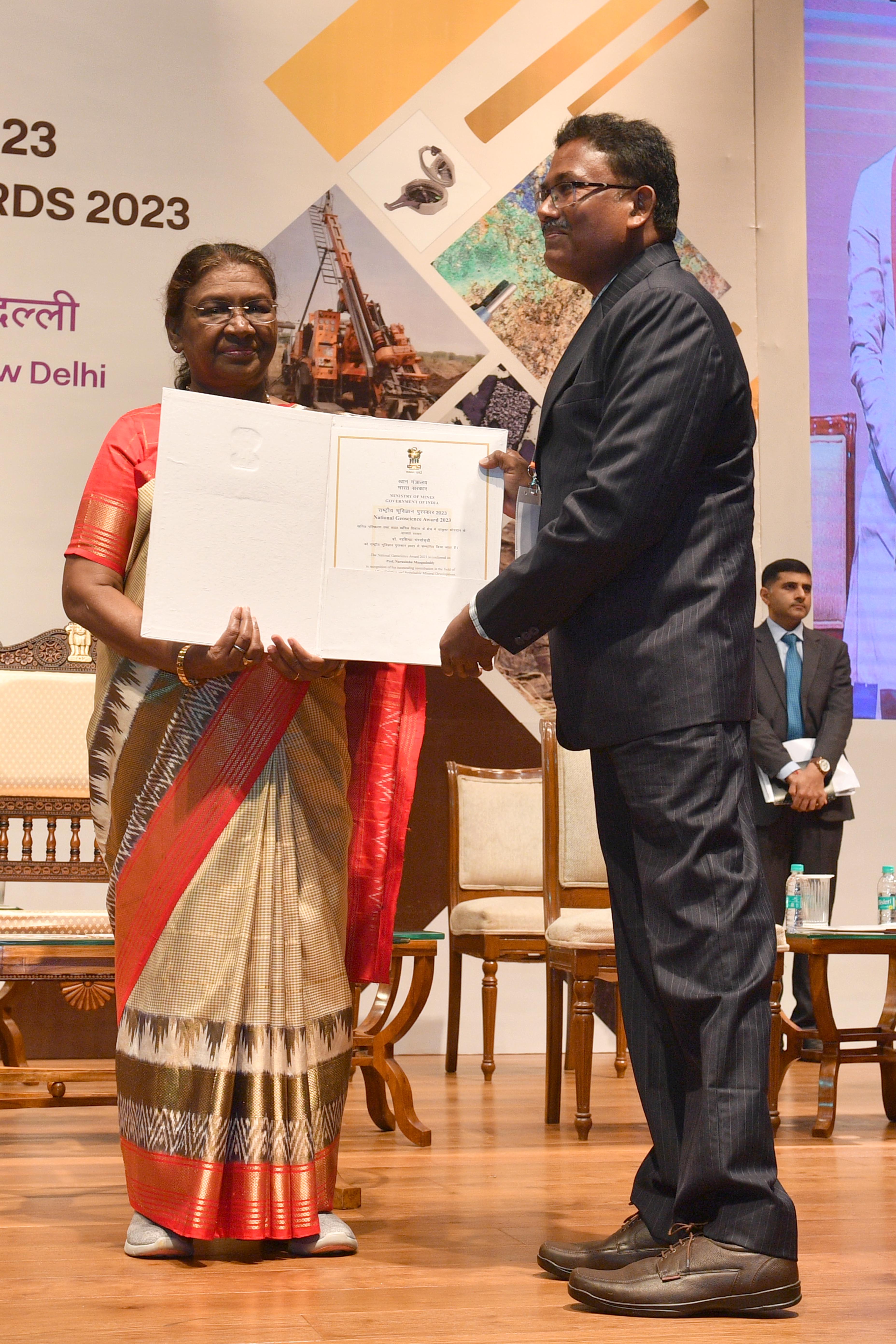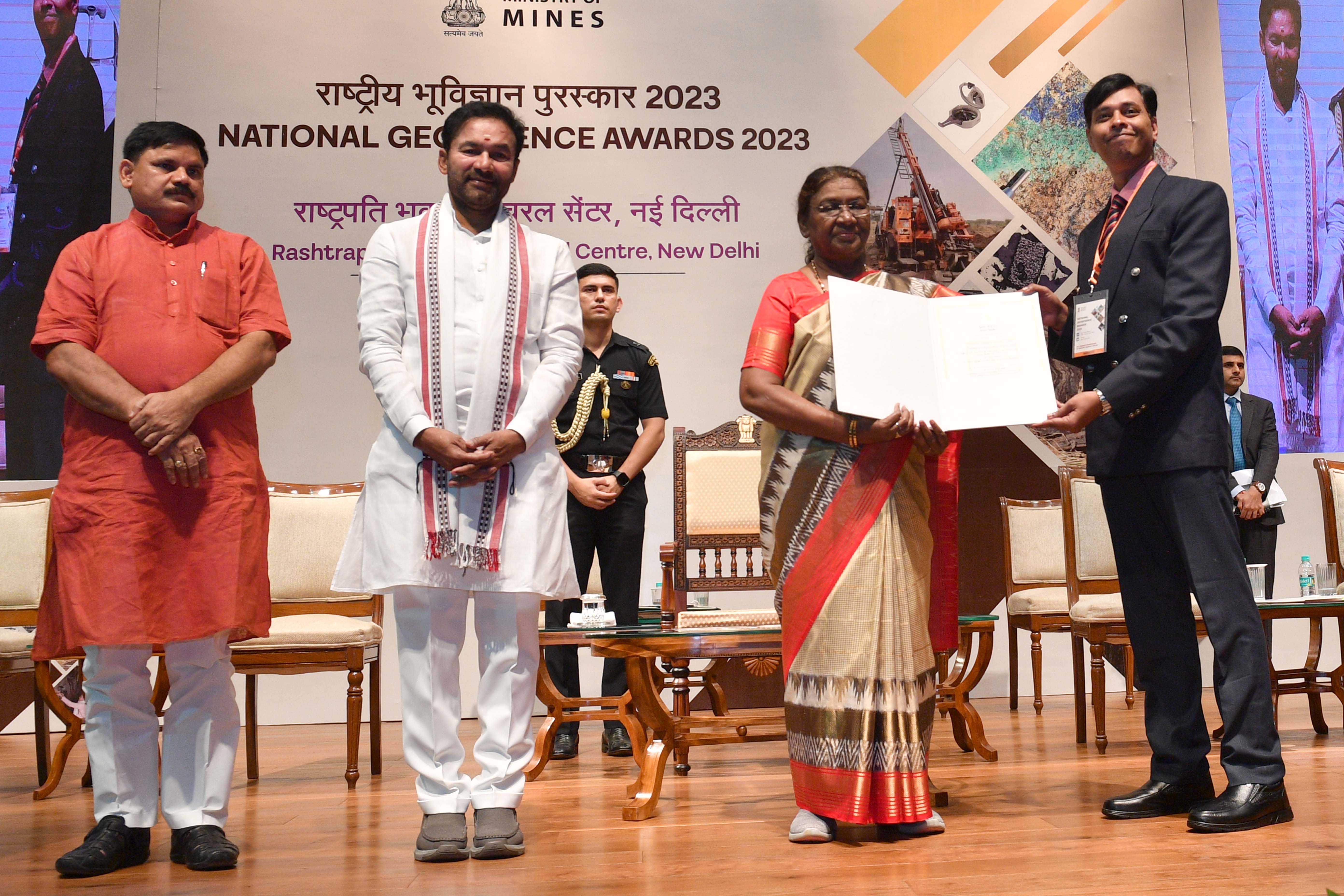 | Caption: | The President of India, Smt Droupadi Murmu presented the National Geoscience Awards-2023 at a ceremony held at Rashtrapati Bhavan Cultural Centre on August 20, 2024. |