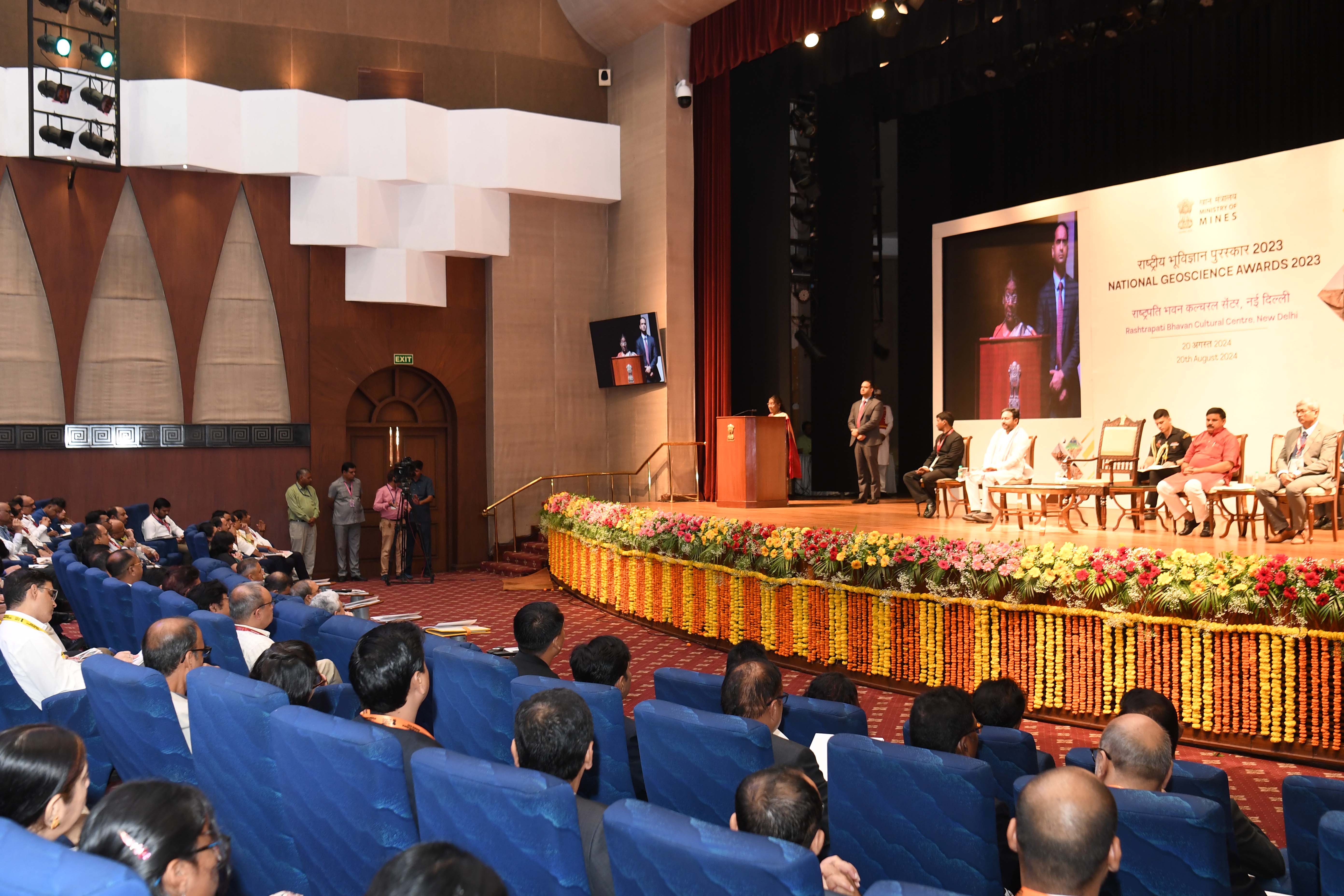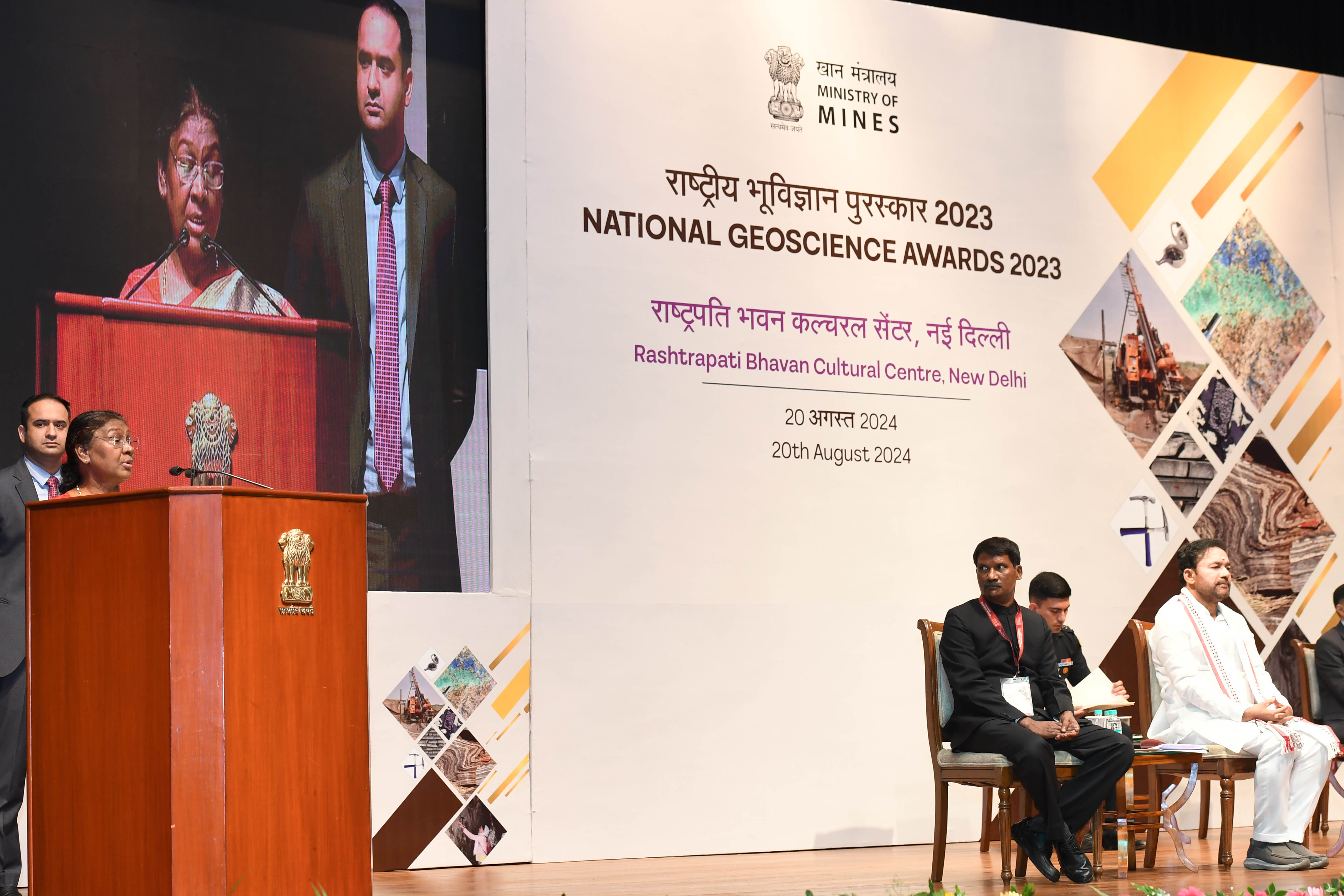 | Caption: | The President of India, Smt Droupadi Murmu presented the National Geoscience Awards-2023 at a ceremony held at Rashtrapati Bhavan Cultural Centre on August 20, 2024. |