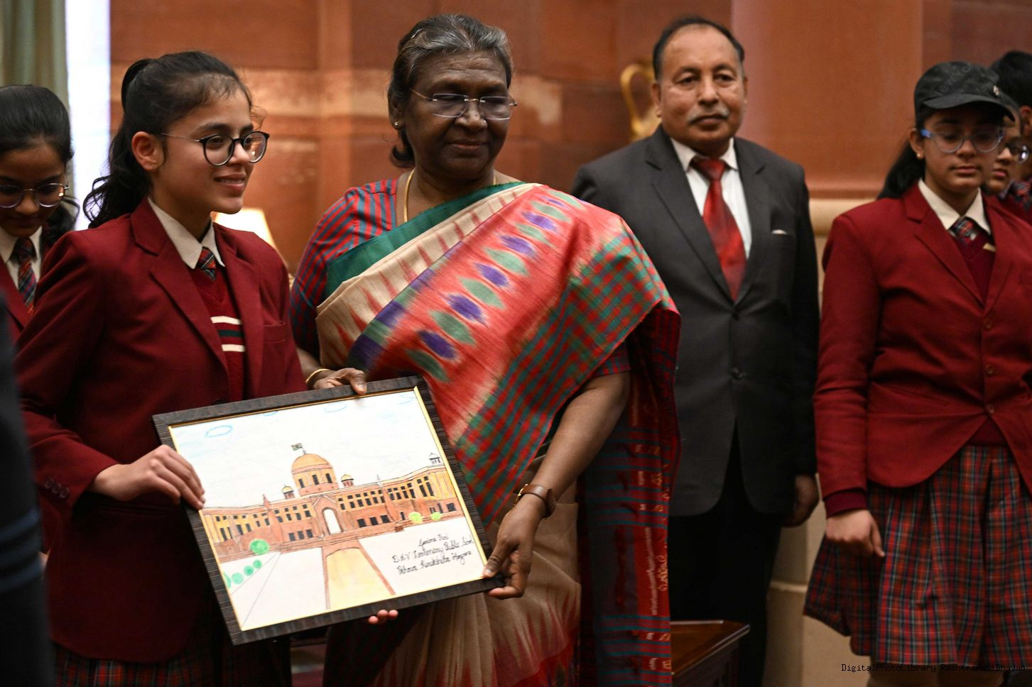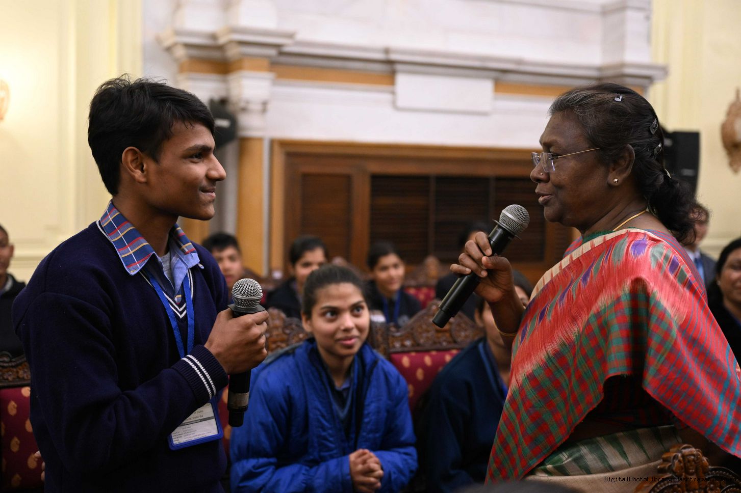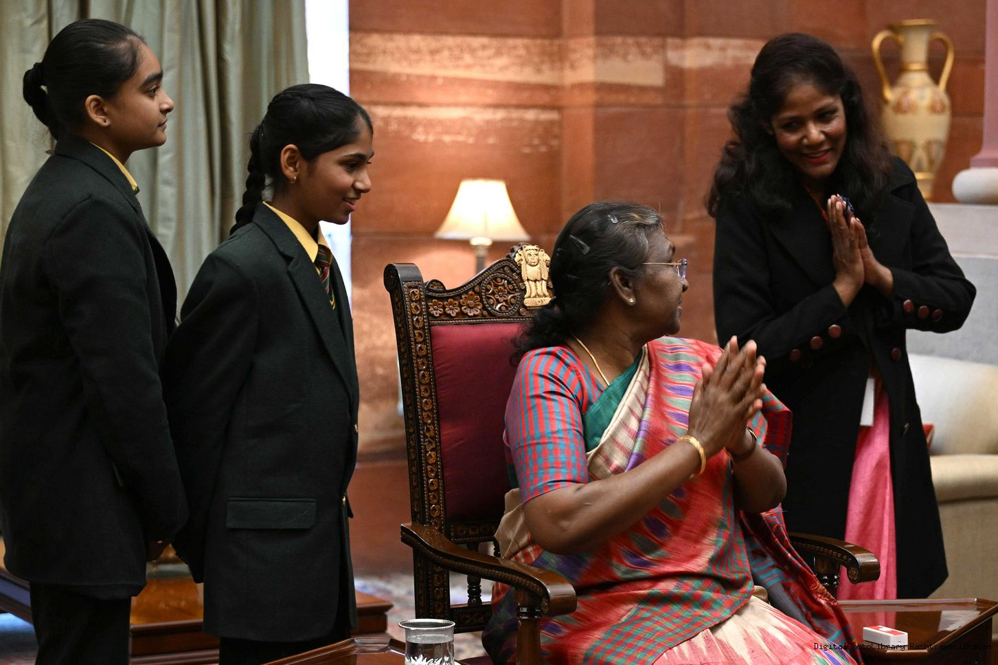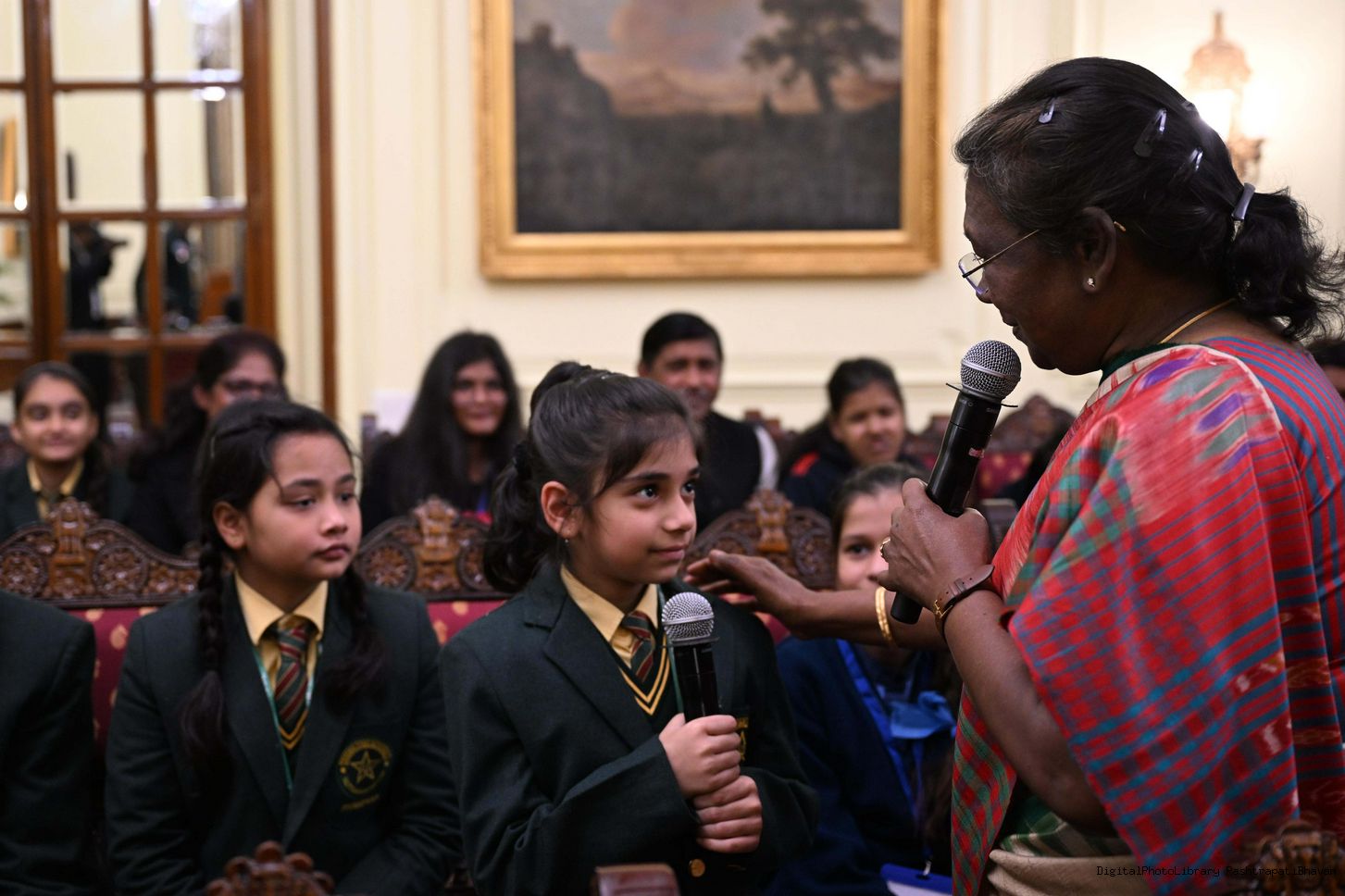 | Caption: | The President of India, Smt. Droupadi Murmu received New Year greetings from students of various schools at Rashtrapati Bhavan on January 01, 2023. |