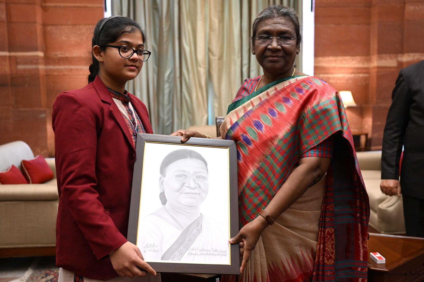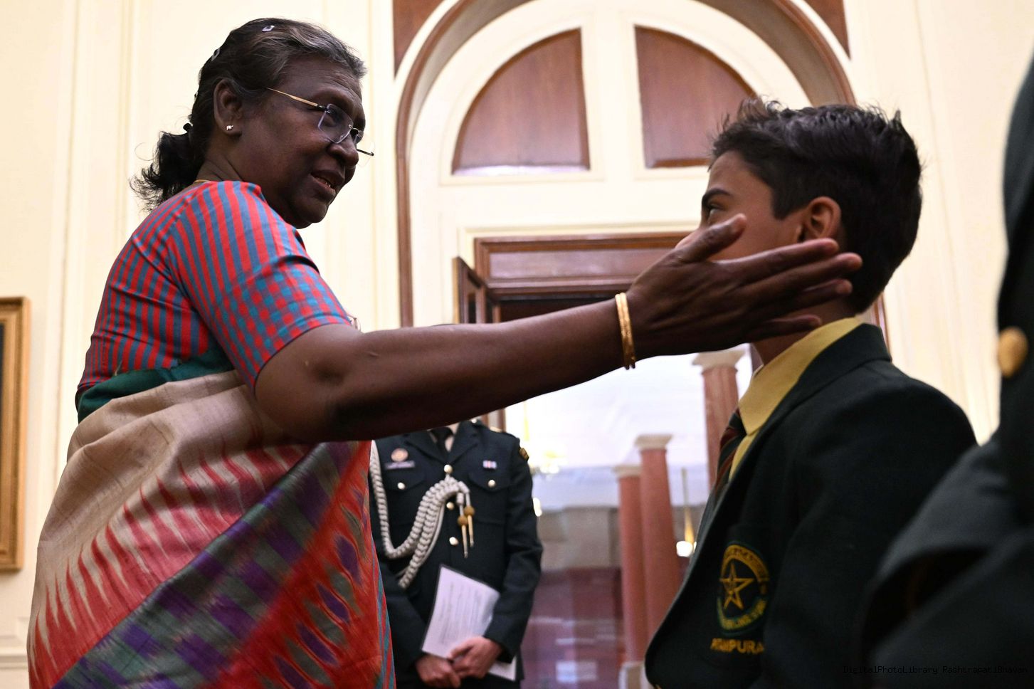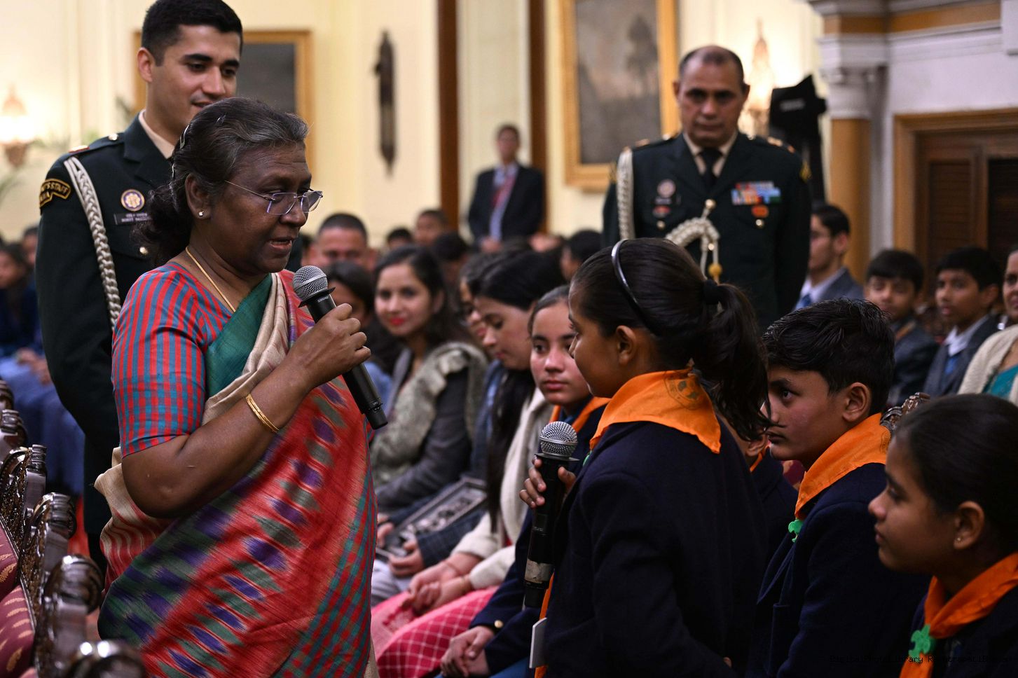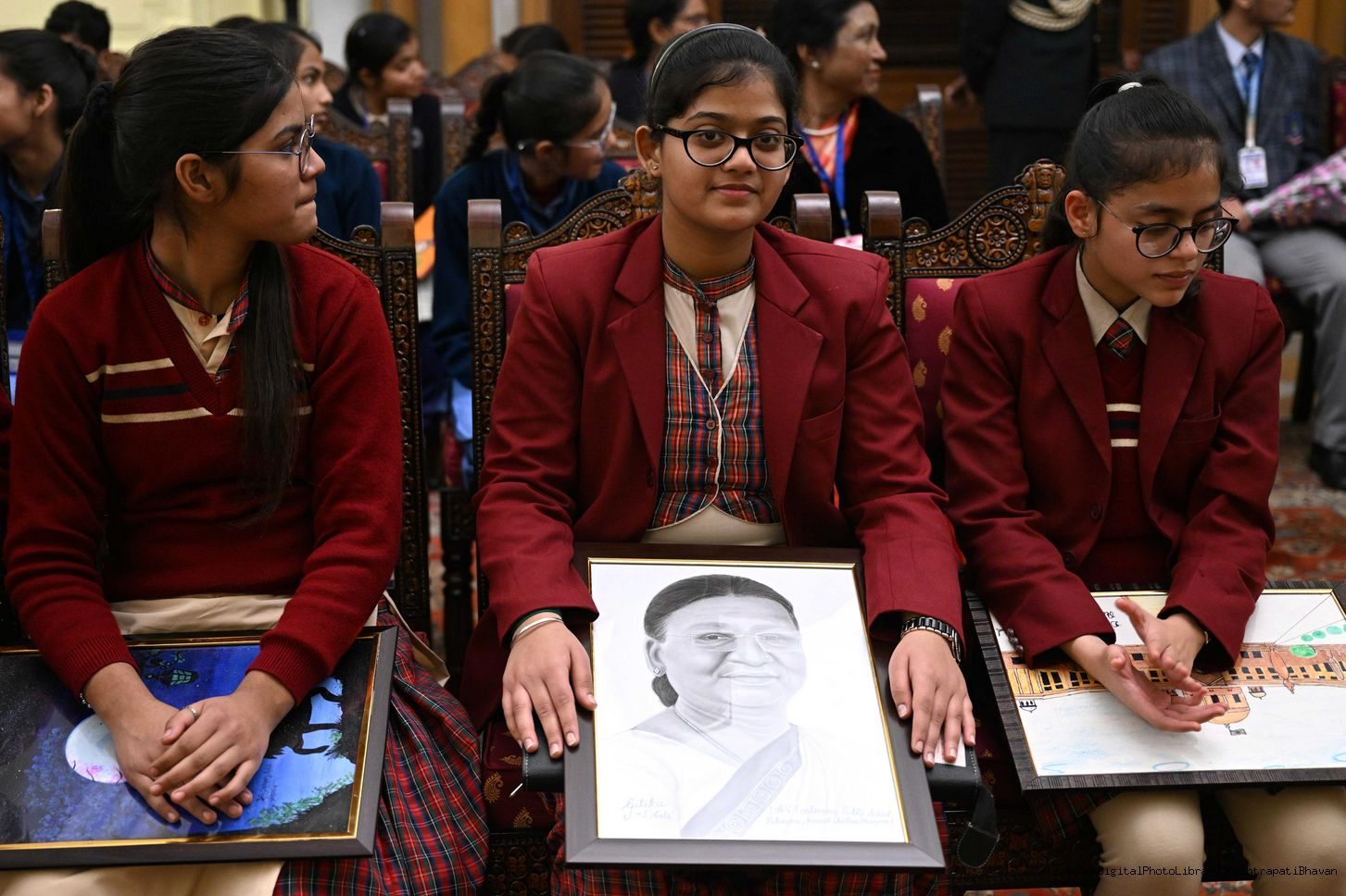 | Caption: | The President of India, Smt. Droupadi Murmu received New Year greetings from students of various schools at Rashtrapati Bhavan on January 01, 2023. |