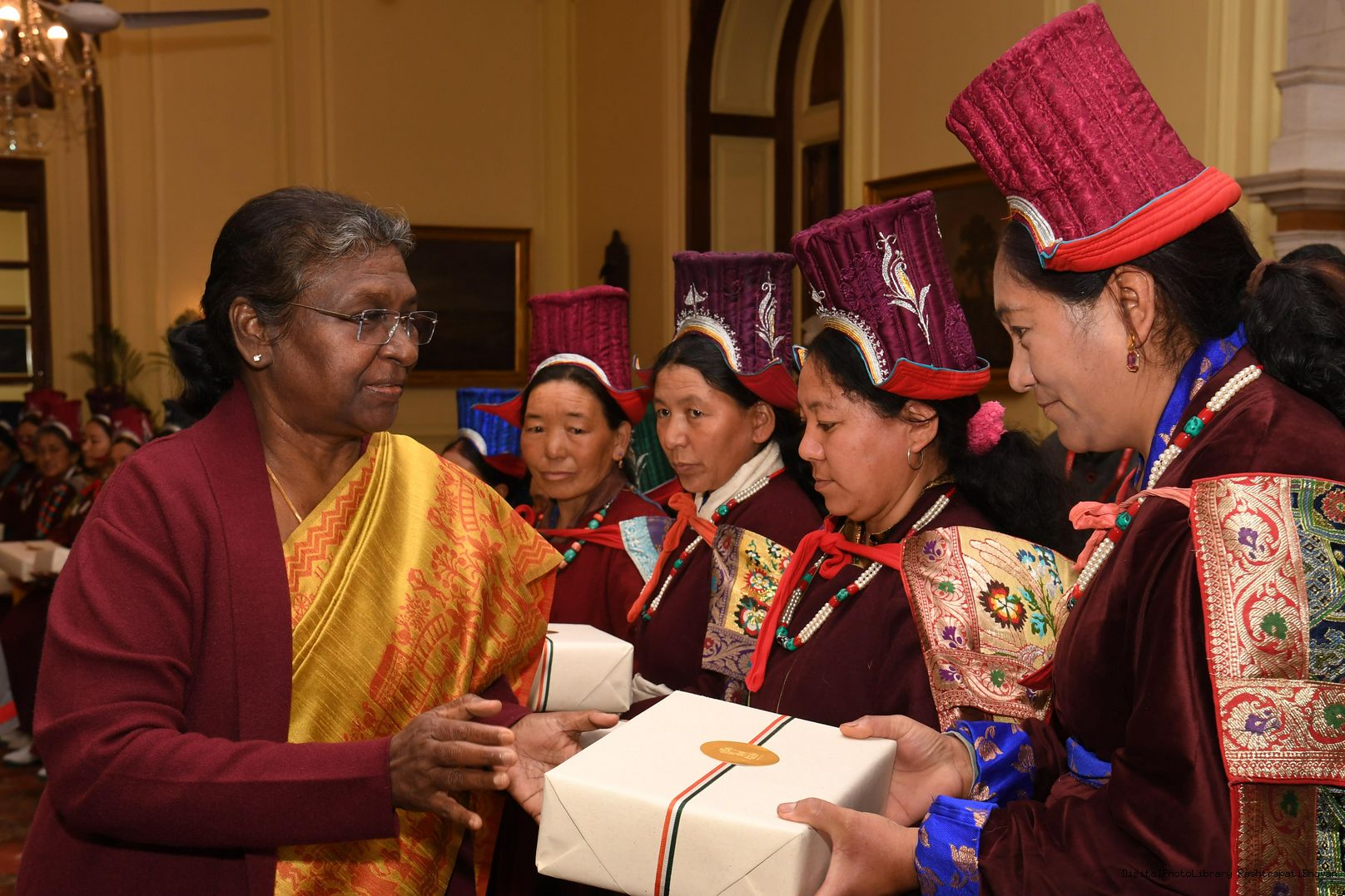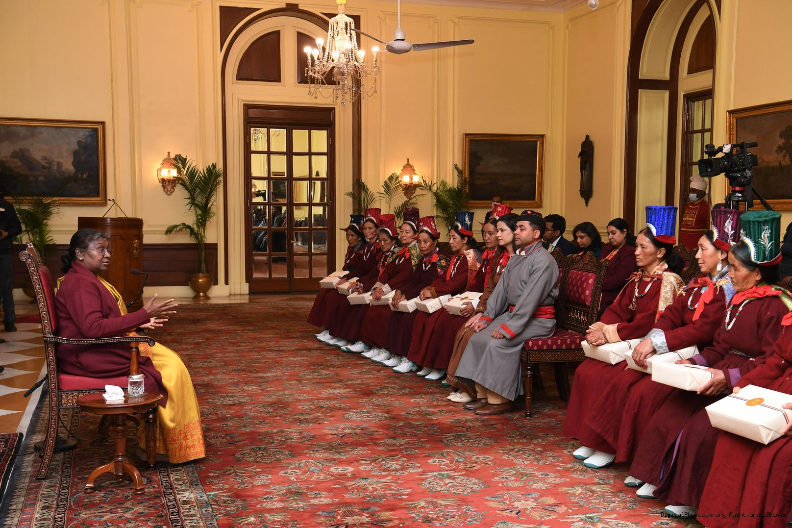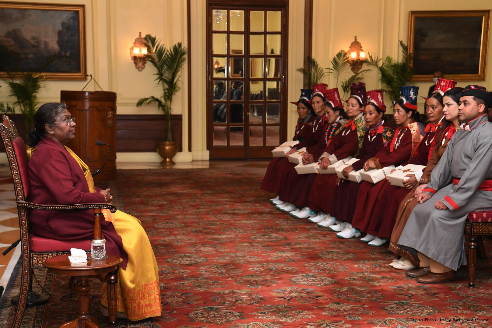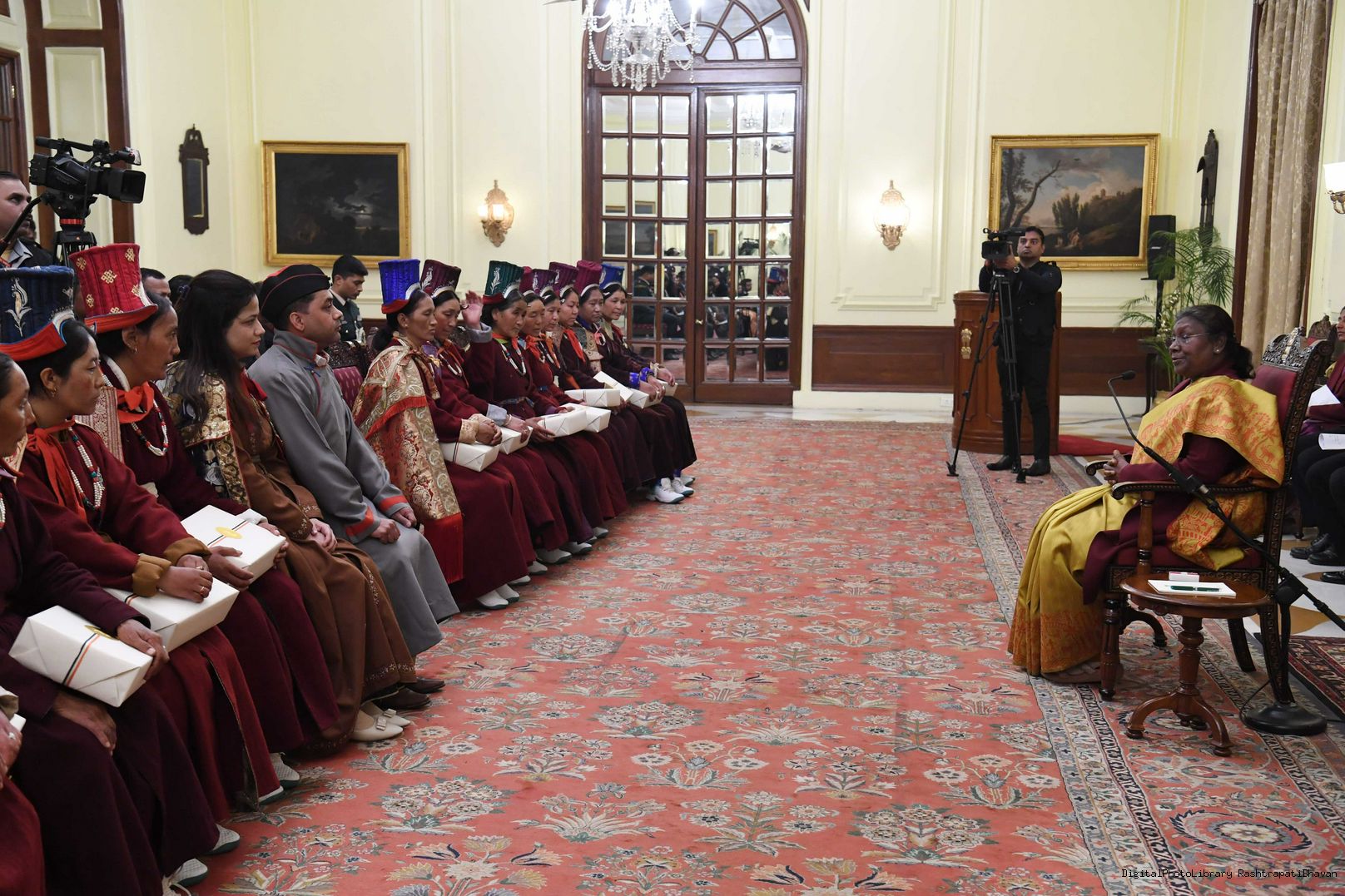 | Caption: | The President of India, Smt. Droupadi Murmu meeting with Veer Nari's Leh Region at Rashtrapati Bhavan on January 02, 2023 |