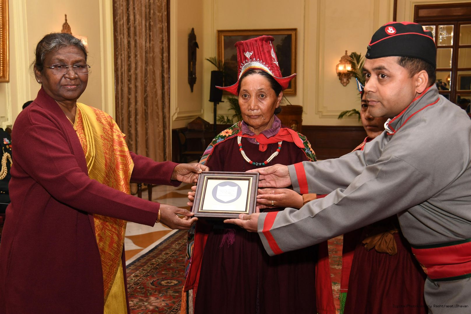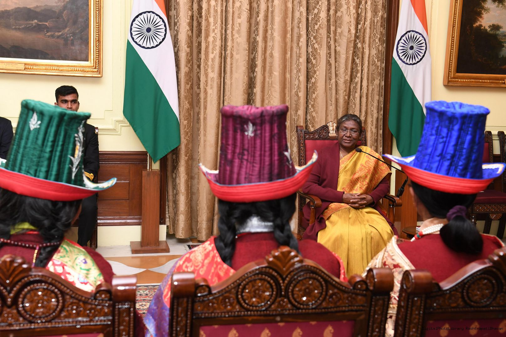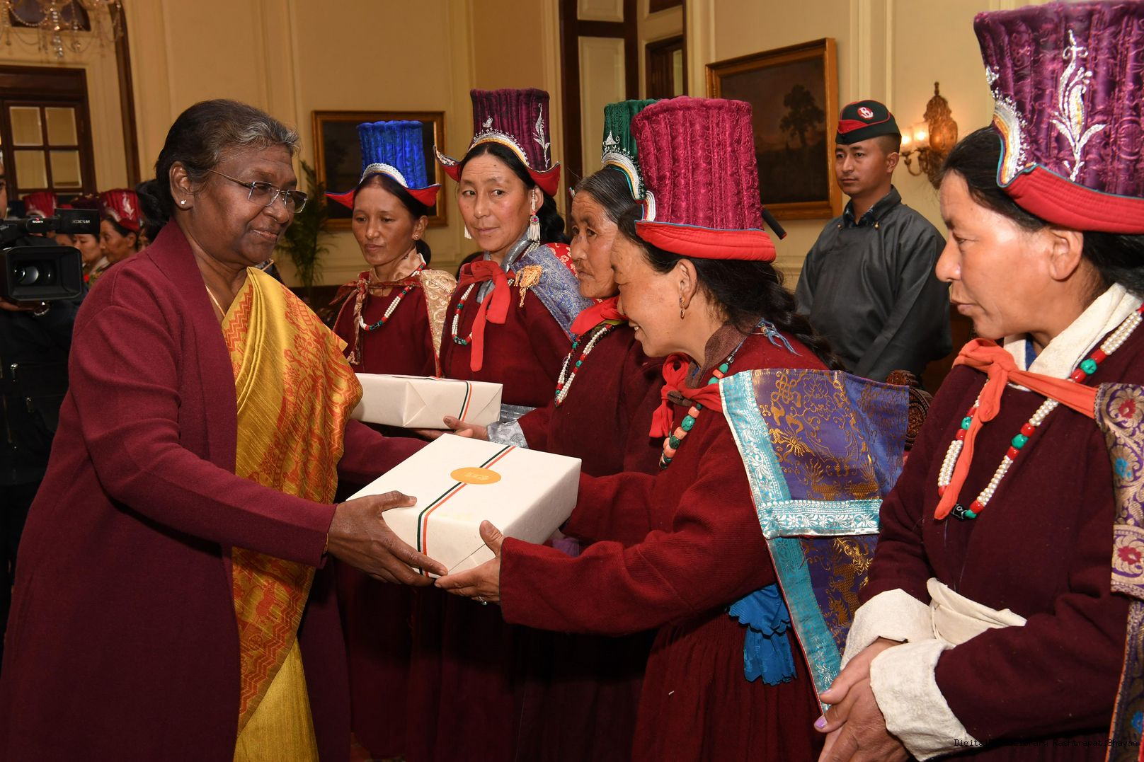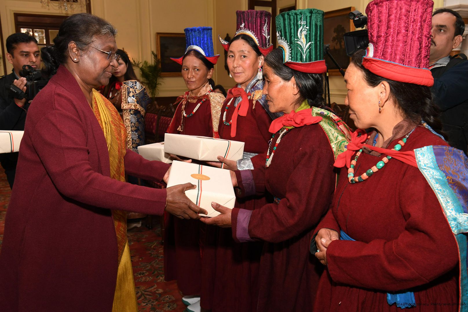 | Caption: | The President of India, Smt. Droupadi Murmu meeting with Veer Nari's Leh Region at Rashtrapati Bhavan on January 02, 2023 |