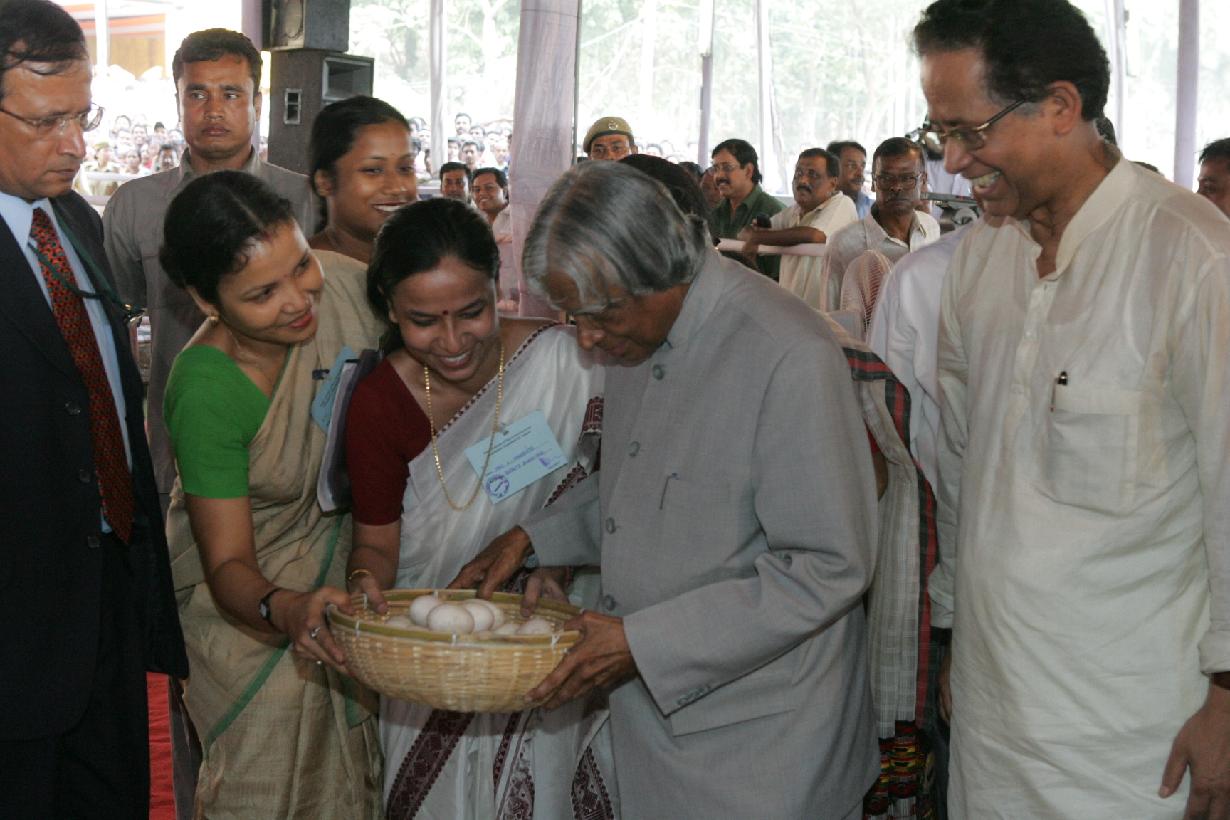| Caption: | The President of India, Dr A P J Abdul Kalam meeting with the Women Self Help Group Engaged in Duck Rearing at Village Gumoria District of Kamrup in Assam on Oct 17, 2006 |