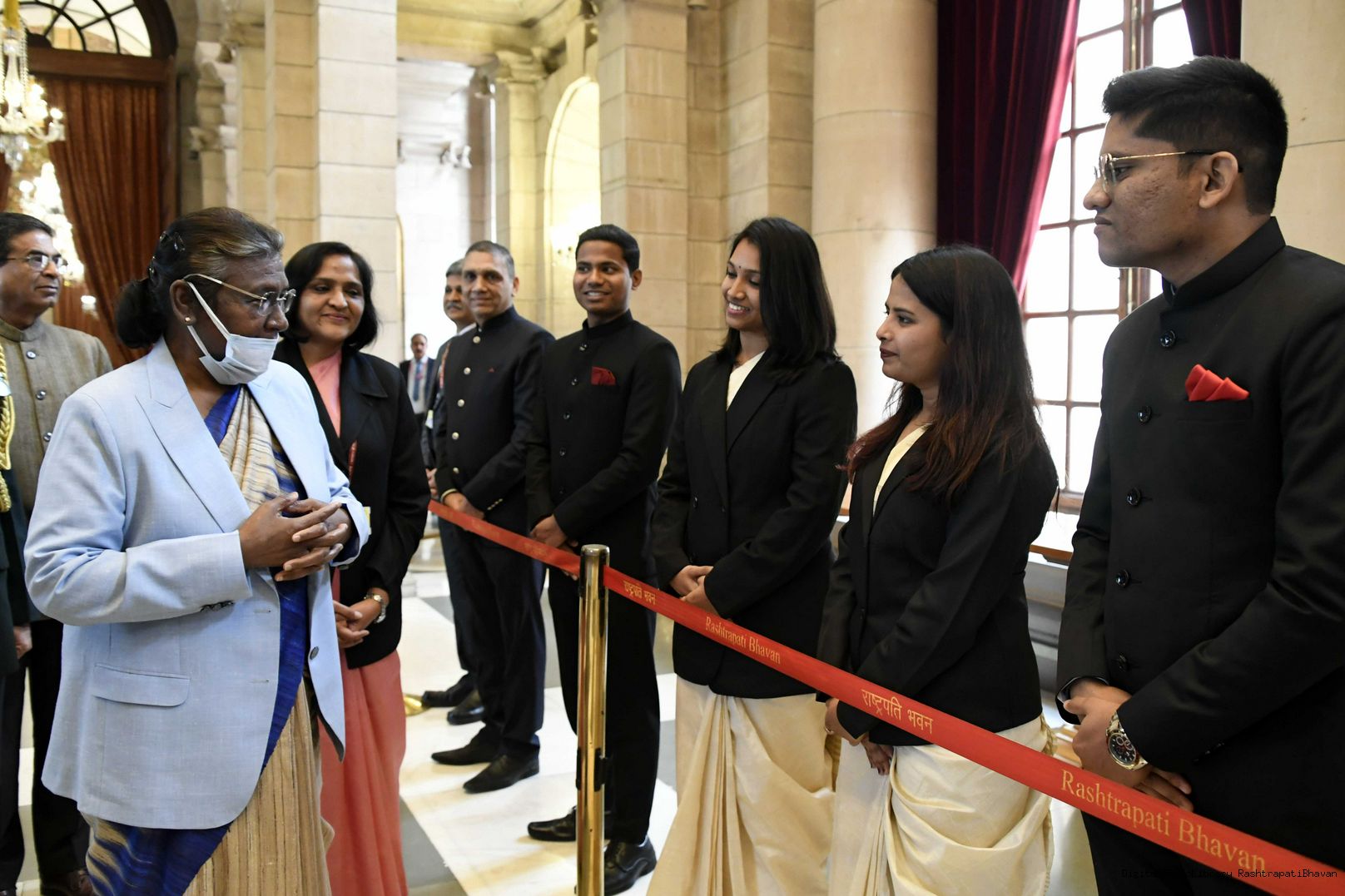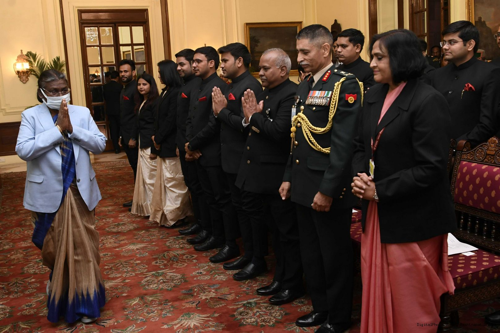 | Caption: | The President of India, Smt. Droupadi Murmu meeting with Officer Trainees of Military Engineer Services (MES) January 05, 2023 |