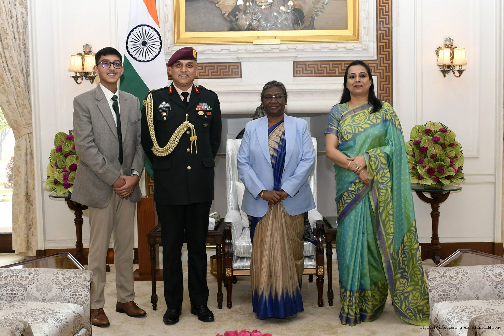 | Caption: | Maj. Gen. Ranjeet Singh Manral, Military Secretary to the President along with his family meeting with the President of India Smt. Droupadi Murmu at Rashtrapati Bhavan on January 05, 2023 |