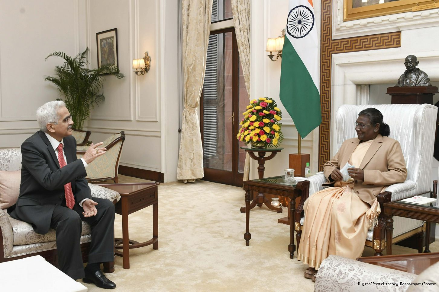 | Caption: | The Governor of Reserve Bank of India, Shri Shaktikanta Das called on the President of India Smt. Droupadi Murmu at Rashtrapati Bhavan on January 06, 2023 |