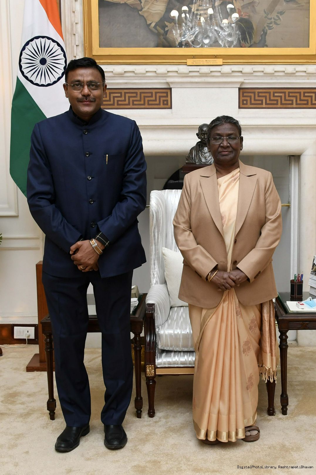 | Caption: | Prof. (Dr.) S.P. Agarwal, Vice Chancellor, Sai Nath University, Ranchi meeting with the President of India Smt. Droupadi Murmu at Rashtrapati Bhavan on January 06, 2023. |