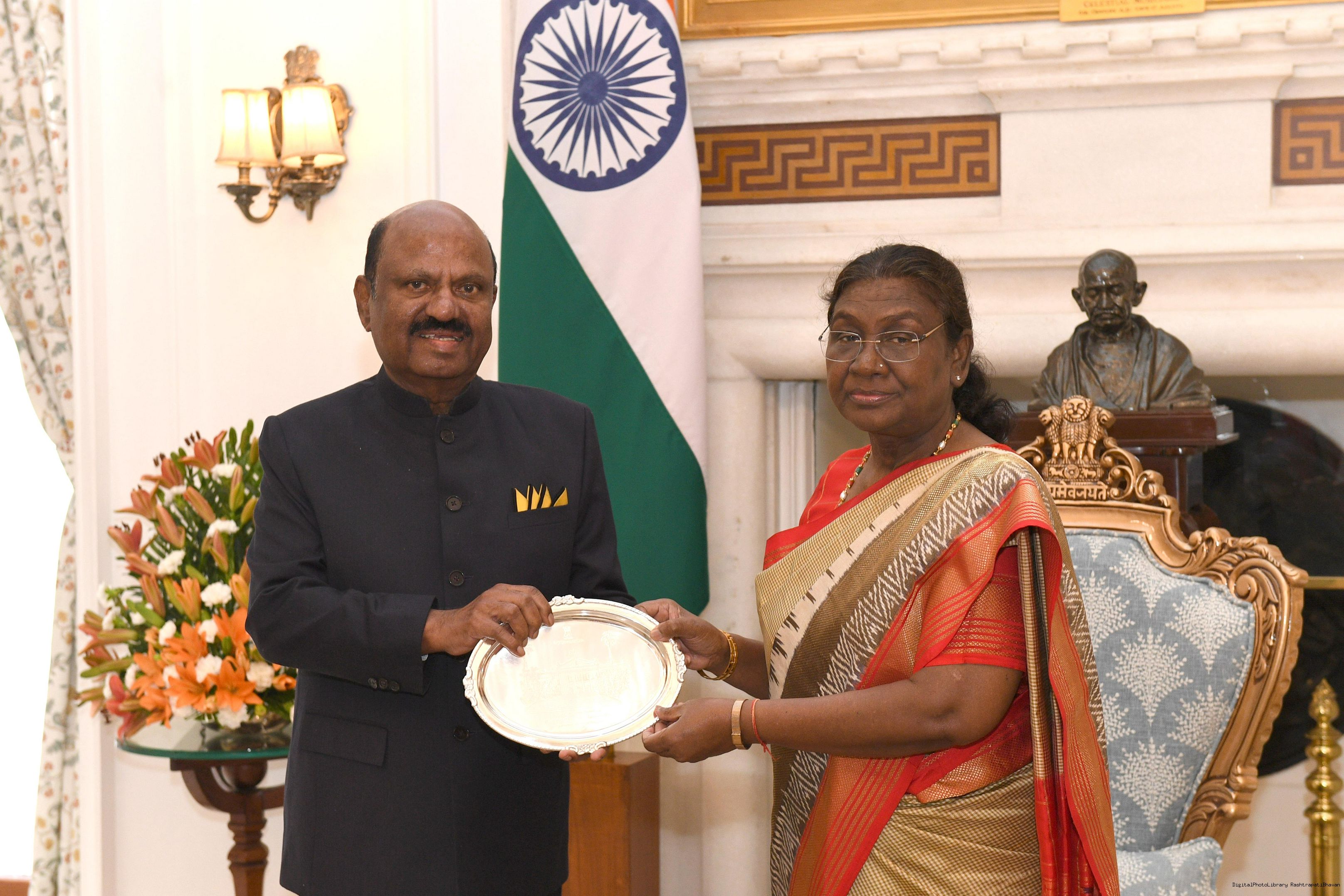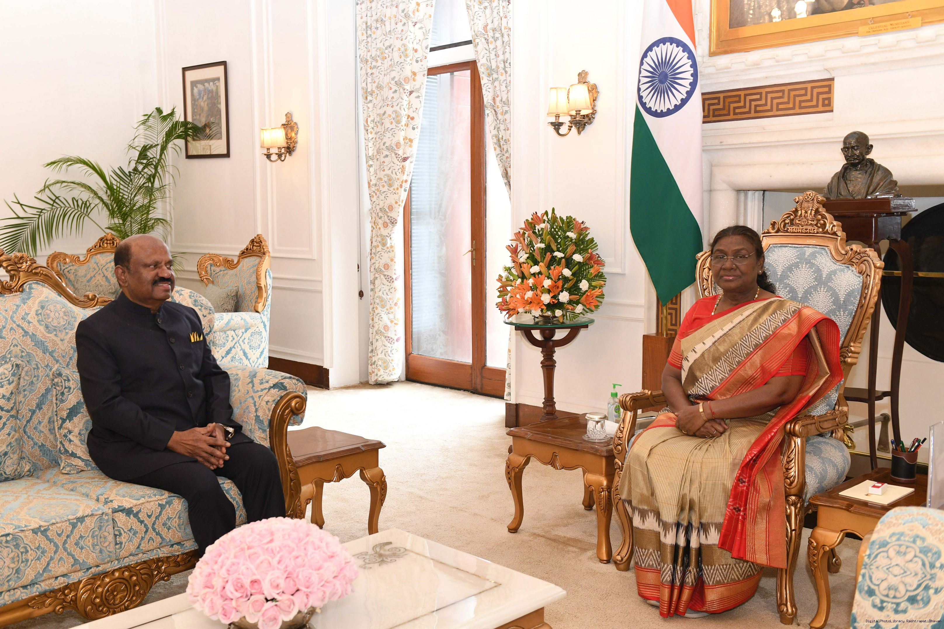 | Caption: | The Governor of West Bengal, Dr C.V. Ananda Bose called on the President of India Smt. Droupadi Murmu at Rashtrapati Bhavan on August 20, 2024. |