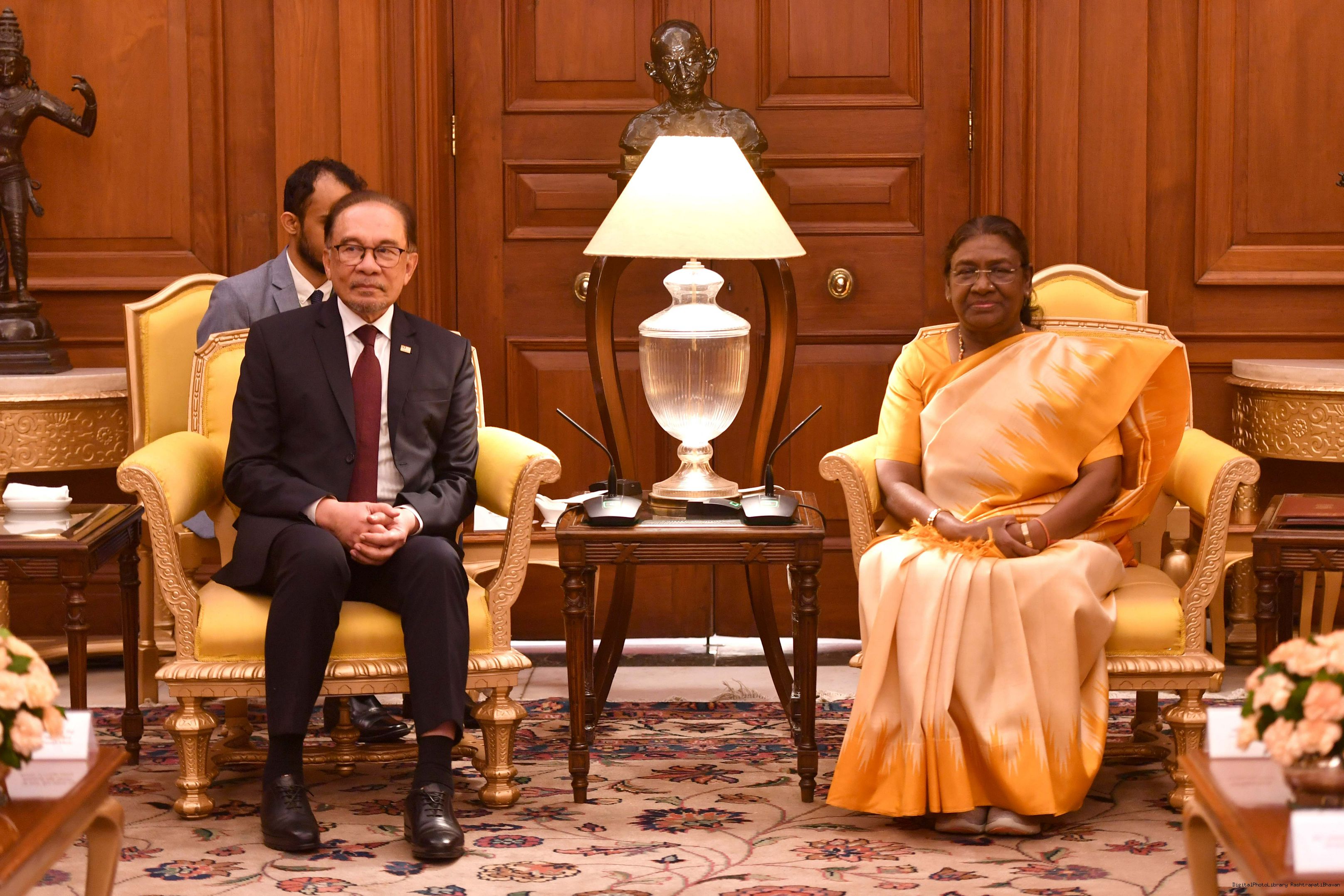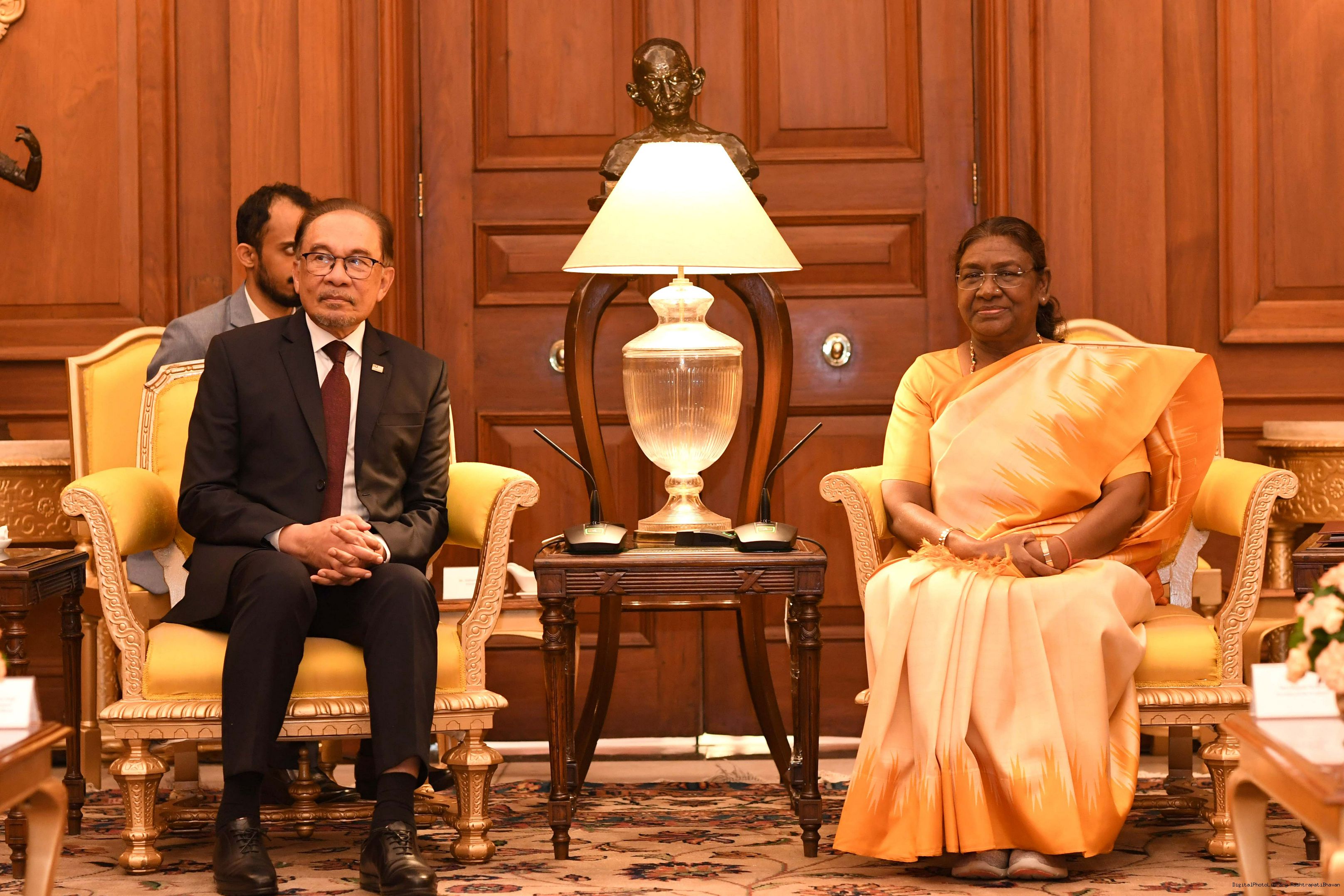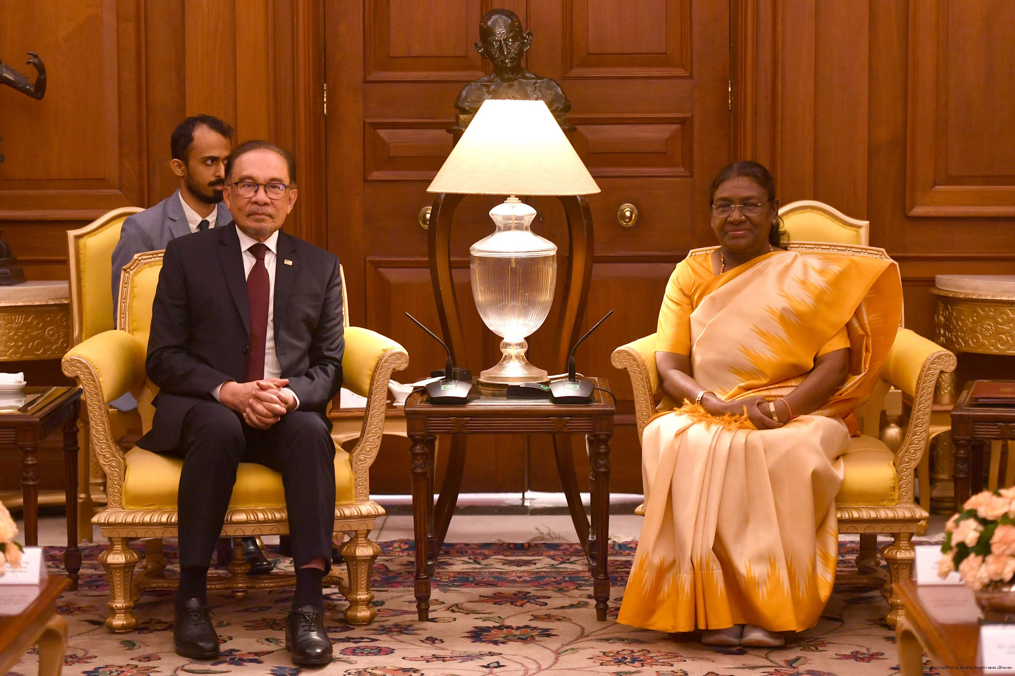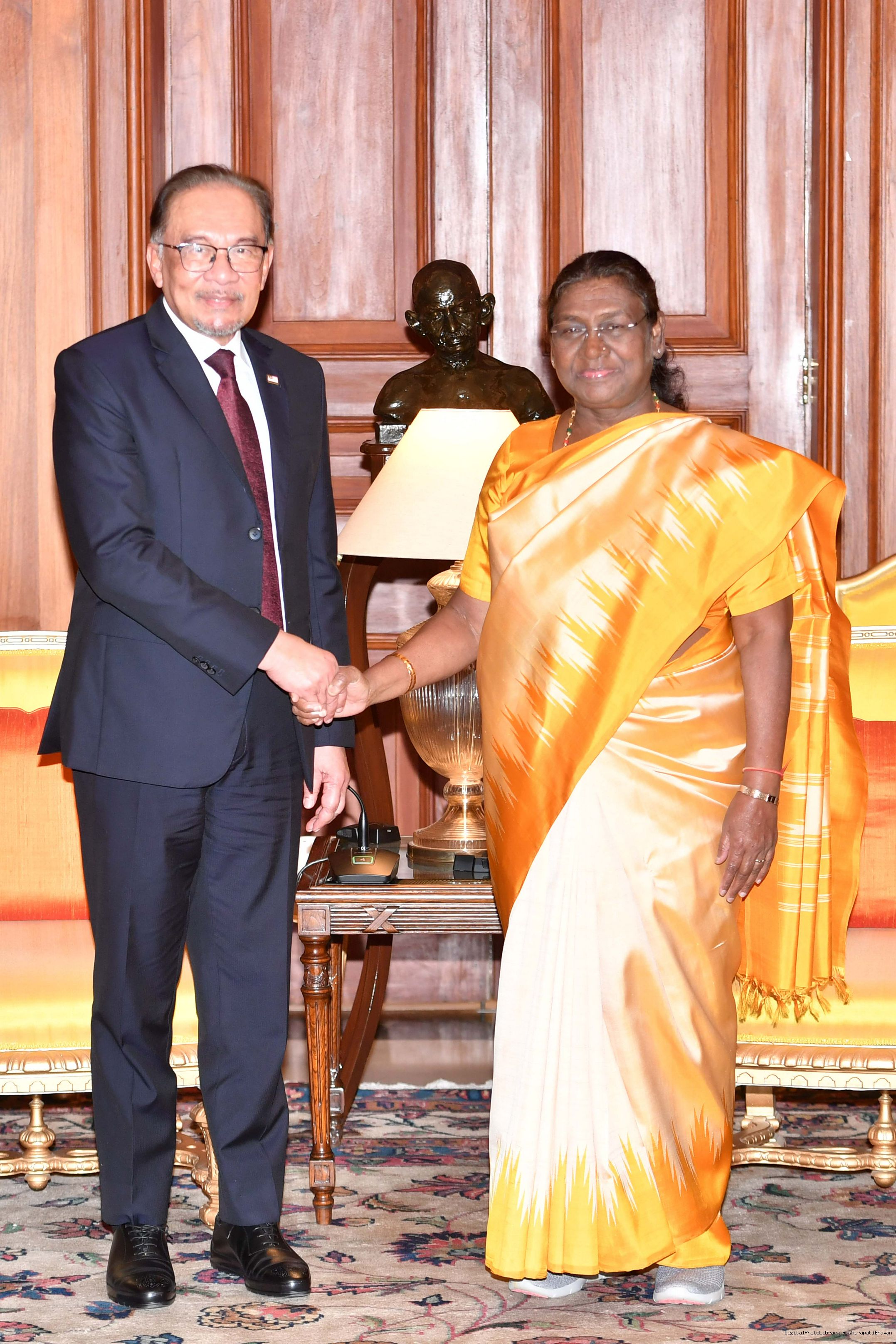 | Caption: | The Prime Minister of Malaysia, H.E. Anwar Ibrahim called on the President of India, Smt. Droupadi Murmu at Rashtrapati Bhavan on August 20, 2024. |