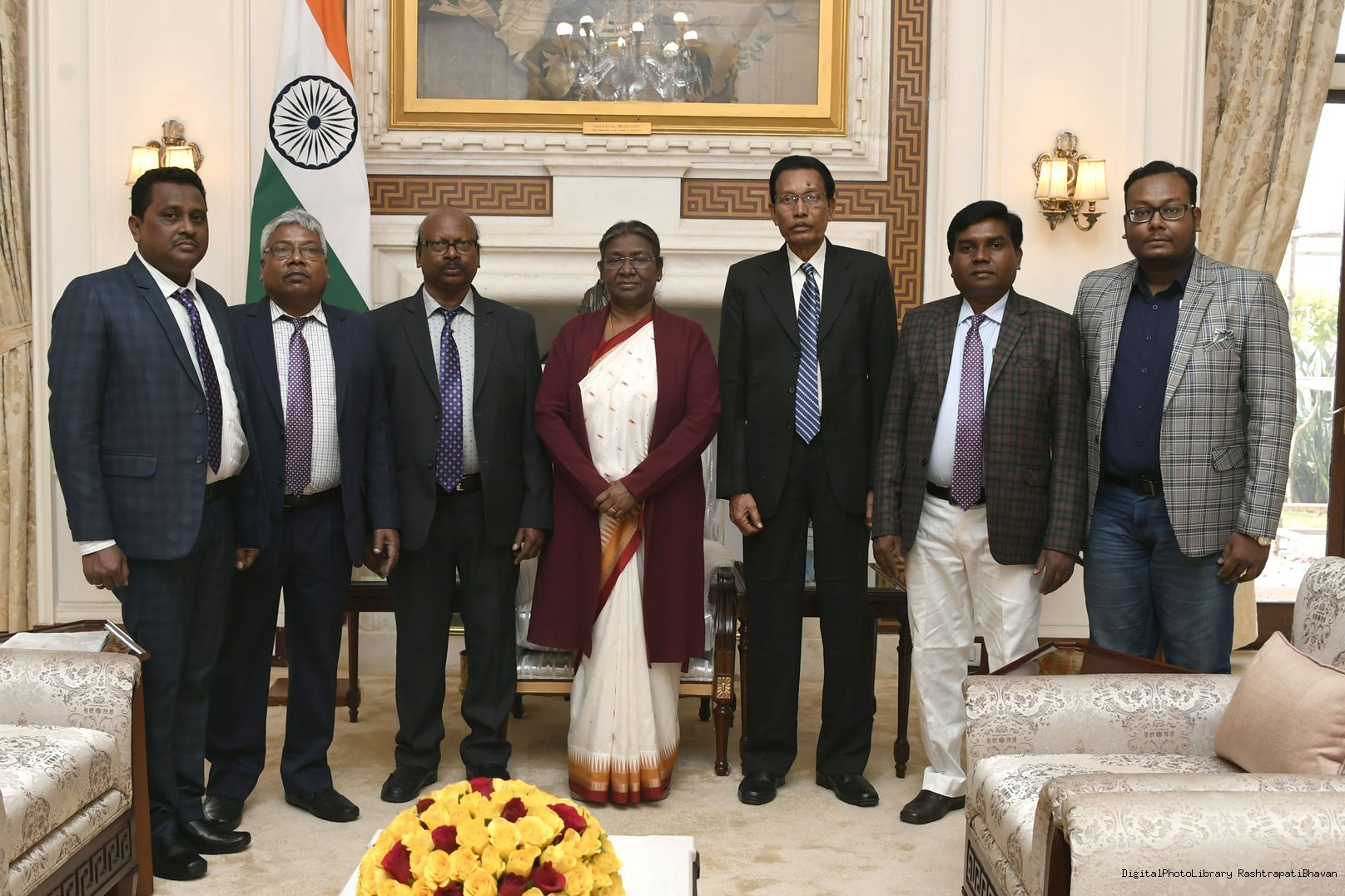 | Caption: | Dr. Subodh Hansda, General Secretary along with others from Adibasi Socio-Educational Cultural Association, West Bengal meeting with the President of India Smt. Droupadi Murmu at Rashtrapati Bhavan on January 06, 2023. |