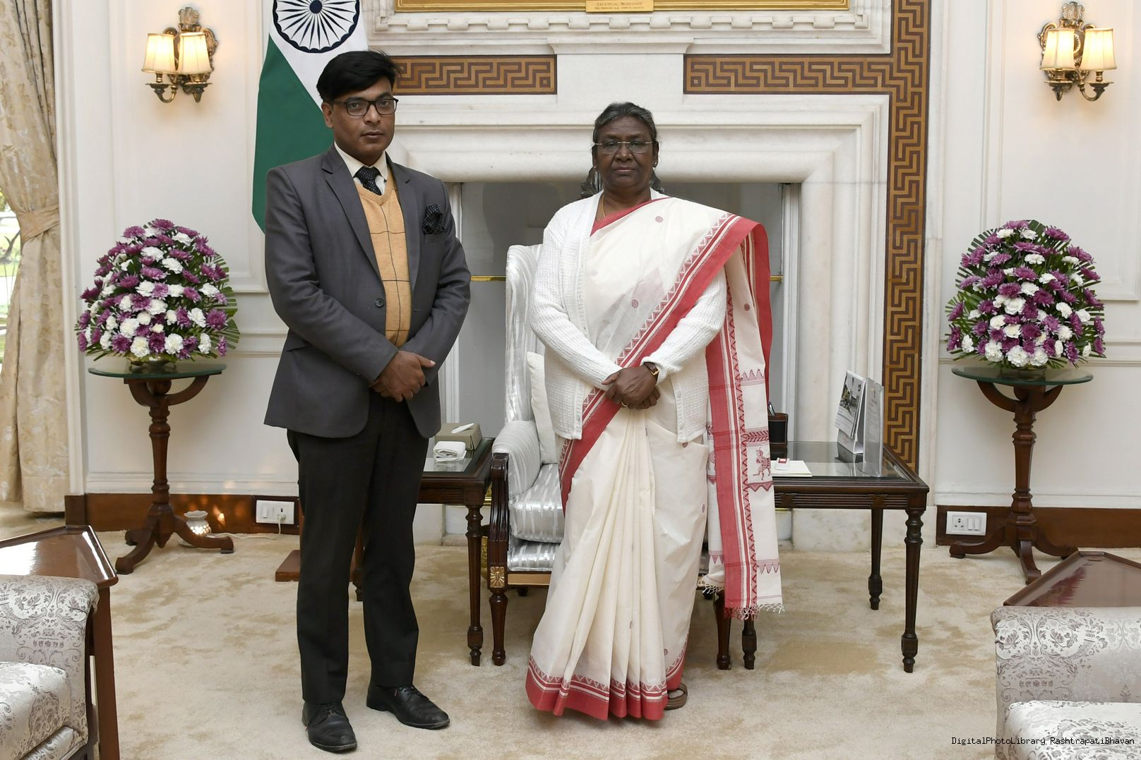 | Caption: | Dr. Raquib Alam, Asst. Professor, University Polytechnic, Jamia Millia Islamia (Central University) meeting with the President of India Smt. Droupadi Murmu at Rashtrapati Bhavan on January 13, 2023. |