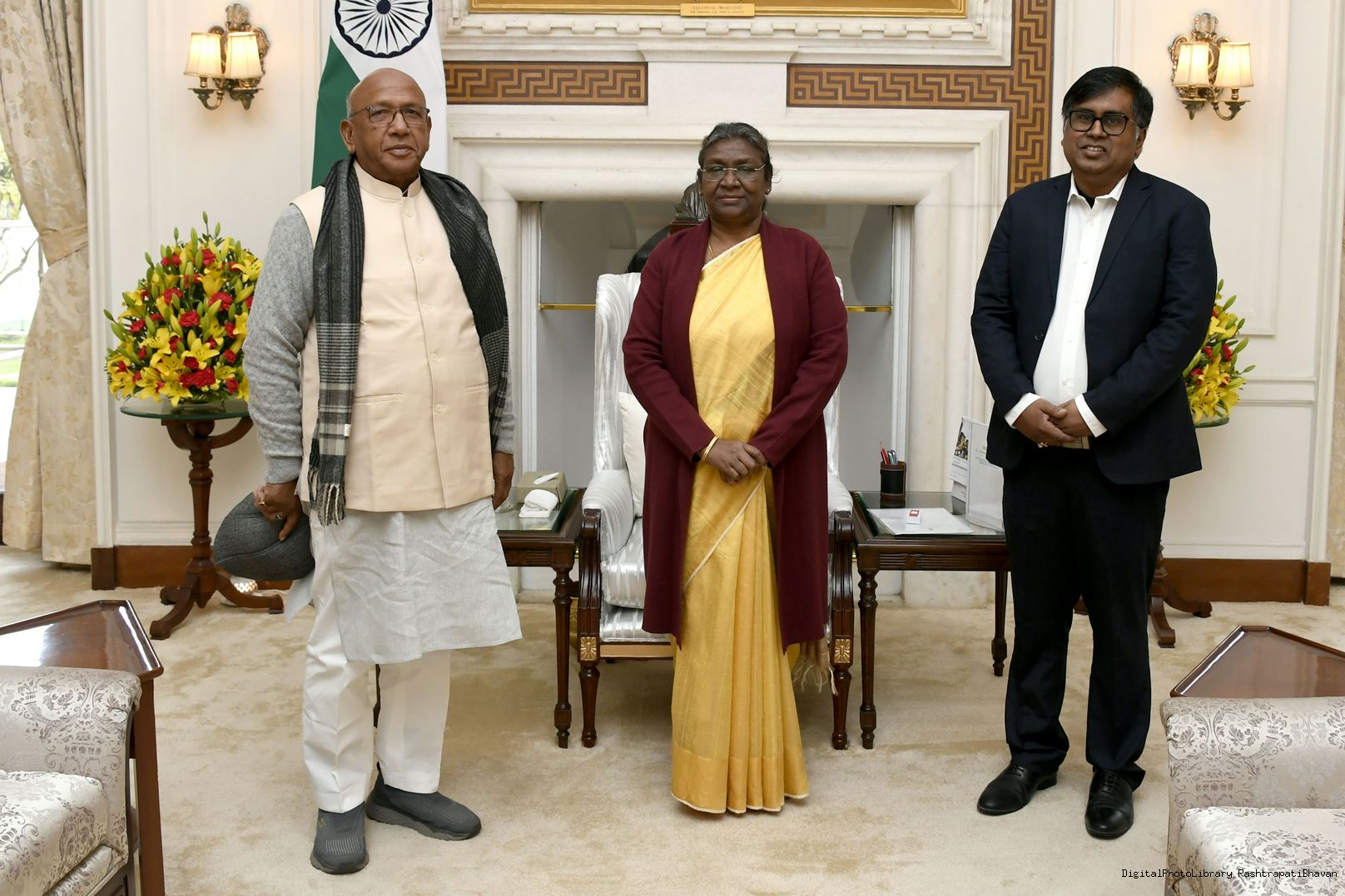 | Caption: | Shri Saryu Roy, MLA, Jharkhand along with Shri Anshul Sharan, working President, Yugantar Bharati, Ranchi meeting with the President of India Smt. Droupadi Murmu at Rashtrapati Bhavan on January 14, 2023. |