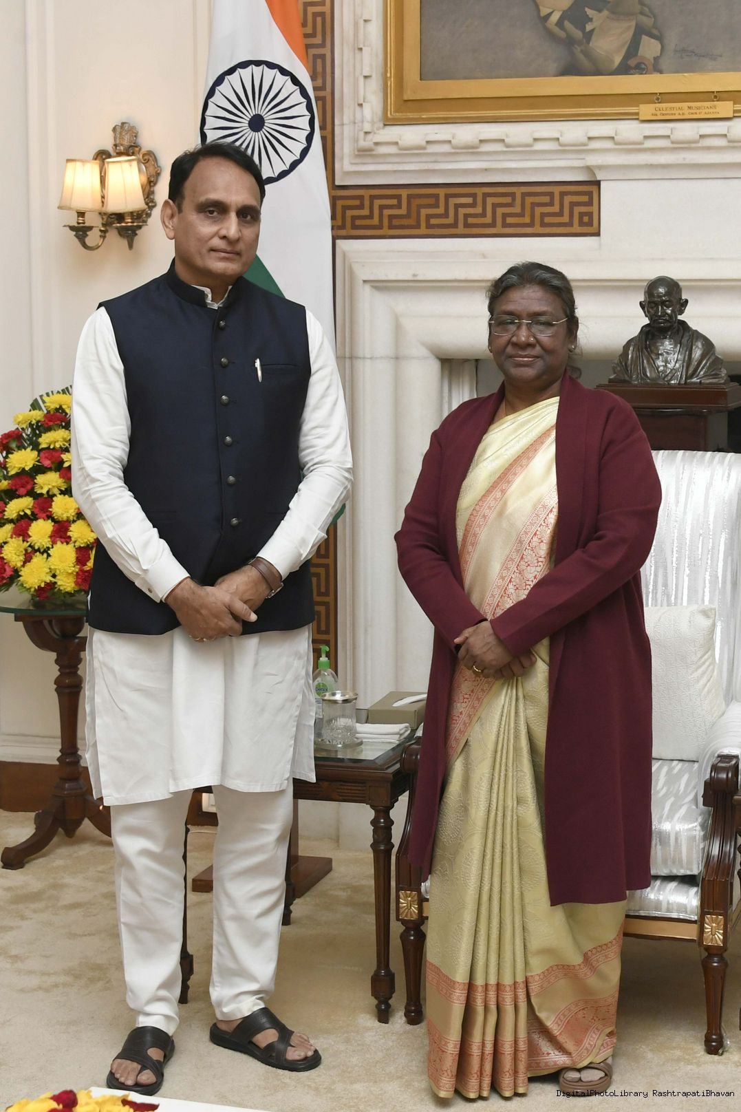 | Caption: | Prof. Rakesh Sinha, MP (RS) meeting with the President of India Smt. Droupadi Murmu at Rashtrapati Bhavan on January 20, 2023. |