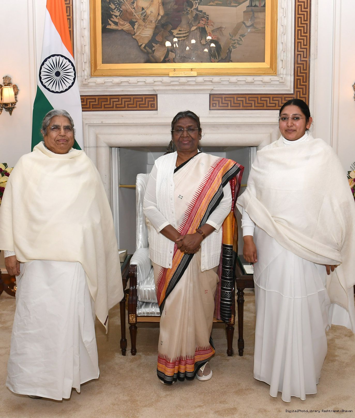 | Caption: | Rajyogini BK Asha, Director along with BK Nikita Agrawal from Brahma Kumaris, Om Shanti Retreat Centre, Gurugram meeting with the President of India Smt. Droupadi Murmu at Rashtrapati Bhavan on January 21, 2023. |