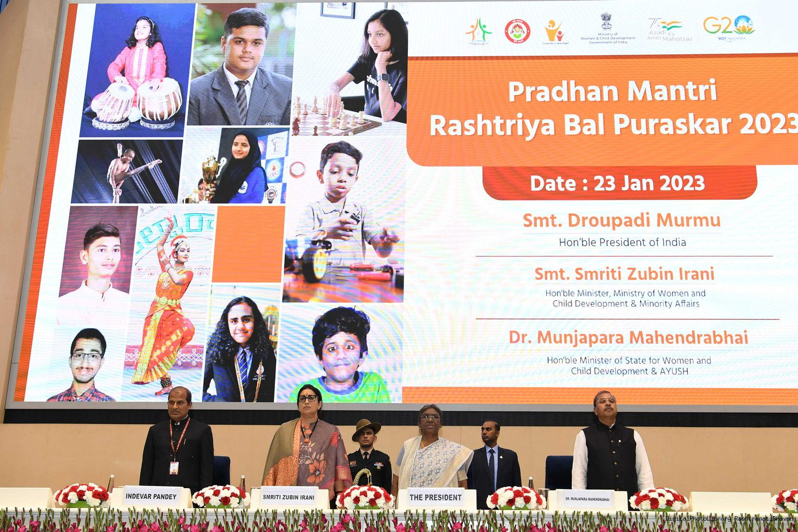 | Caption: | Presenting the Pradhan Mantri Rashtriya Bal Puruskar (PMRBP) meeting with the President of India Smt. Droupadi Murmu at Rashtrapati Bhavan on January 23, 2023. |