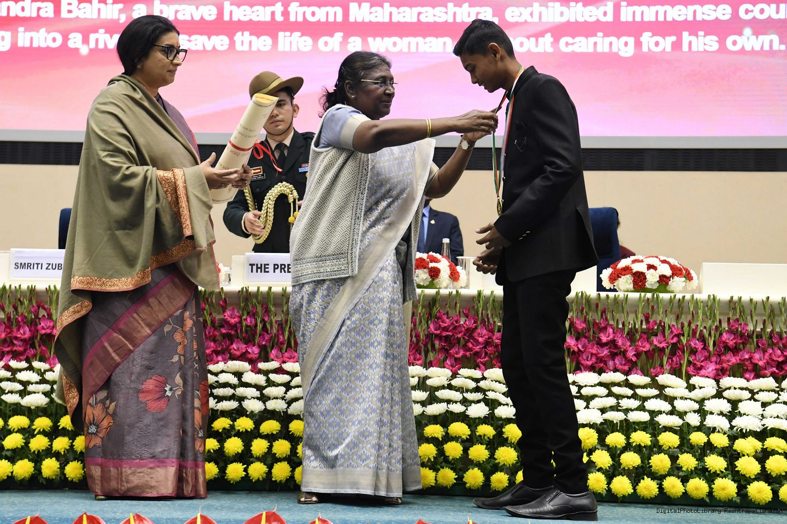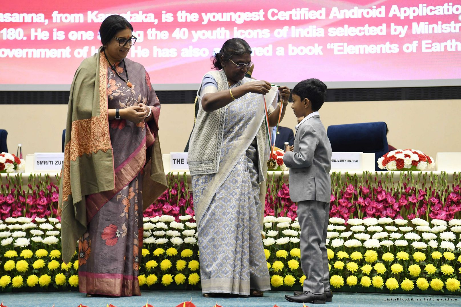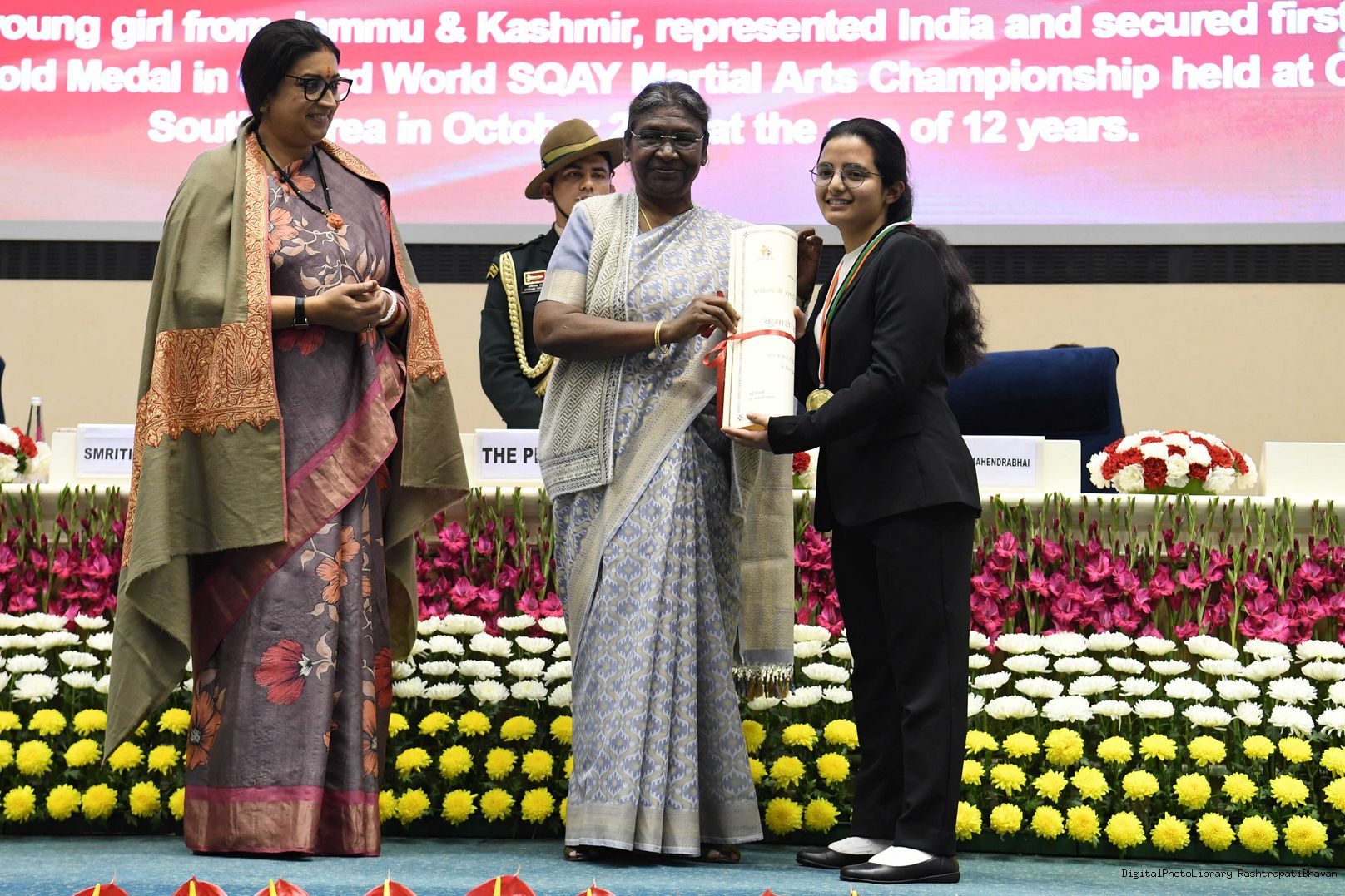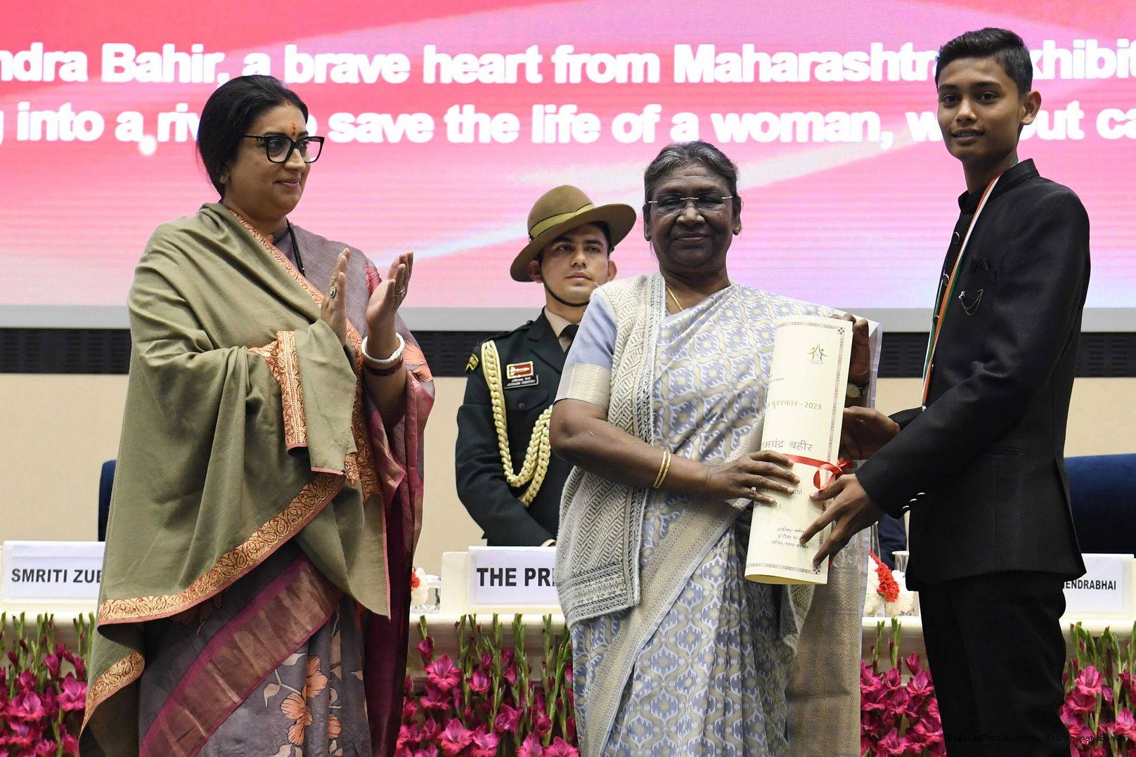 | Caption: | Presenting the Pradhan Mantri Rashtriya Bal Puruskar (PMRBP) meeting with the President of India Smt. Droupadi Murmu at Rashtrapati Bhavan on January 23, 2023. |