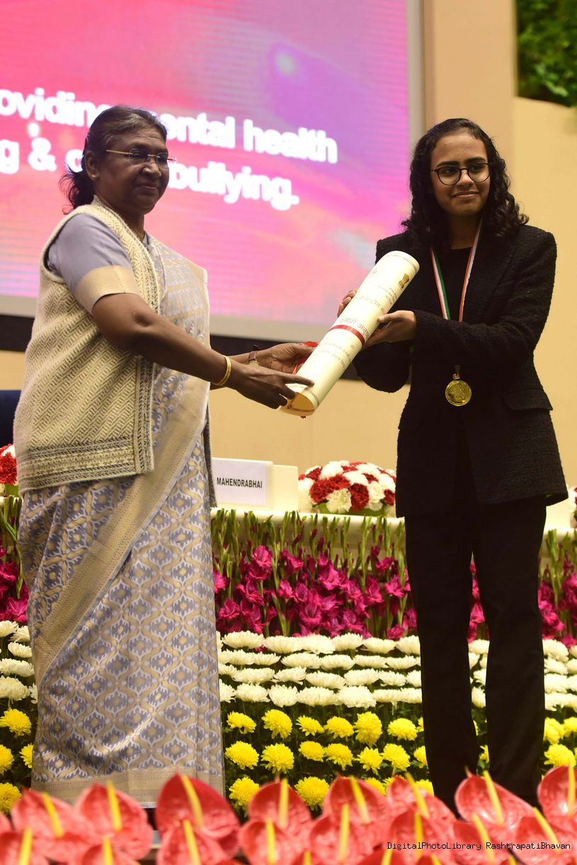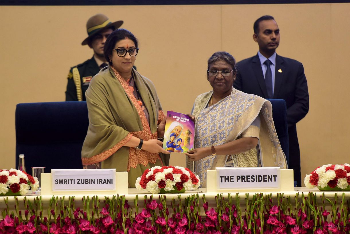 | Caption: | Presenting the Pradhan Mantri Rashtriya Bal Puruskar (PMRBP) meeting with the President of India Smt. Droupadi Murmu at Rashtrapati Bhavan on January 23, 2023. |