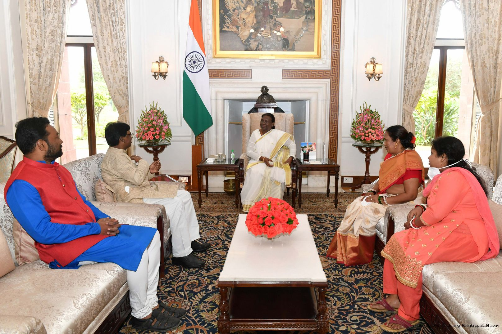 | Caption: | Shri Khagen Murmu, MP (Lok Sabha) along with his family members meeting with the President of India, Smt. Droupadi Murmu, at Rashtrapati Bhavan on July 29, 2022. |