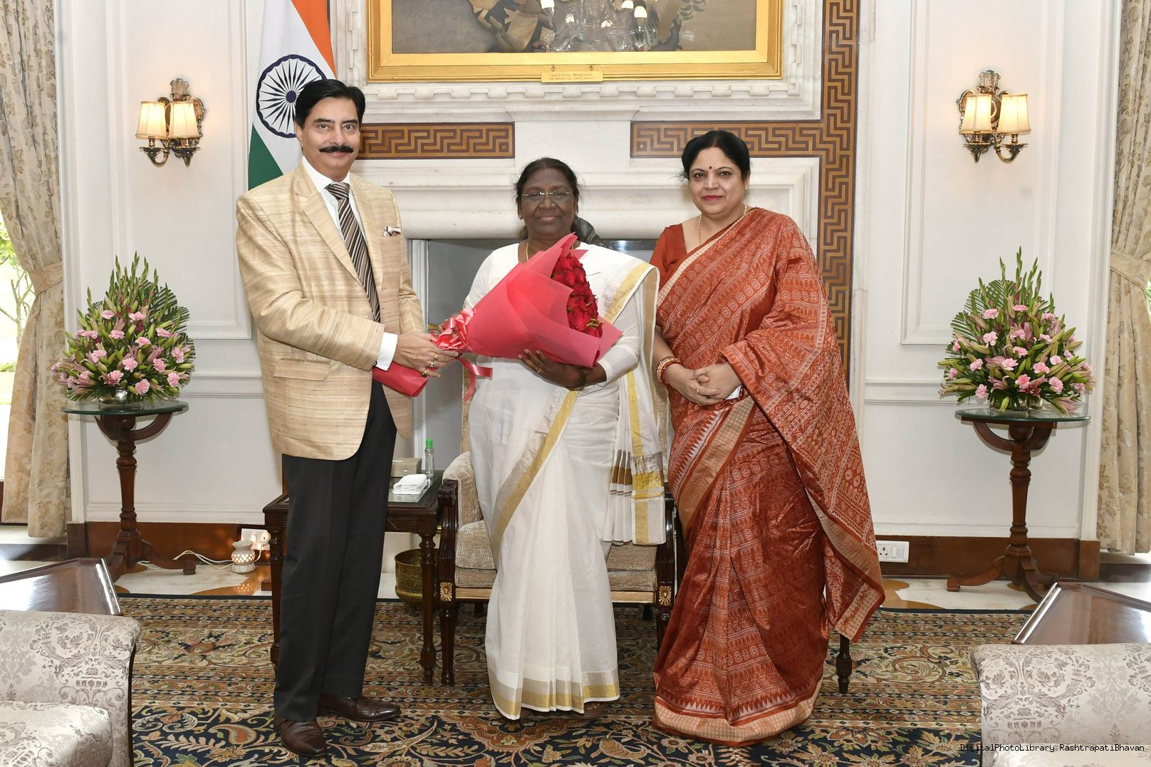 | Caption: | Dr. Justice Ravi Ranjan, Chief Justice, High Court of Jharkhand along with his family members meeting with the President of India, Smt. Droupadi Murmu, at Rashtrapati Bhavan on July 30, 2022. |