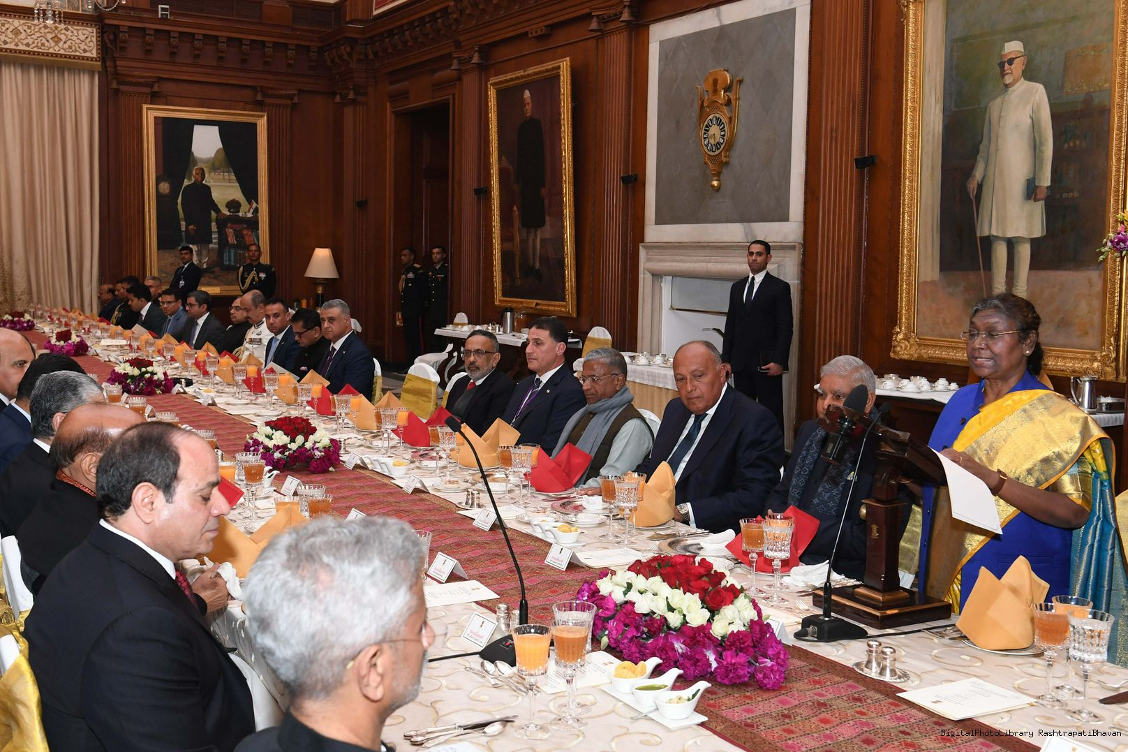 | Caption: | The President of India, Smt. Droupadi Murmu Banquet in honour of the Distinguished Guests at Rashtrapati bhawan on January 25, 2023. |