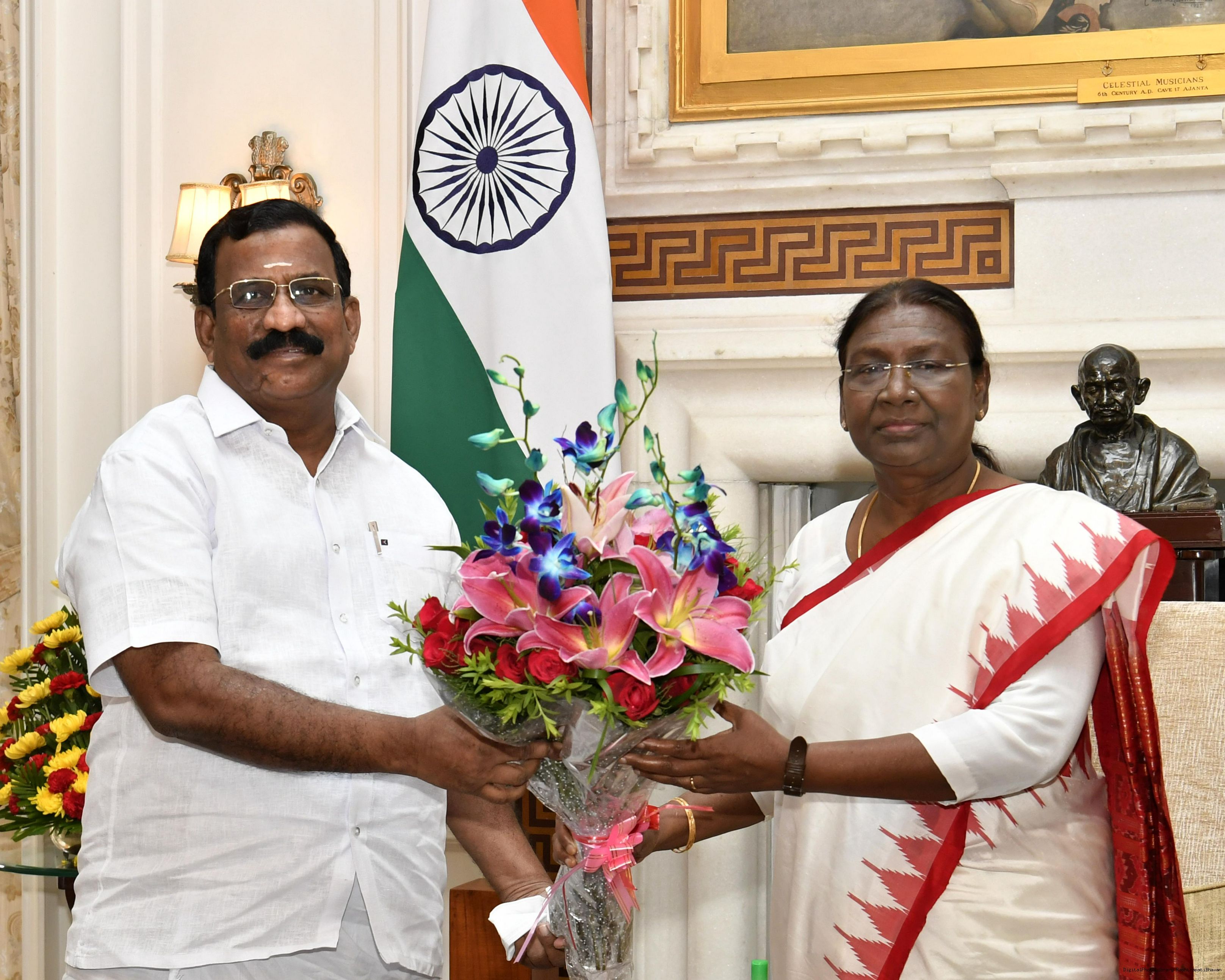 | Caption: | Shri S. Selvaganabathy, MP (Rajya Sabha) meeting with the President of India, Smt. Droupadi Murmu, at Rashtrapati Bhavan on Aug 01, 2022. |
