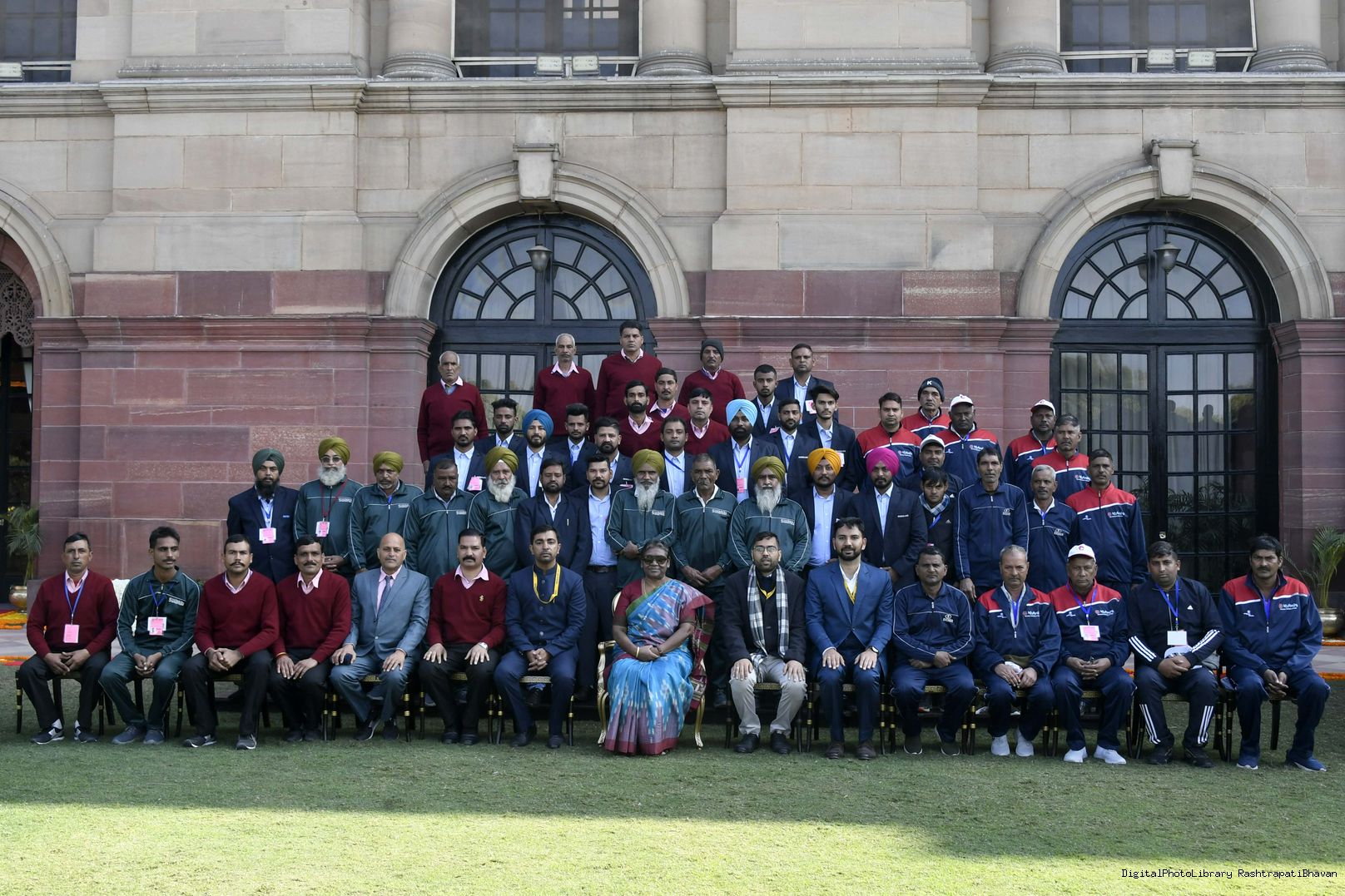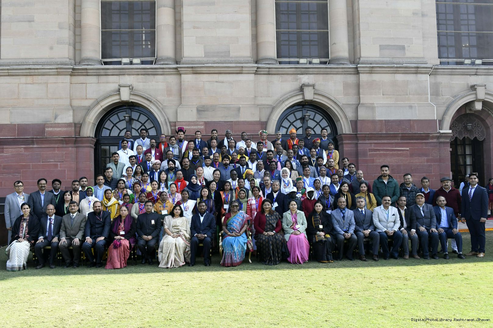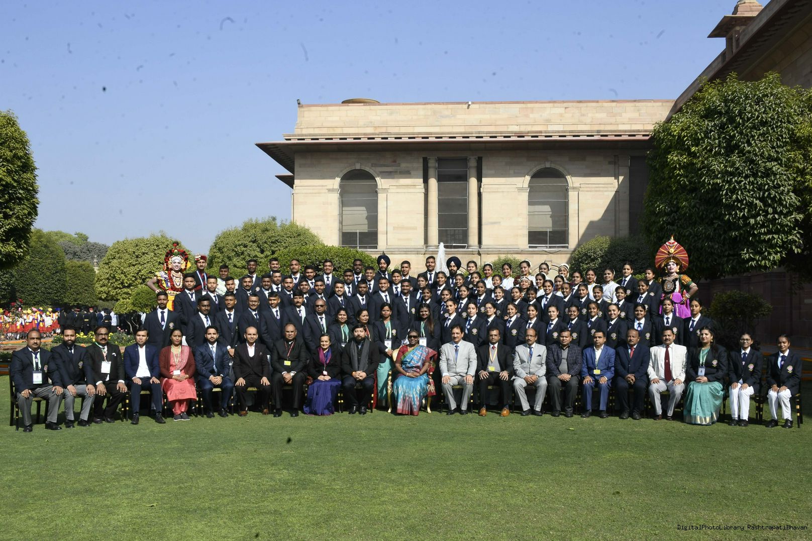 | Caption: | The President of India, Smt. Droupadi Murmu met tribal guests, tableaux artistes and tractor drivers, NSS volunteers and NCC cadets, officials and other participants of the Republic Day Parade 2023, at Rashtrapati Bhavan on January 27, 2023. |