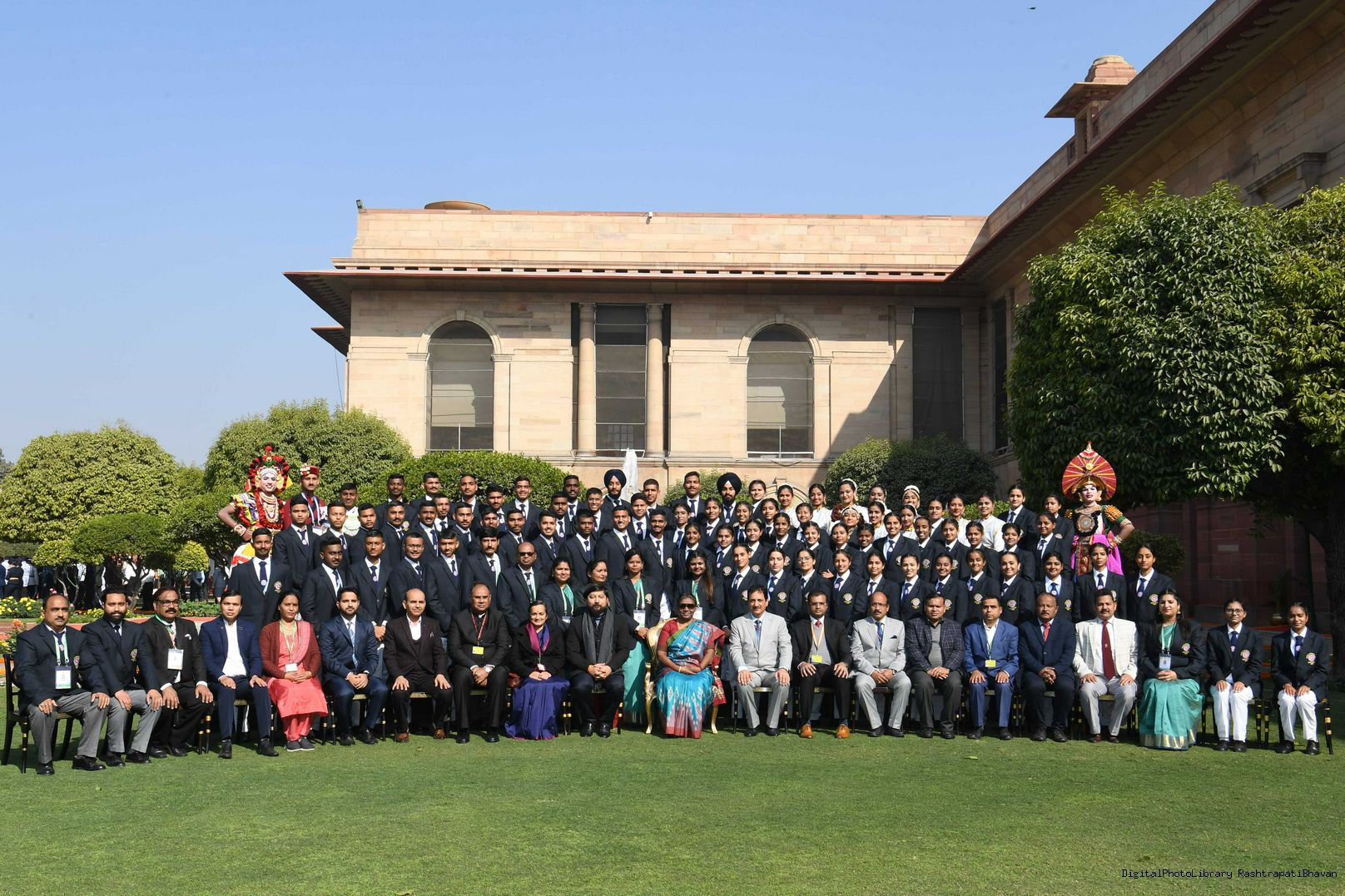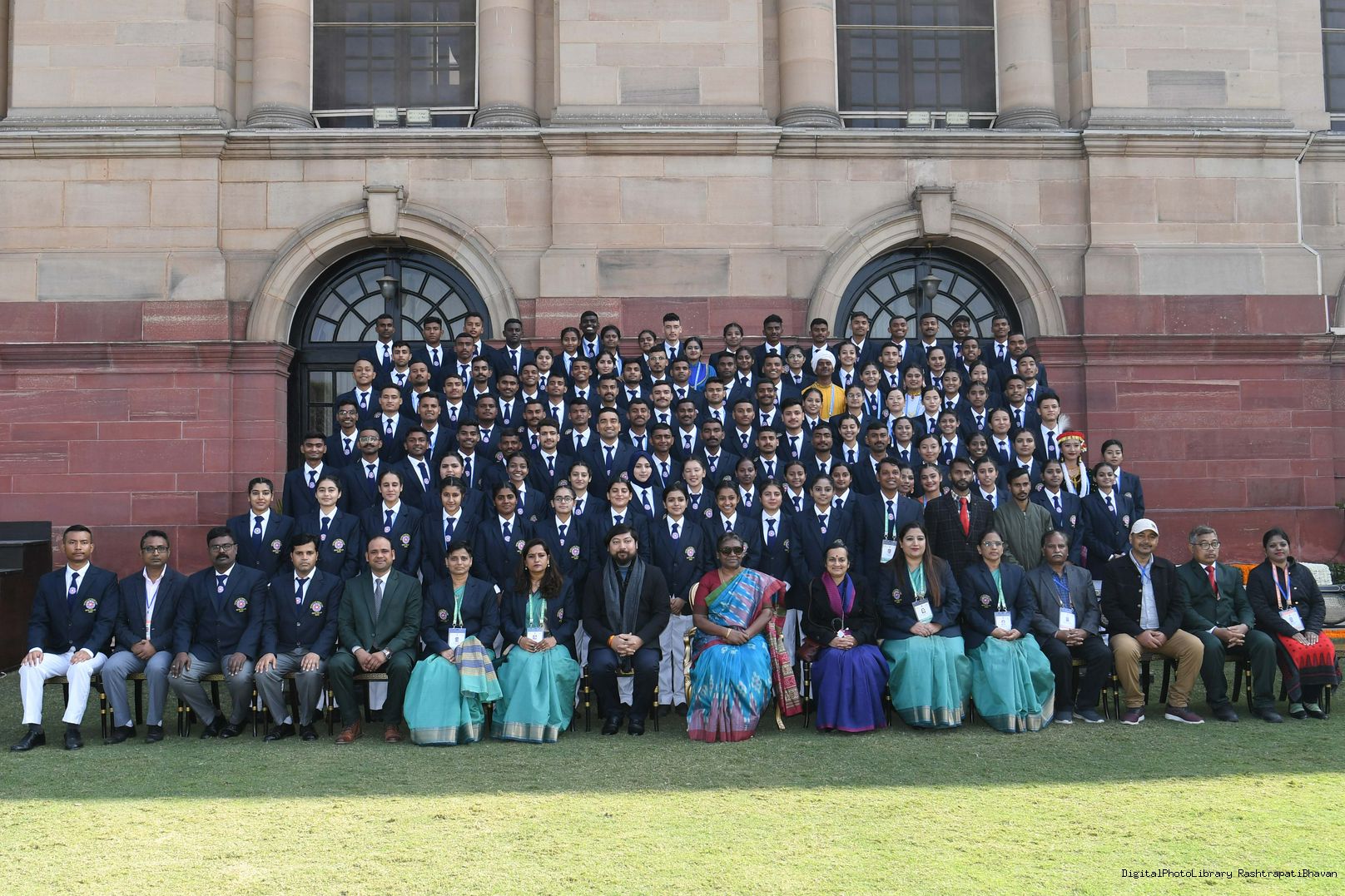| Caption: | The President of India, Smt. Droupadi Murmu met tribal guests, tableaux artistes and tractor drivers, NSS volunteers and NCC cadets, officials and other participants of the Republic Day Parade 2023, at Rashtrapati Bhavan on January 27, 2023. |