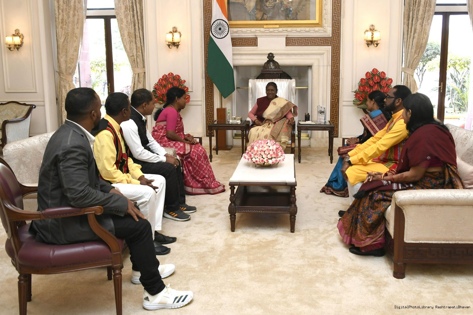 | Caption: | Ms. Mamita Naik, Political-cum-Tribal leader of Odisha along with others meeting with the President of India Smt. Droupadi Murmu at Rashtrapati Bhavan on January 28, 2023. |