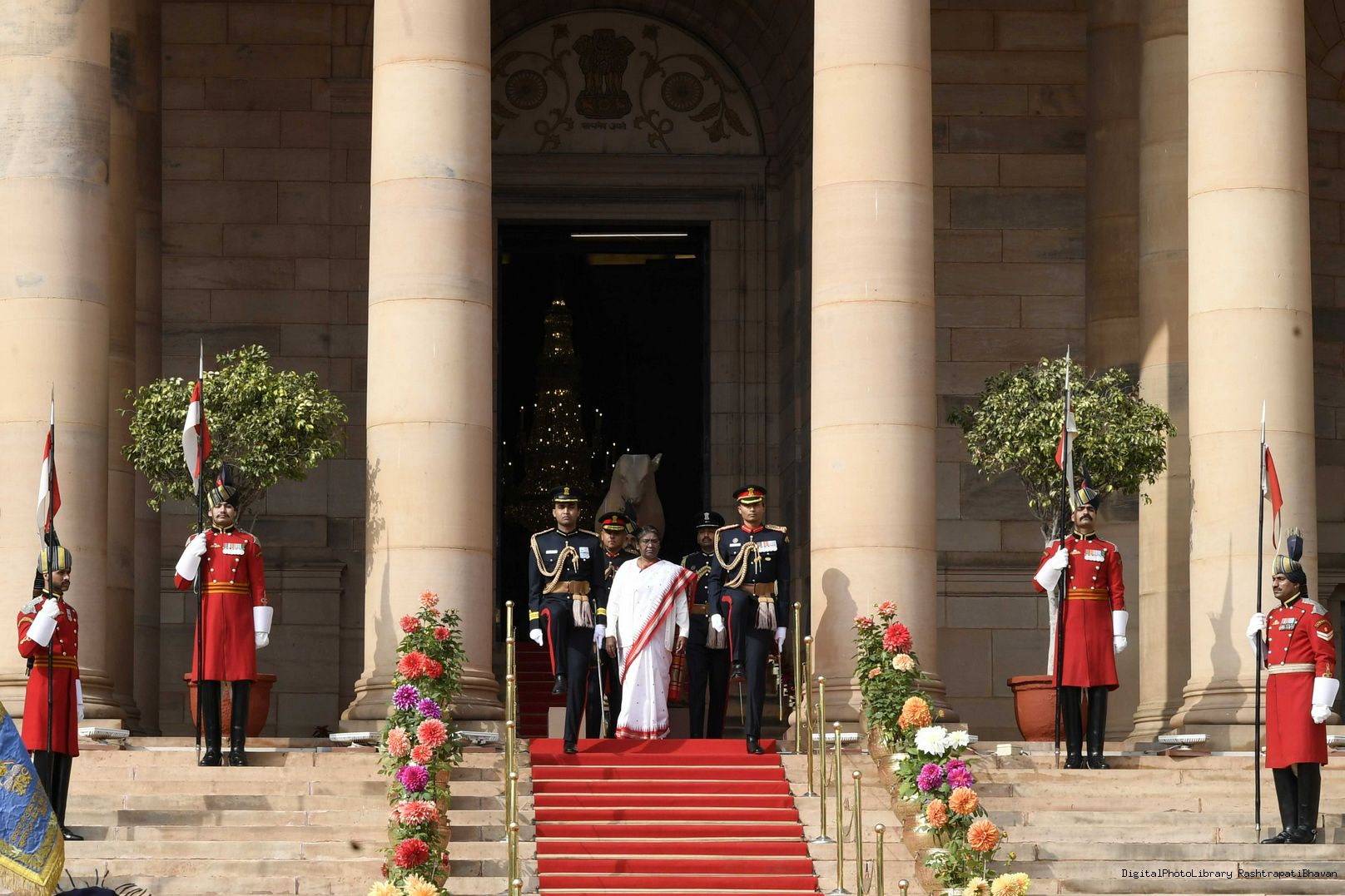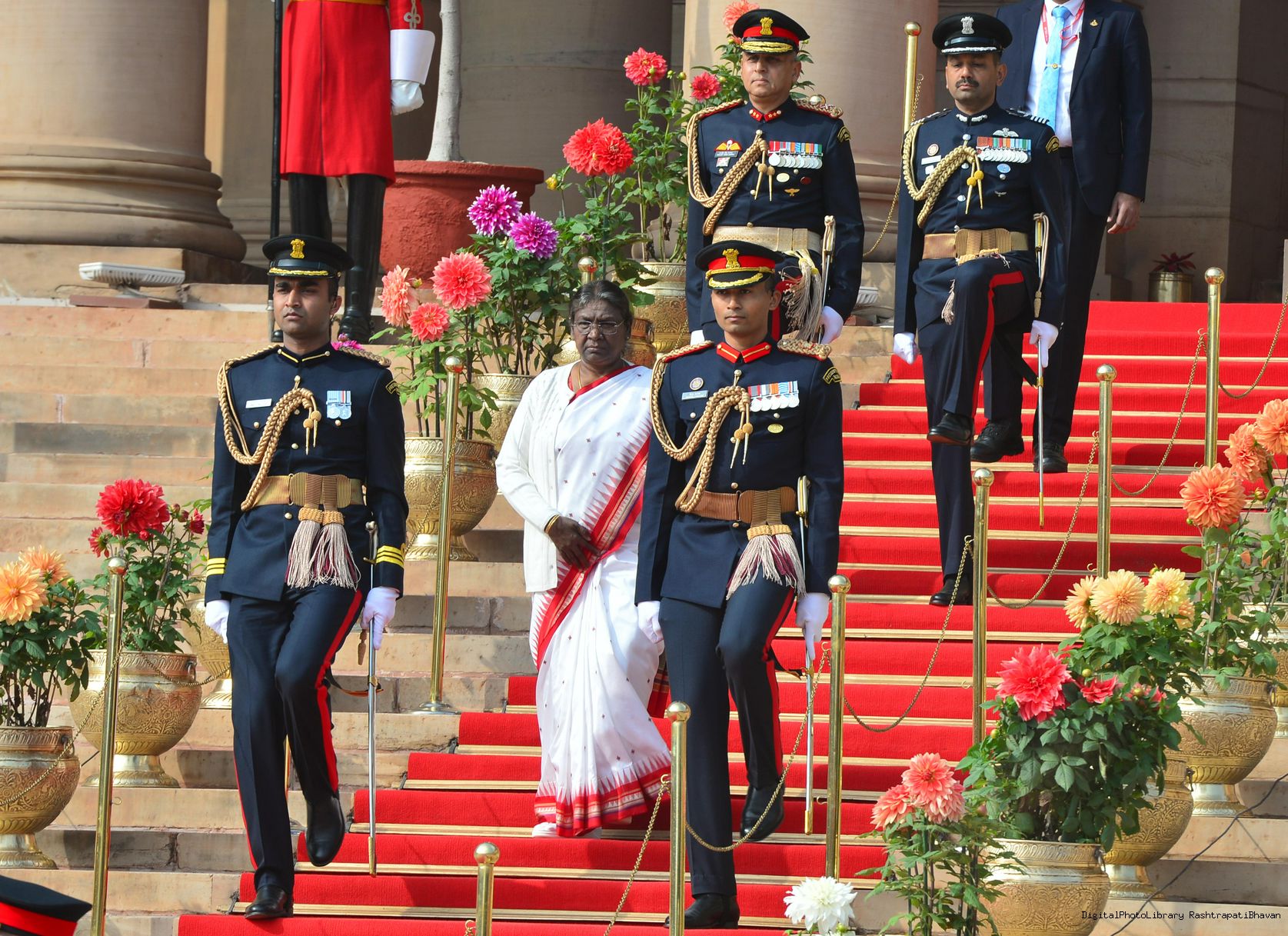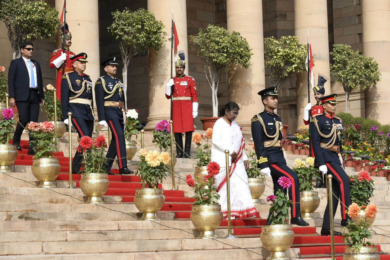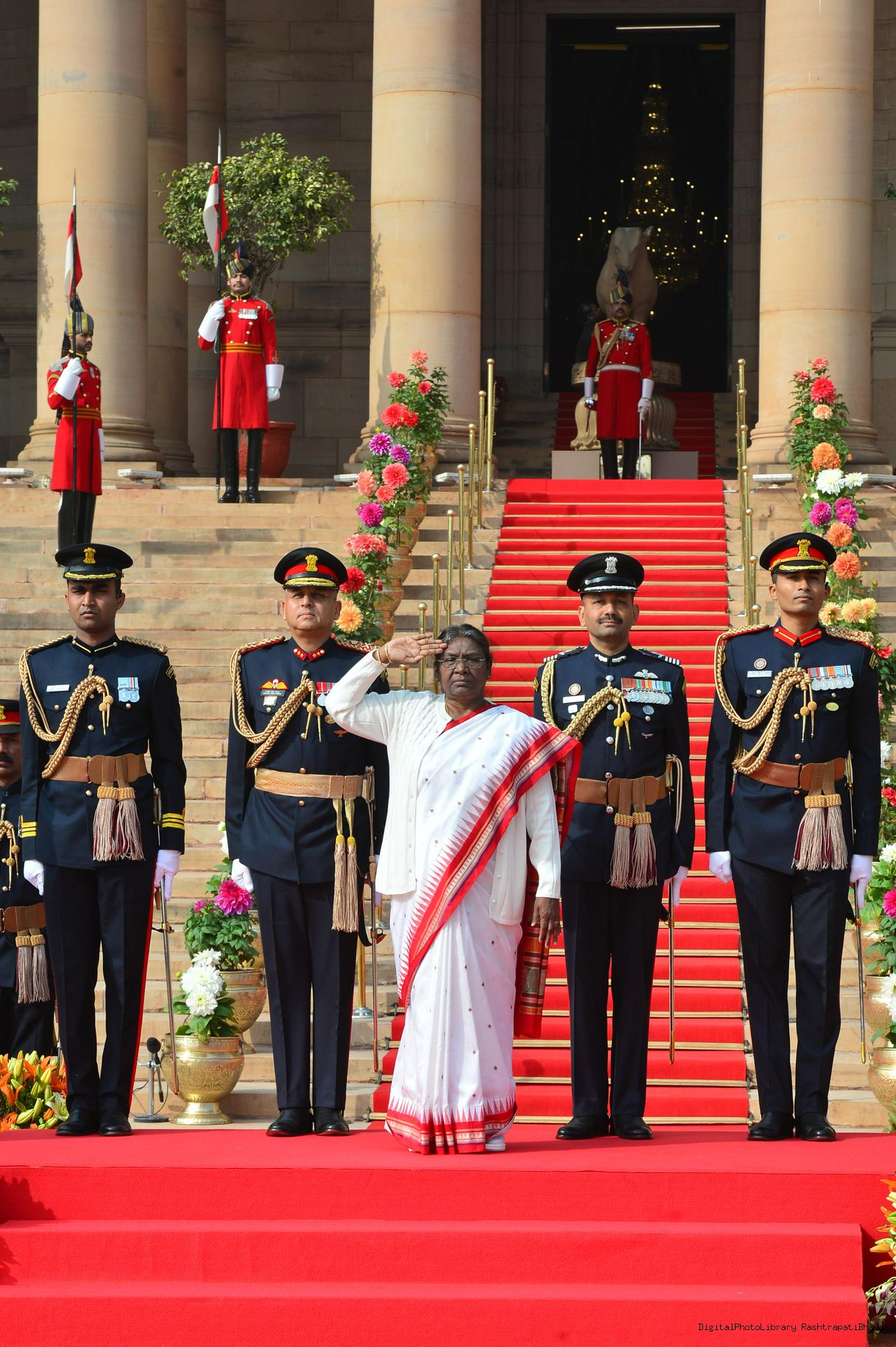 | Caption: | The President of India, Smt. Droupadi Murmu the PBG presents National Salute to the President at Rashtrapati Bhavan on January 31, 2023. |