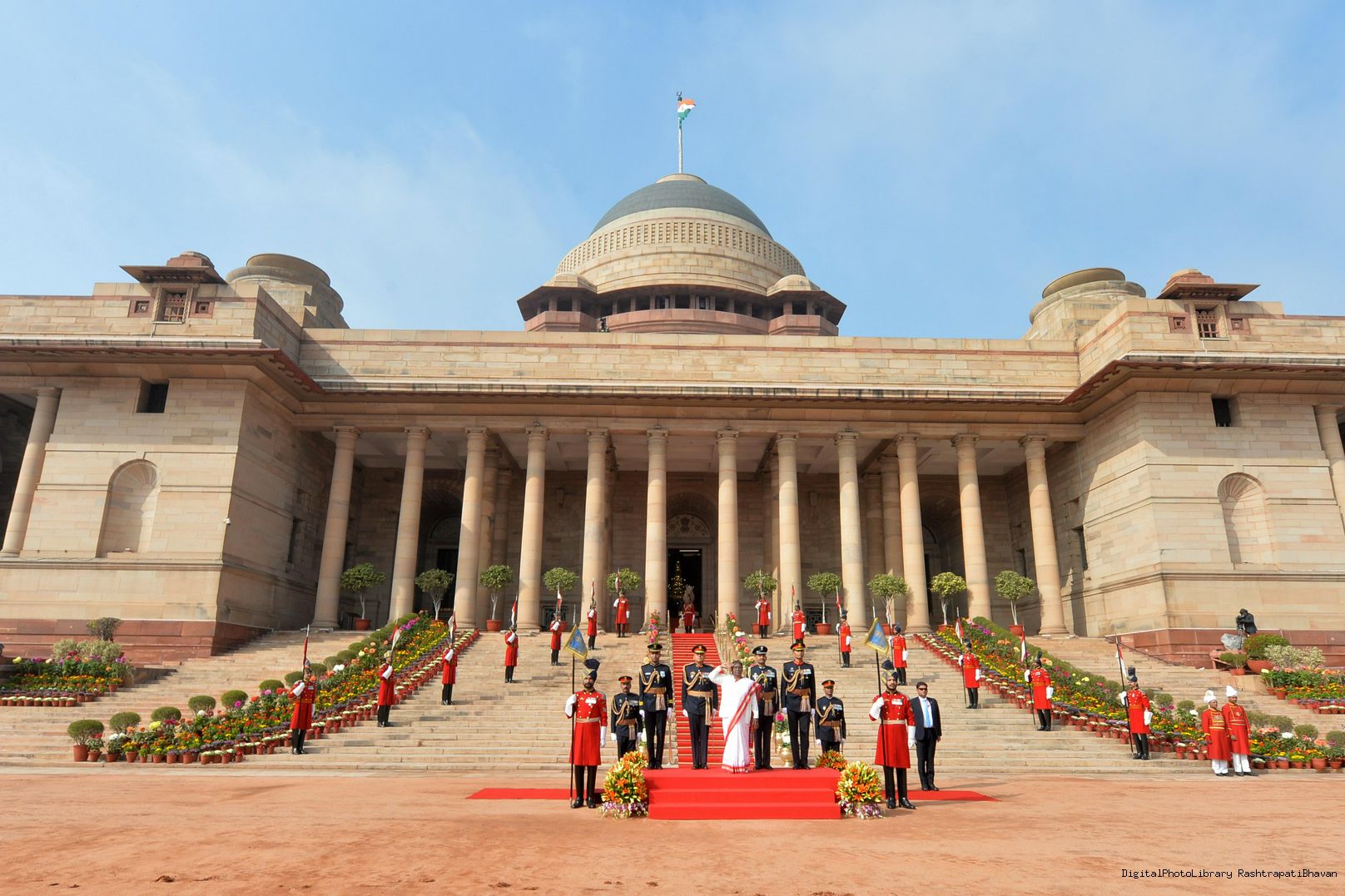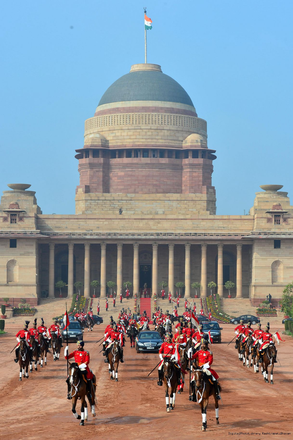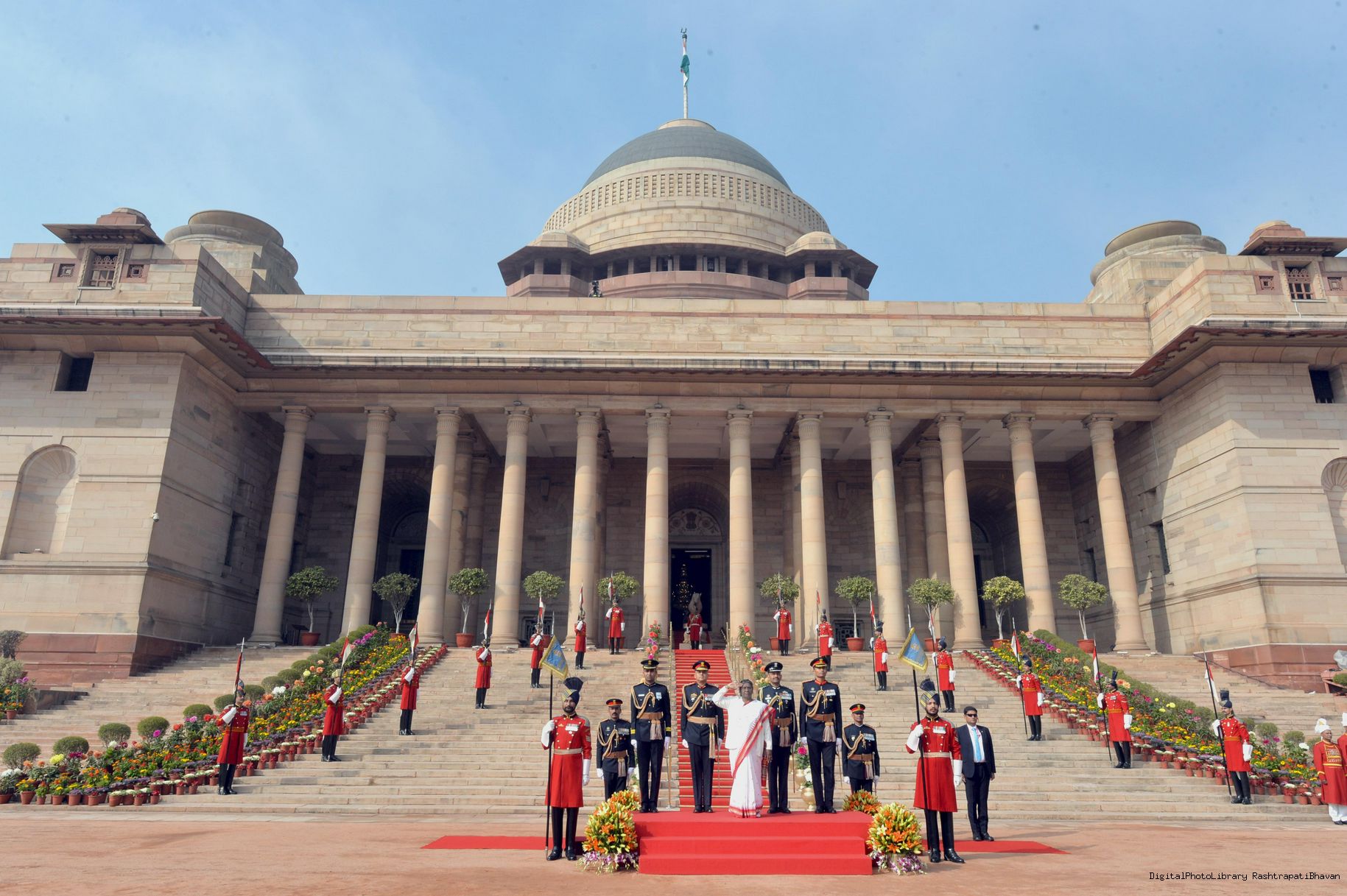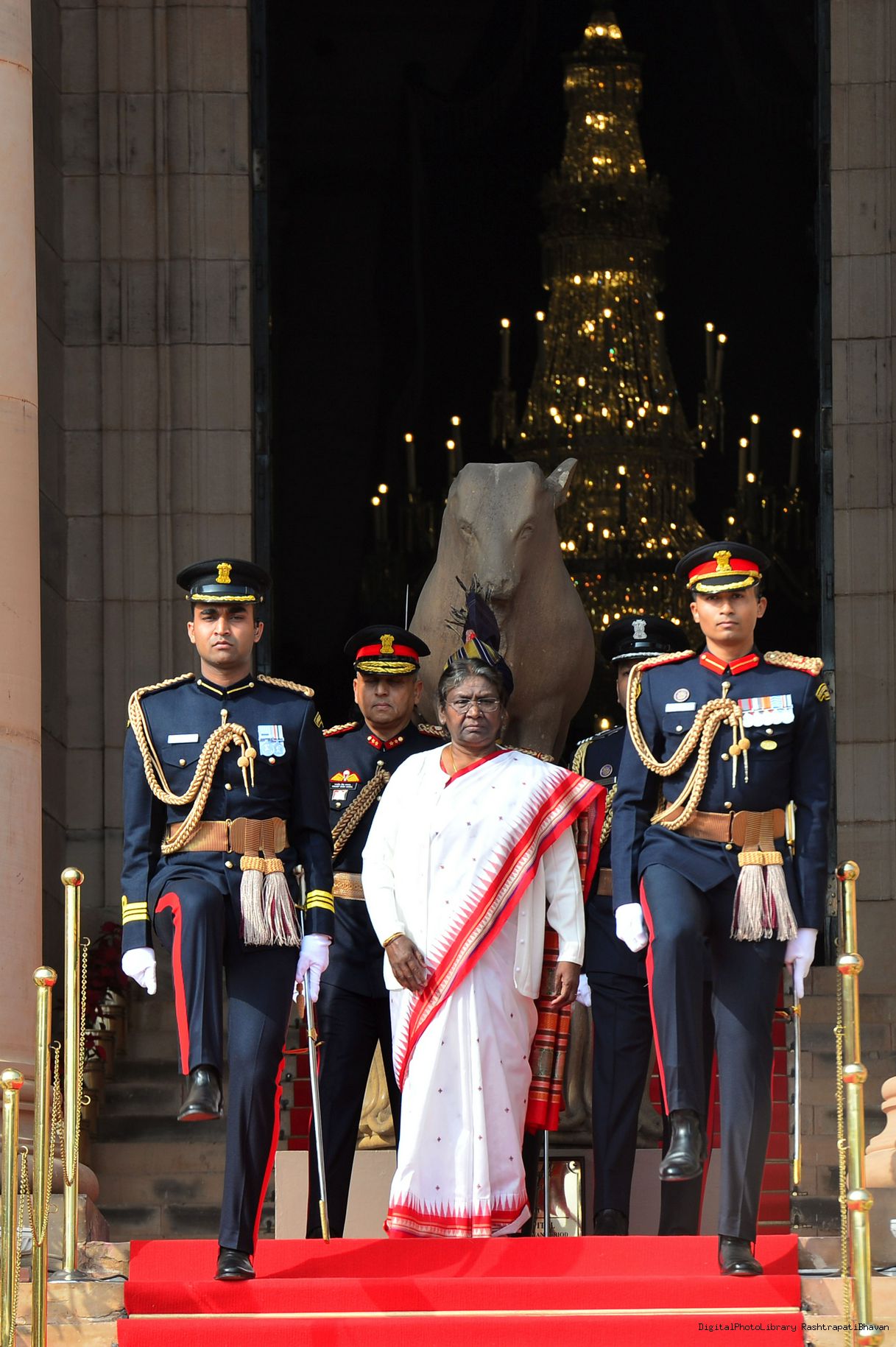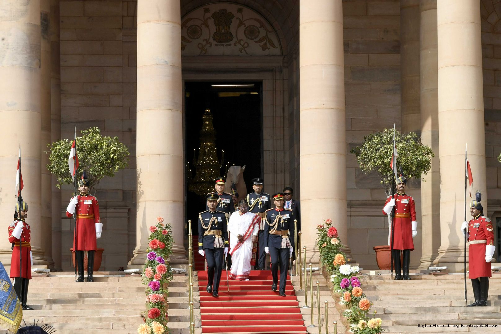 | Caption: | The President of India, Smt. Droupadi Murmu the PBG presents National Salute to the President at Rashtrapati Bhavan on January 31, 2023. |