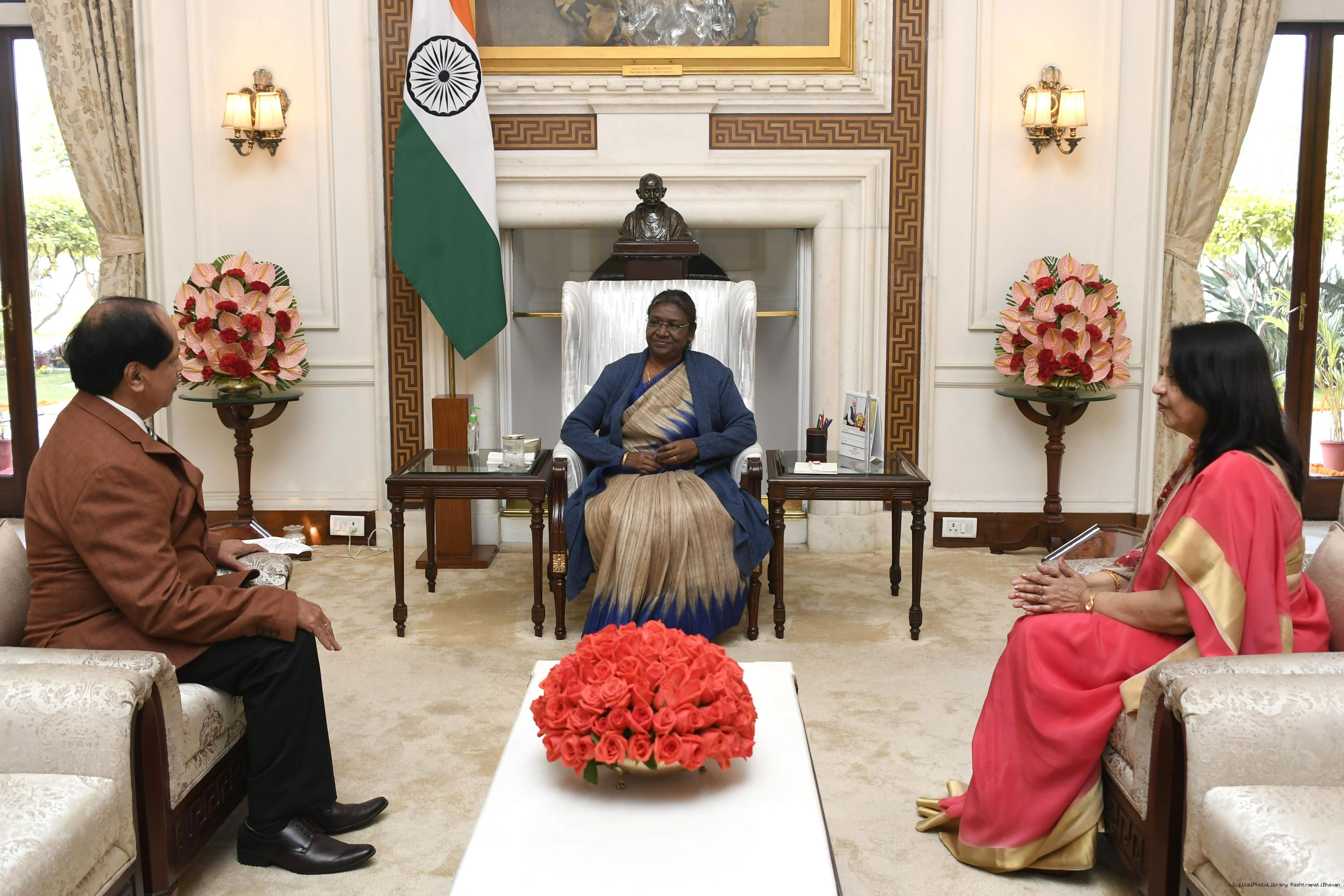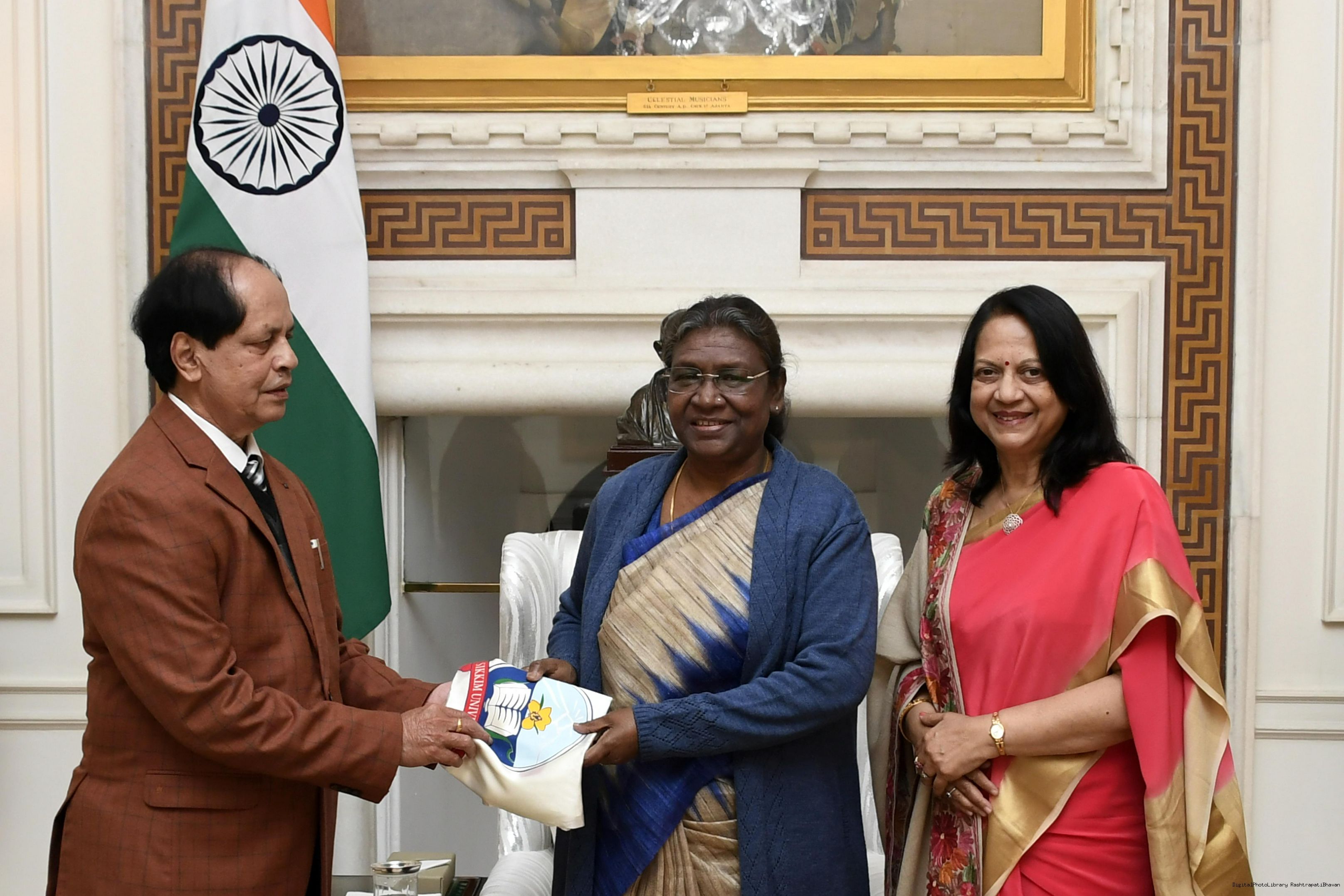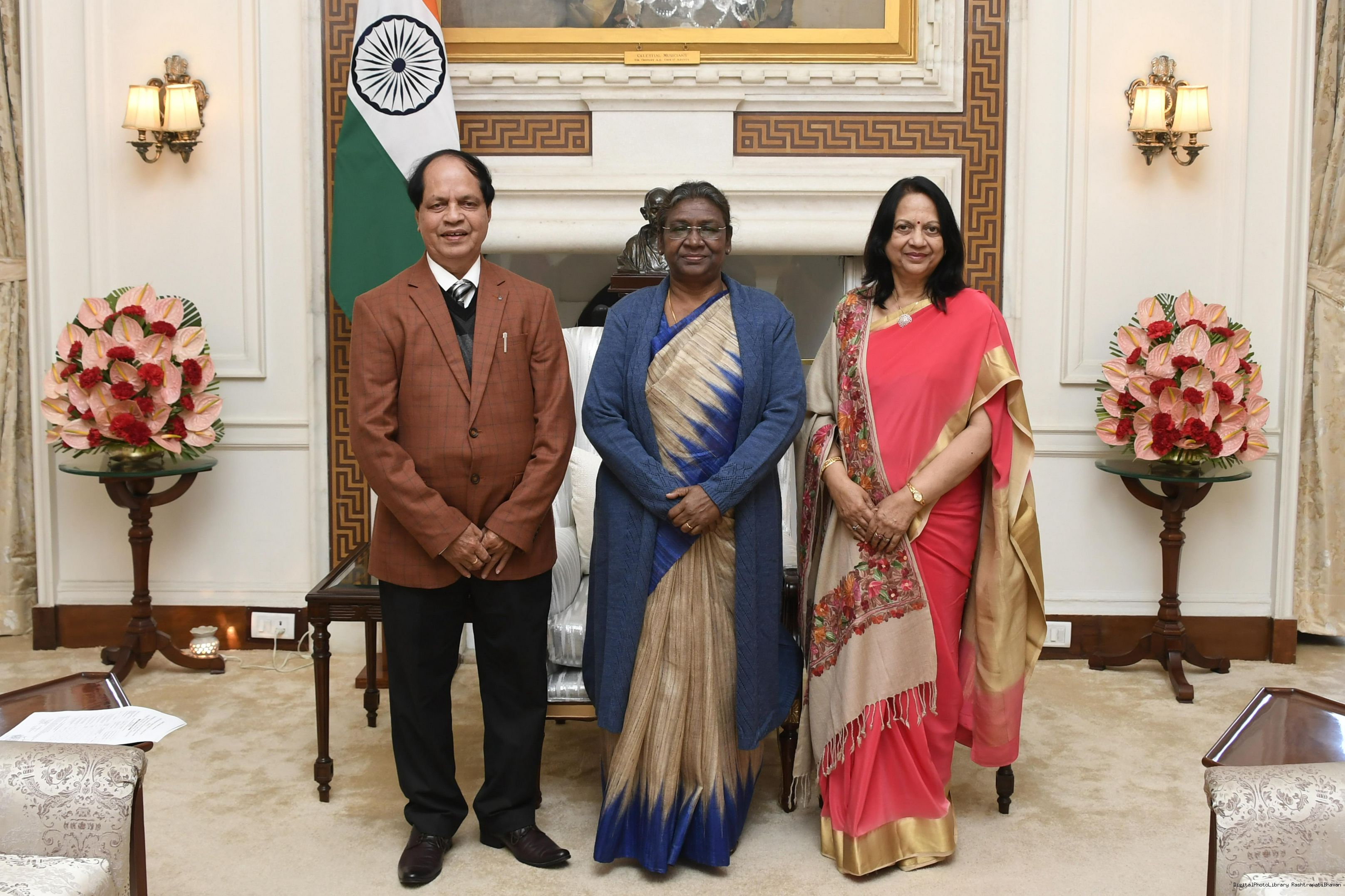 | Caption: | Prof. Avinash Khare, Vice Chancellor, Sikkim University, Gangtok along with his wife meeting with the President of India Smt. Droupadi Murmu at Rashtrapati Bhavan on February 01, 2023. |