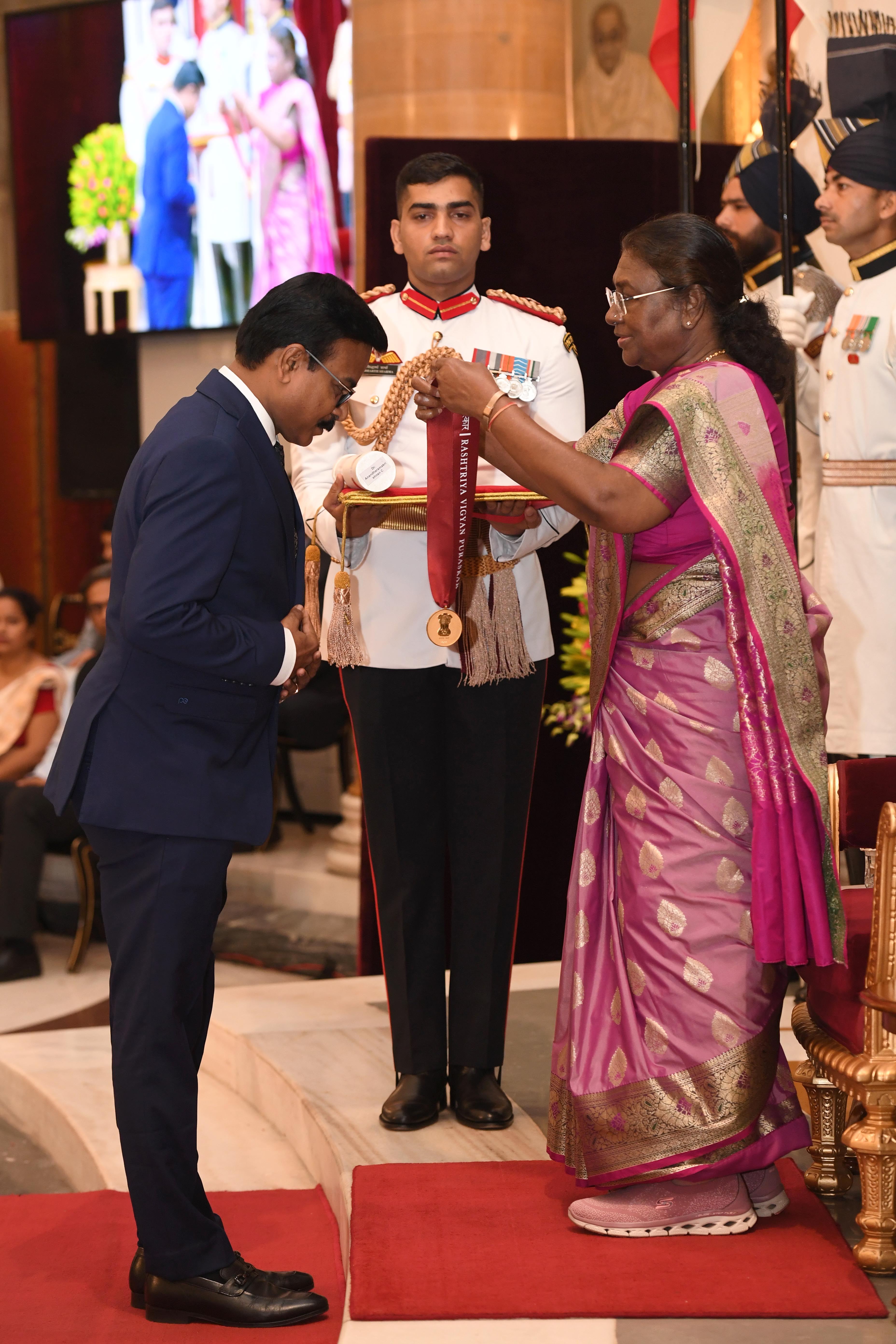 | Caption: | The President of India Smt. Droupadi Murmu presented the Rashtriya Vigyan Puraskar at Rashtrapati Bhavan on August 22, 2024. |