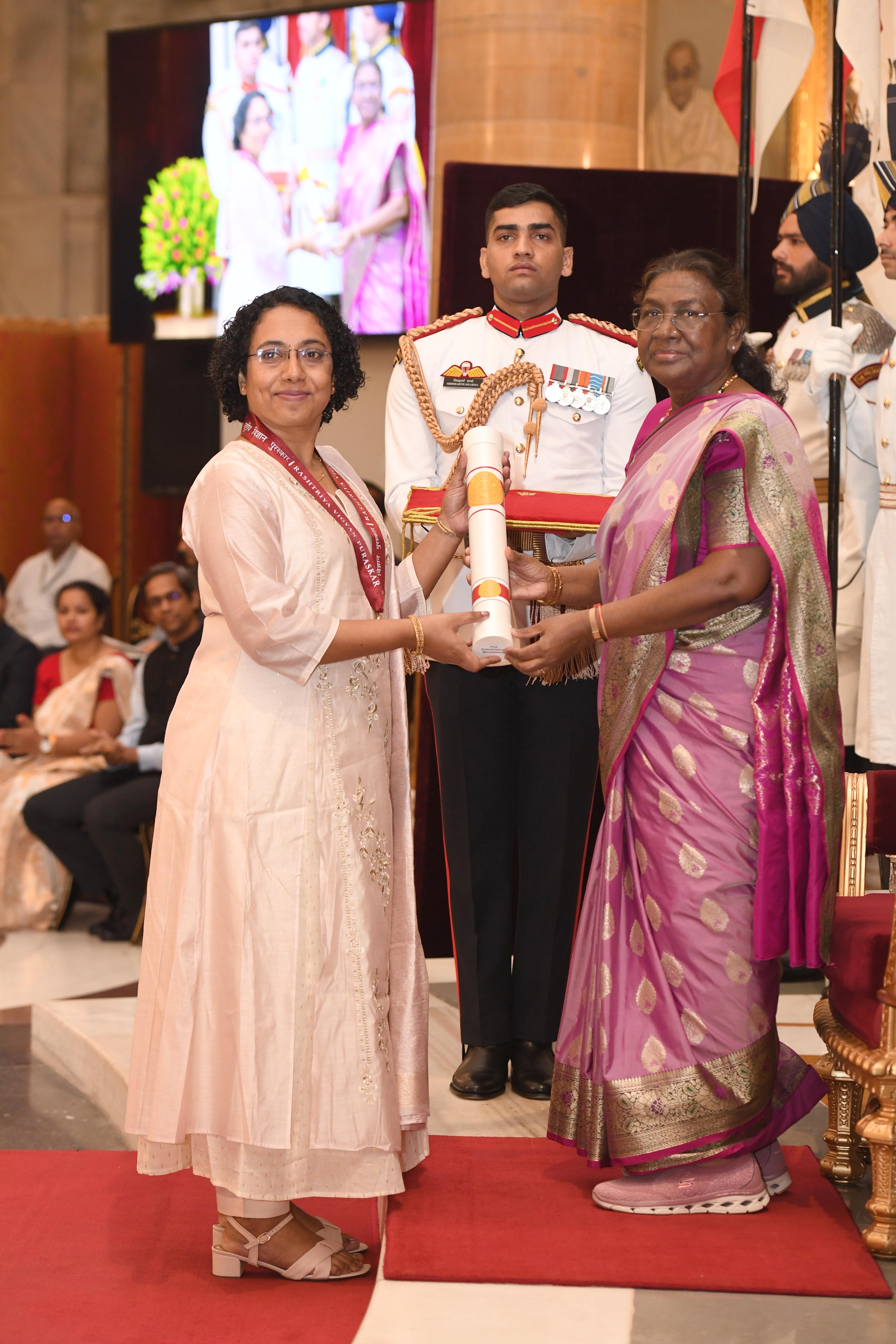 | Caption: | The President of India Smt. Droupadi Murmu presented the Rashtriya Vigyan Puraskar at Rashtrapati Bhavan on August 22, 2024. |