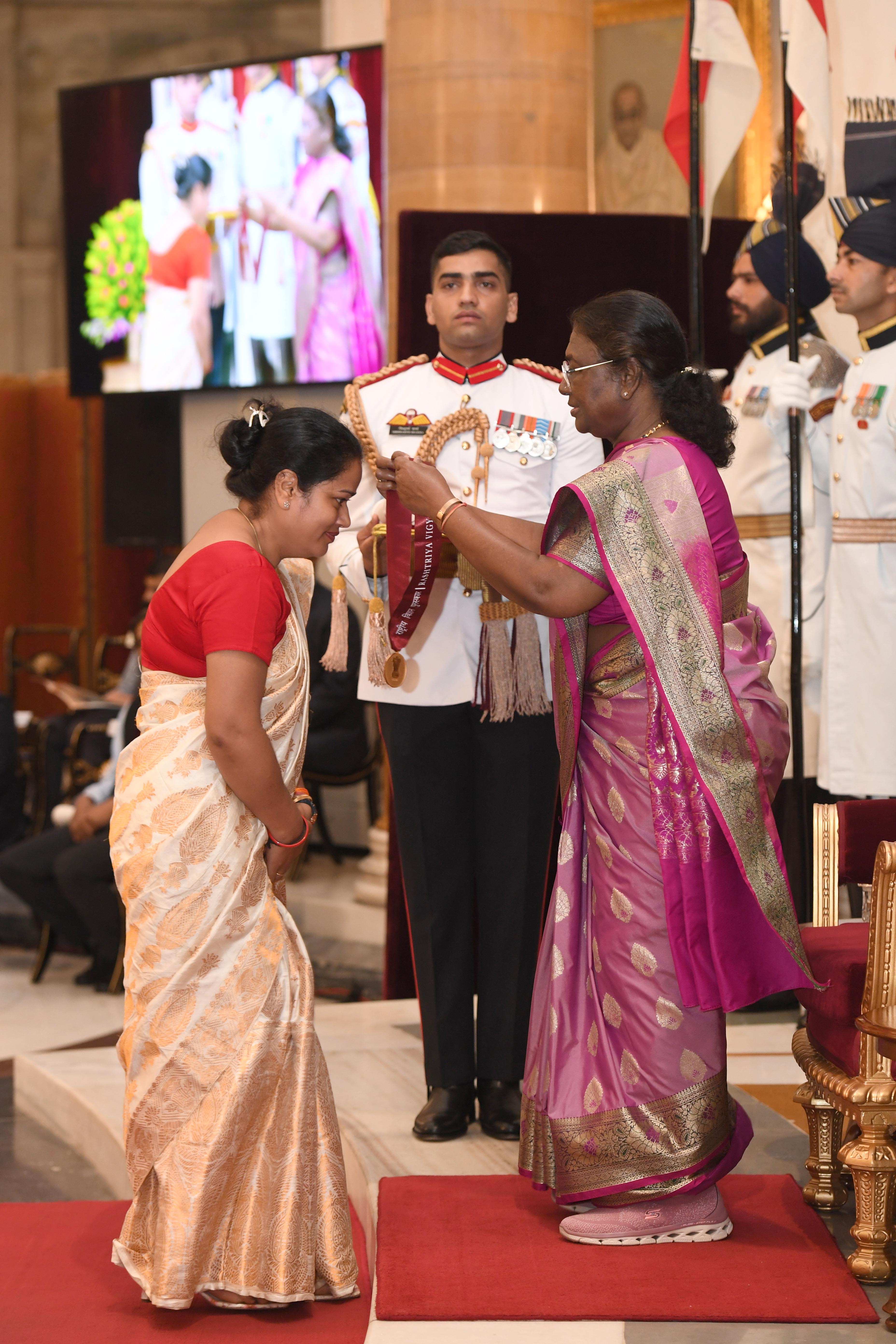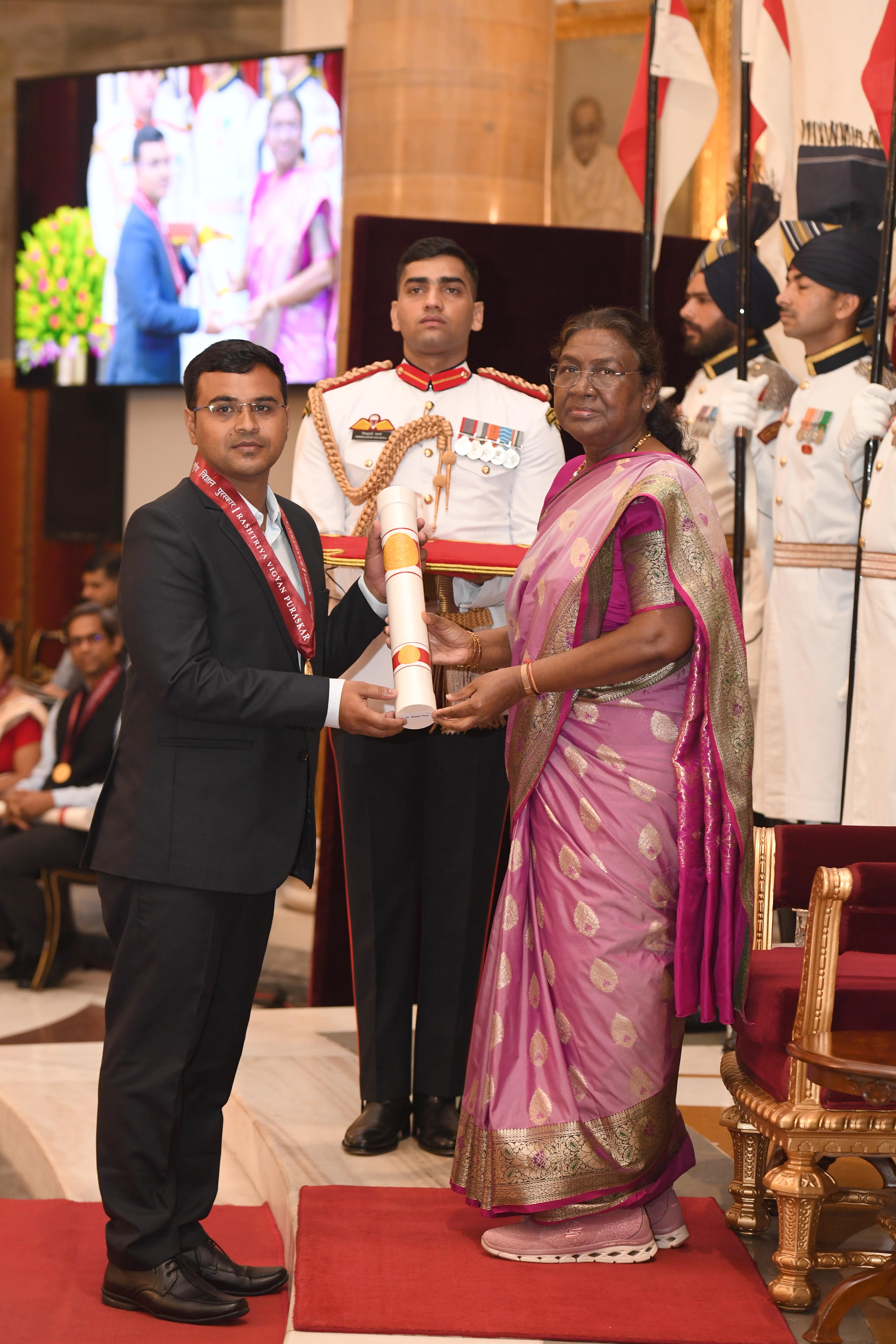 | Caption: | The President of India Smt. Droupadi Murmu presented the Rashtriya Vigyan Puraskar at Rashtrapati Bhavan on August 22, 2024. |