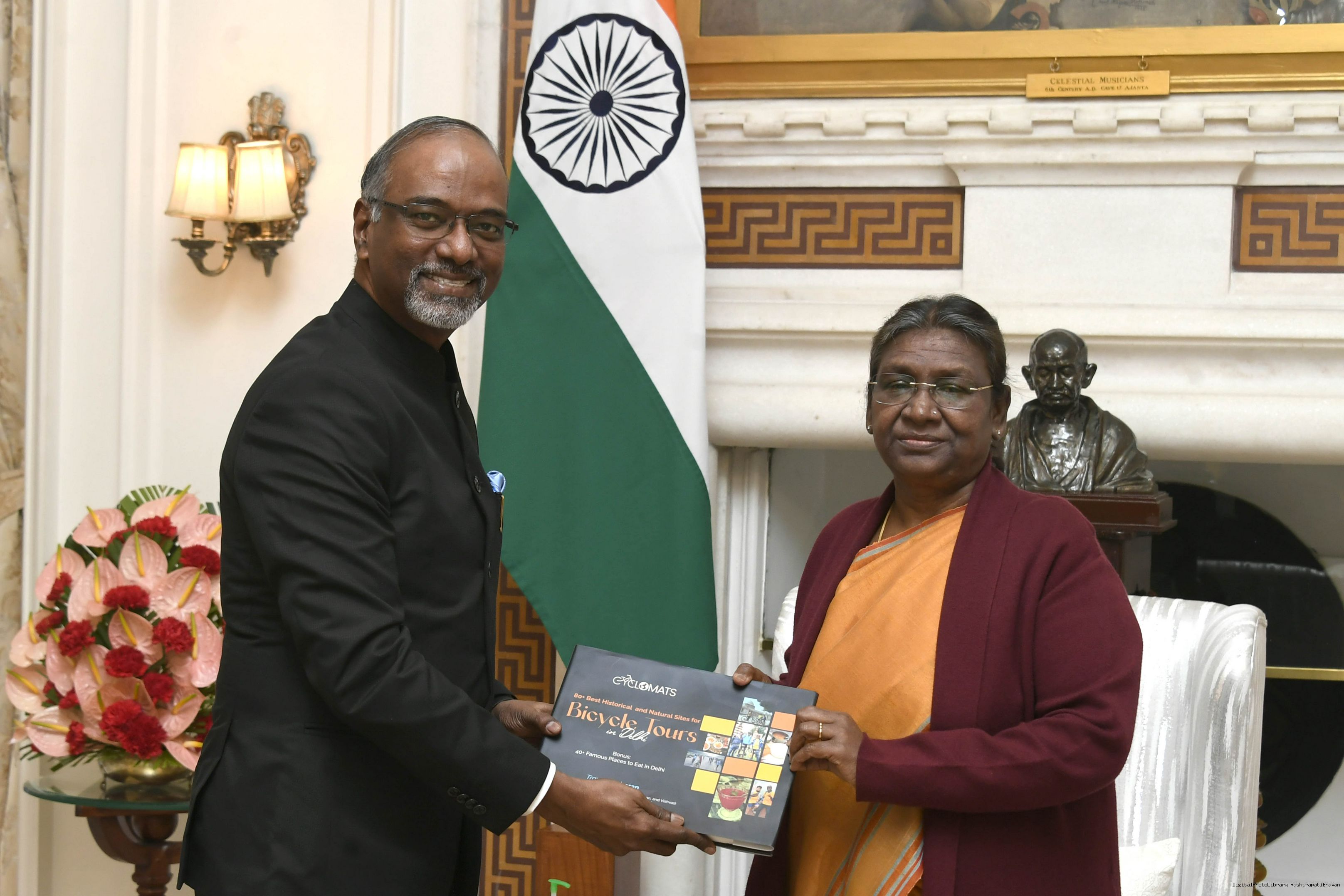 | Caption: | Shri Sridharan Madhusudanan, Ambassador-designate of India to the Republic of Azerbaijan meeting with the President of India Smt. Droupadi Murmu at Rashtrapati Bhavan on February 02, 2023. |