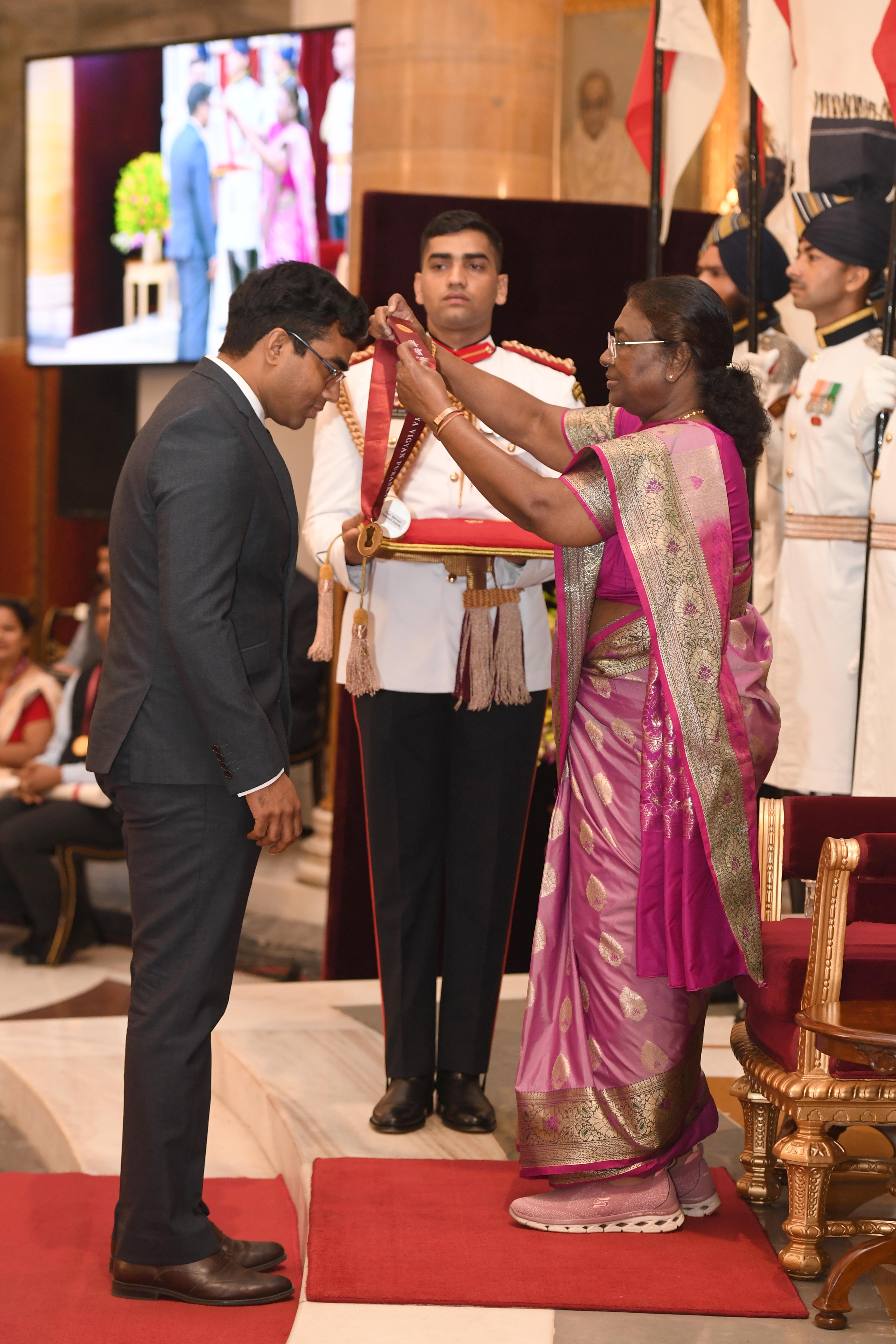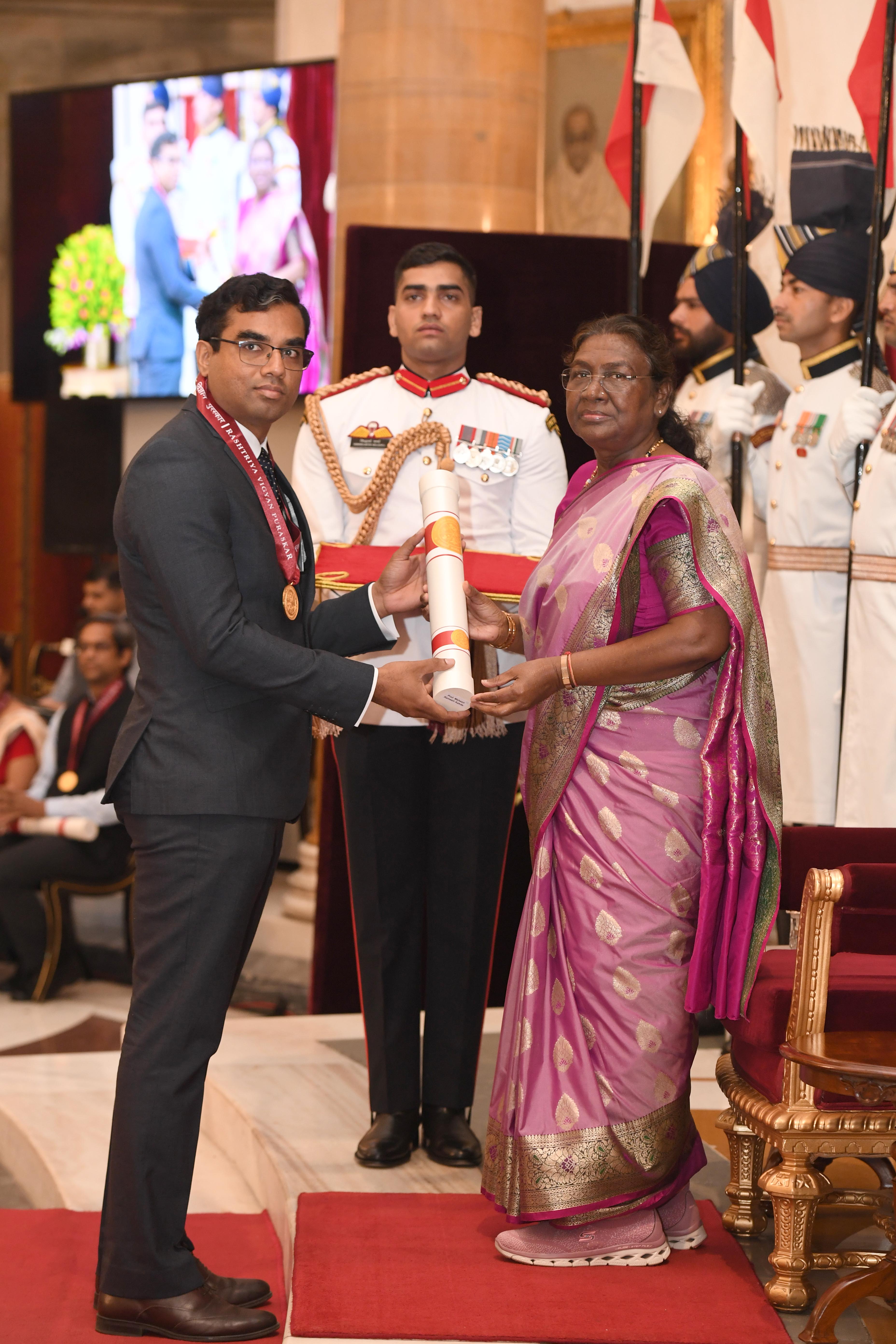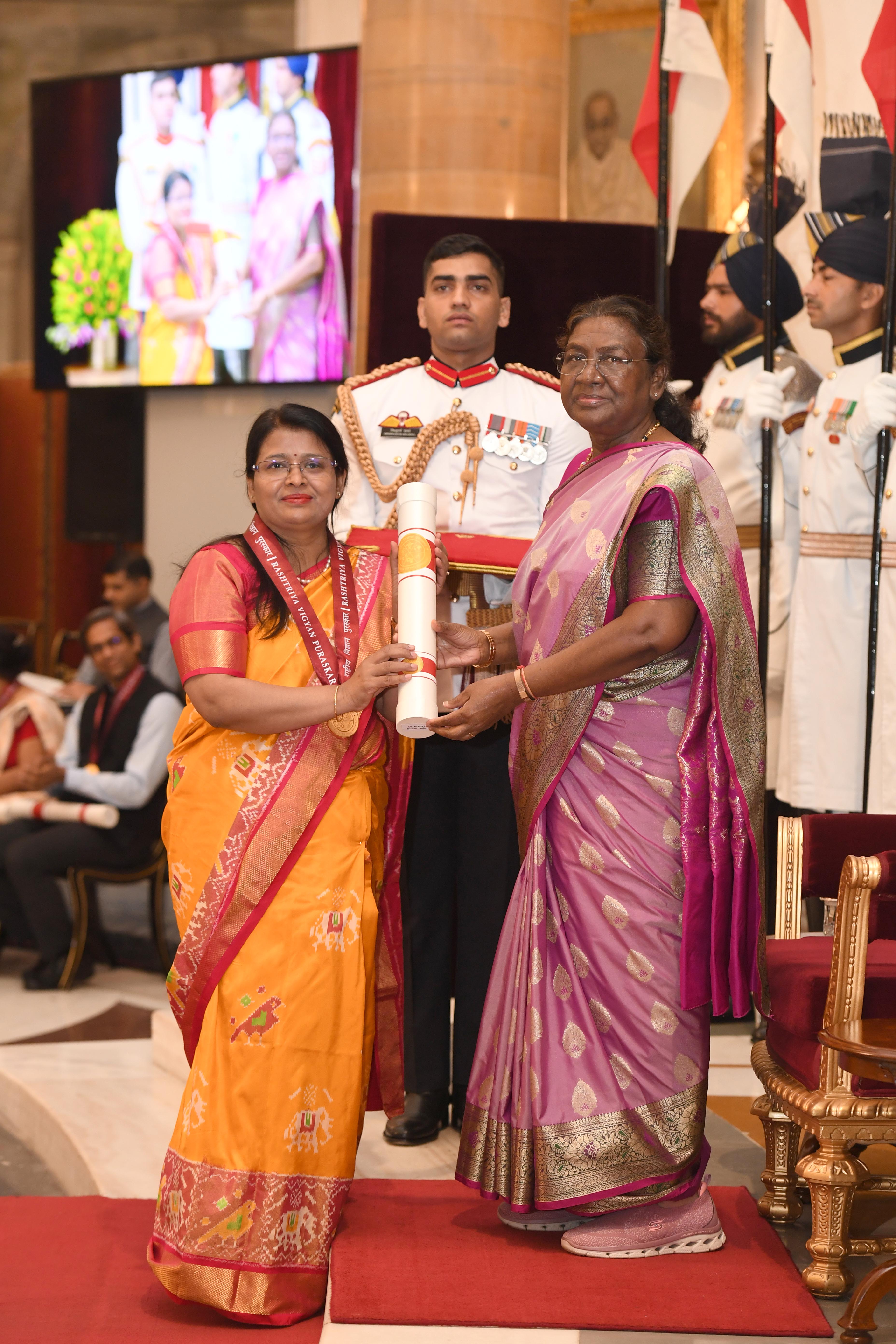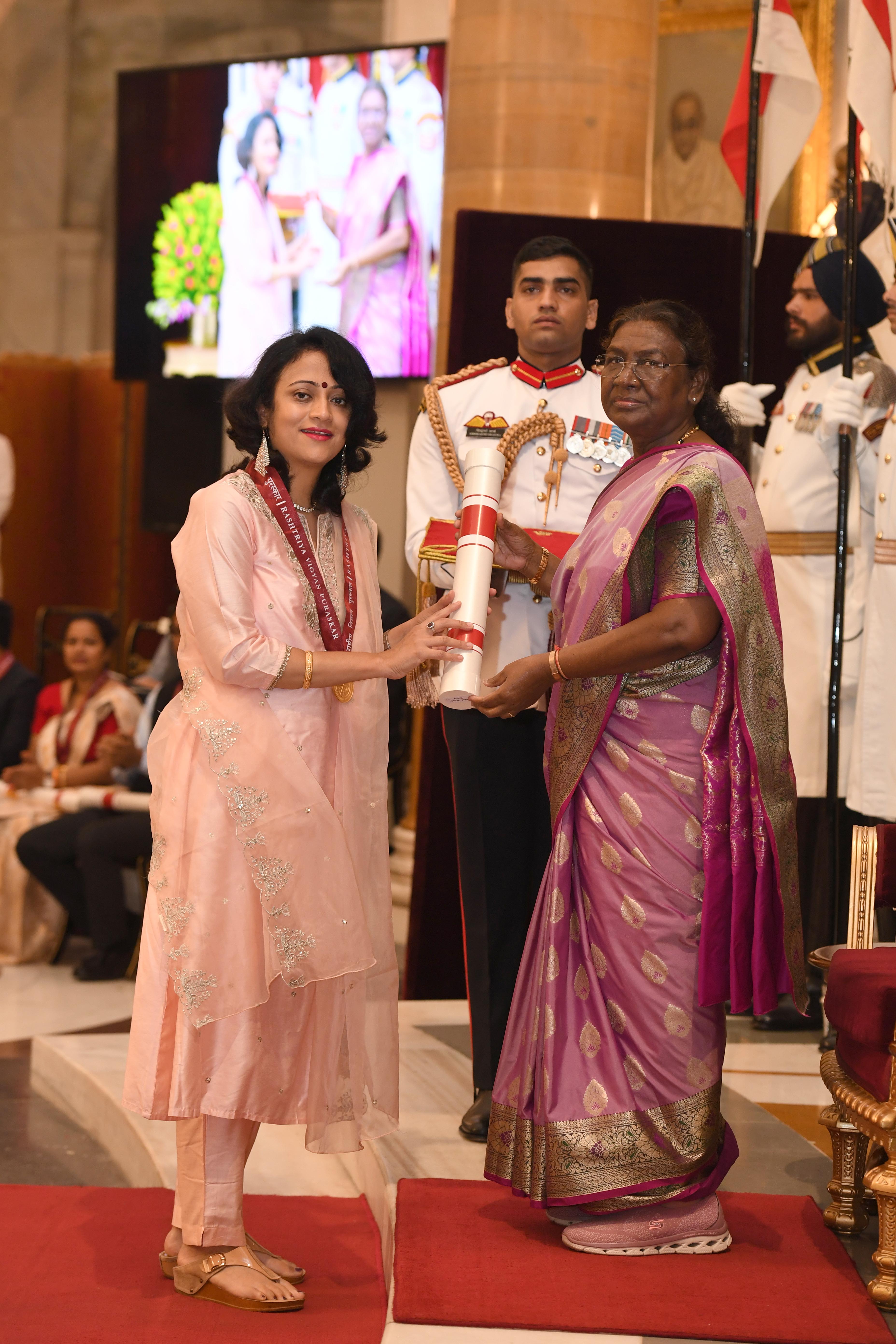 | Caption: | The President of India Smt. Droupadi Murmu presented the Rashtriya Vigyan Puraskar at Rashtrapati Bhavan on August 22, 2024. |