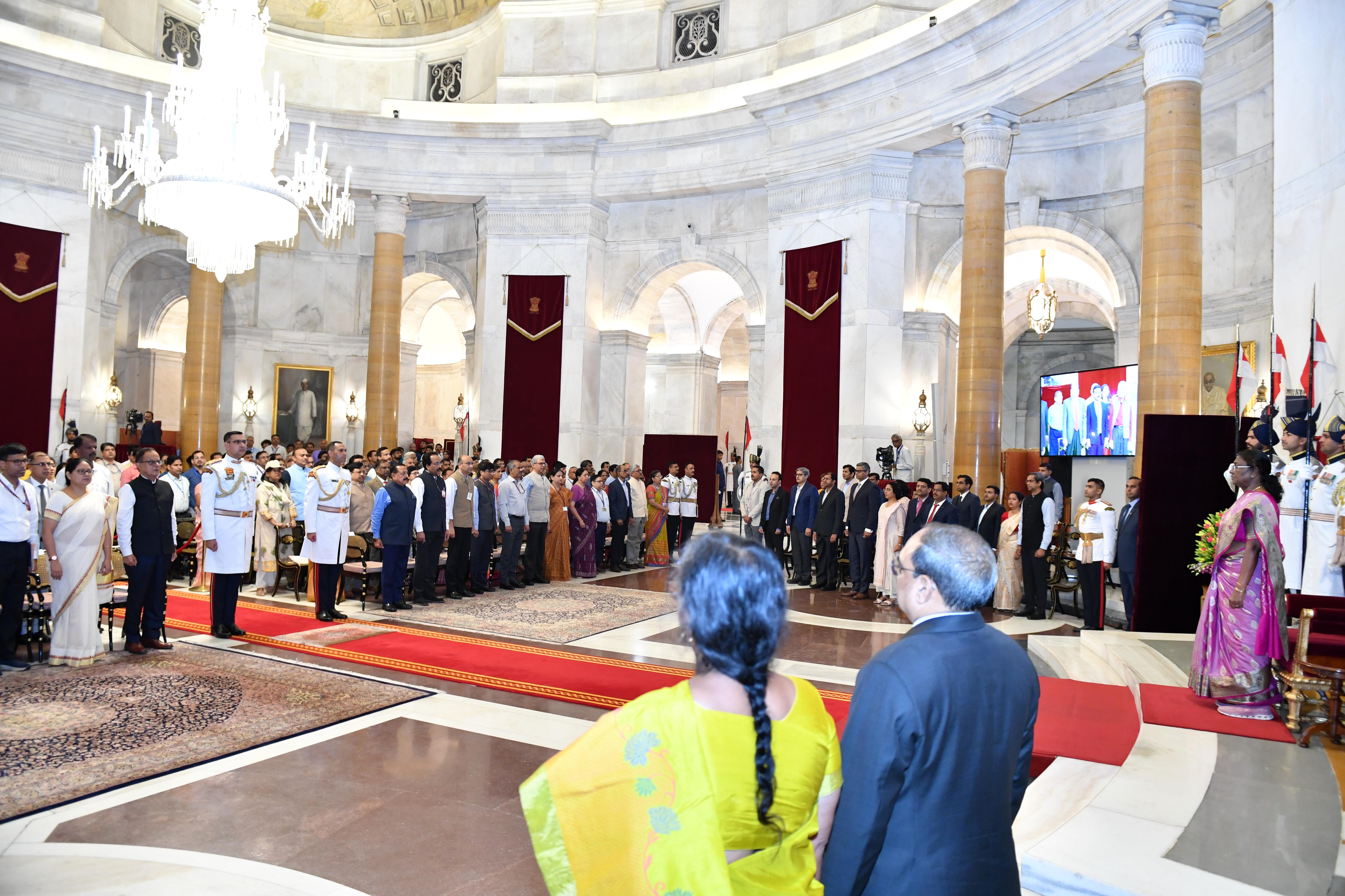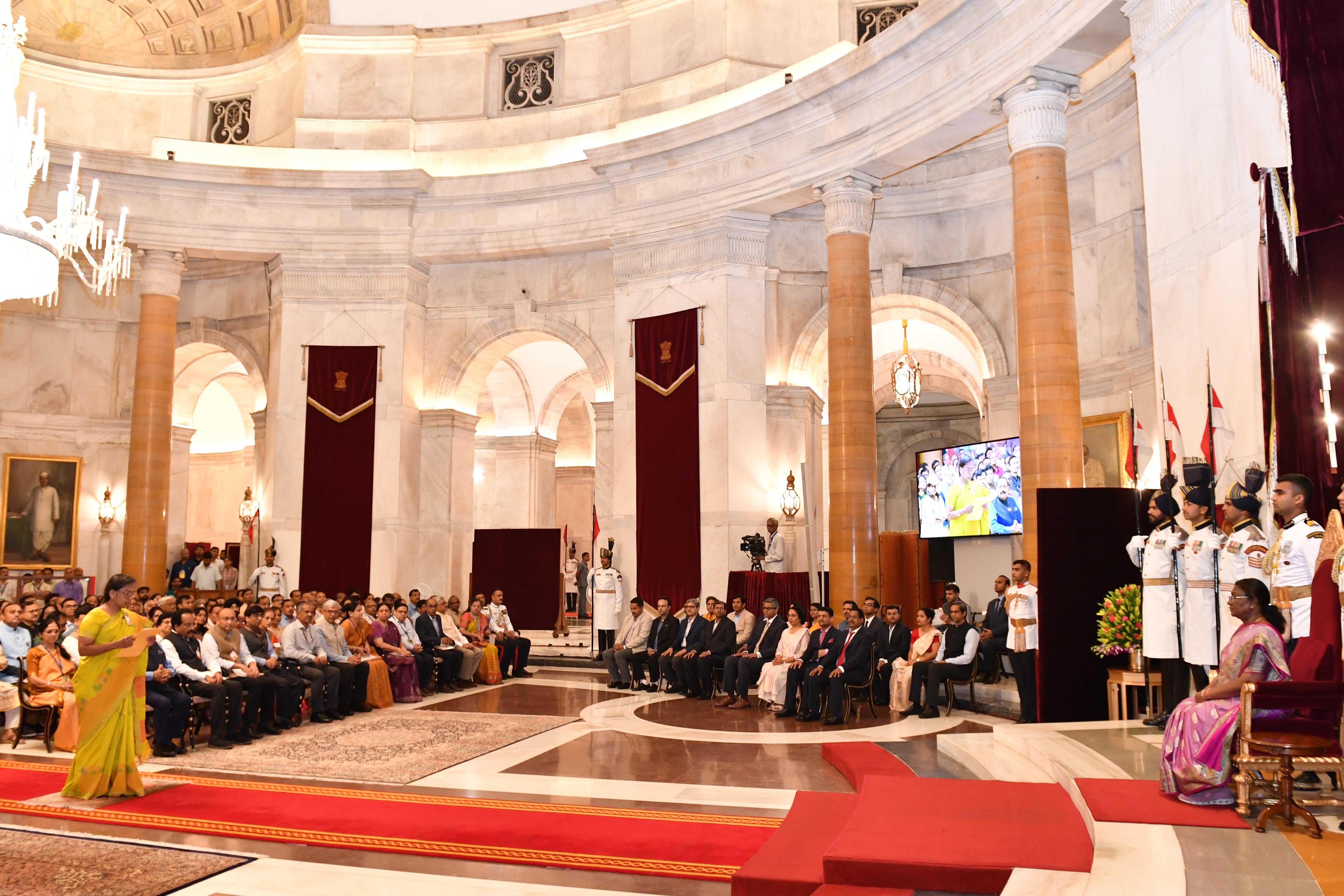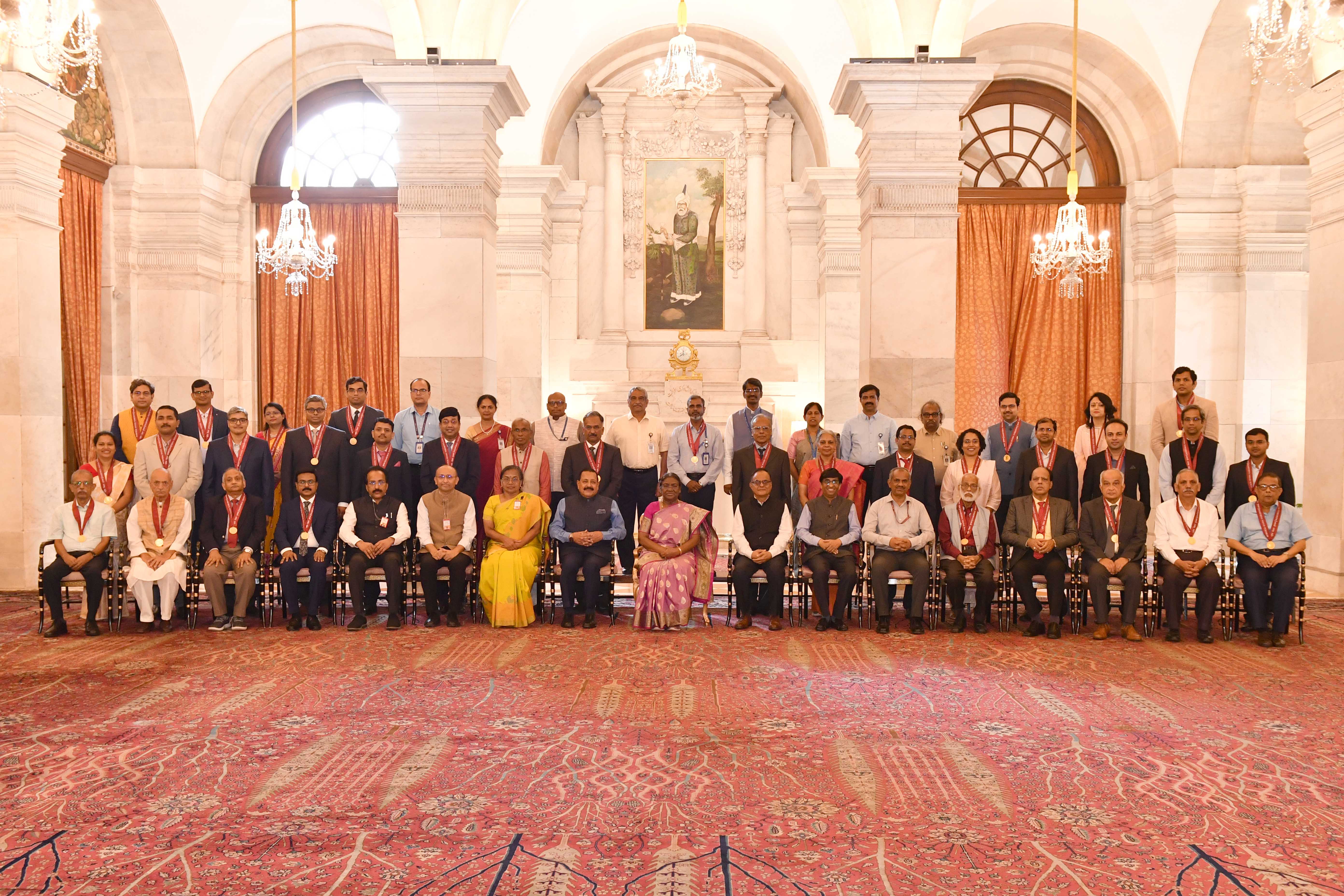 | Caption: | The President of India Smt. Droupadi Murmu presented the Rashtriya Vigyan Puraskar at Rashtrapati Bhavan on August 22, 2024. |