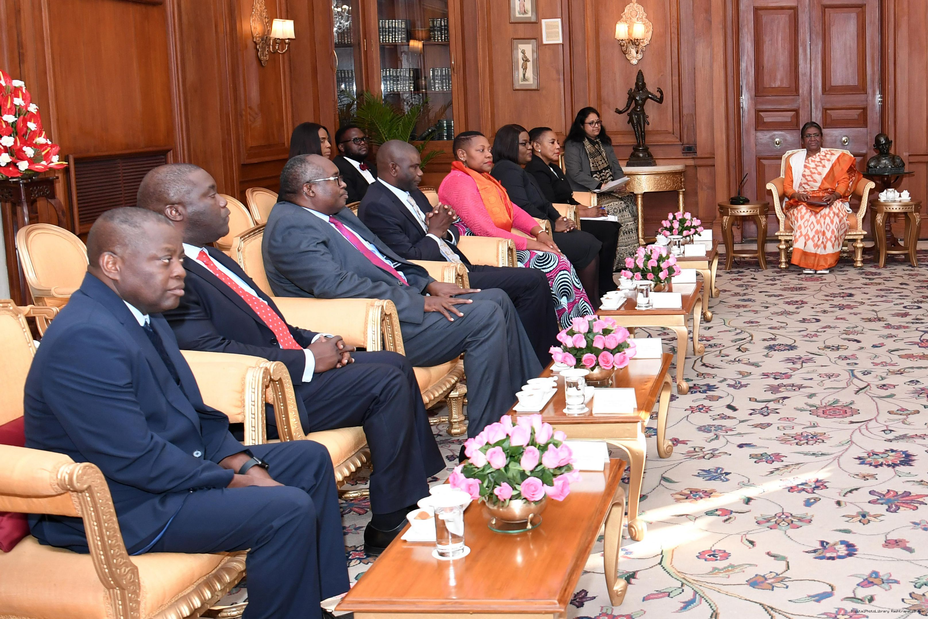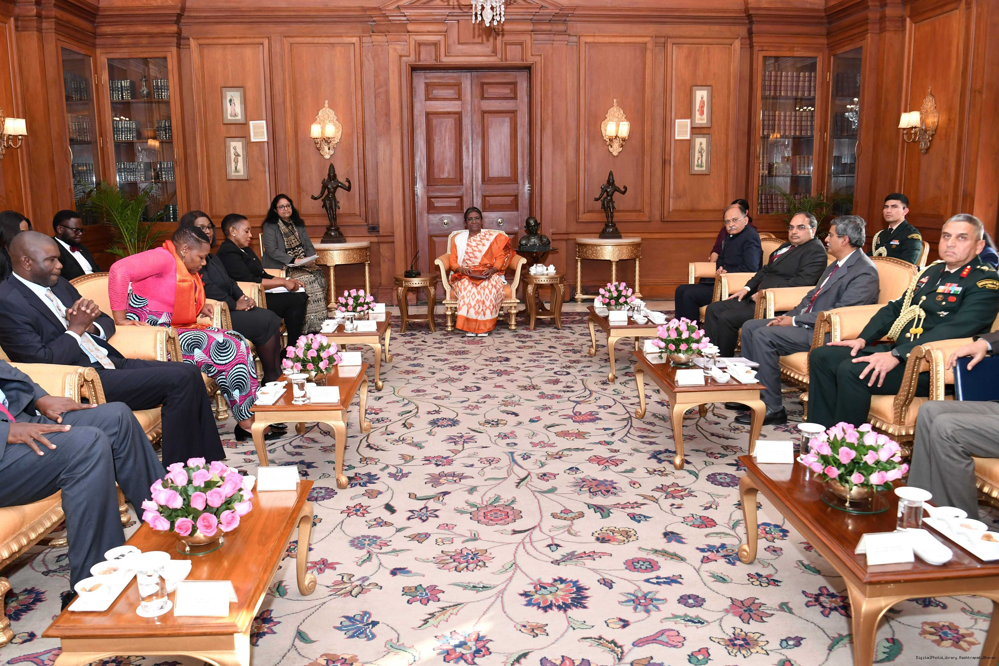 | Caption: | A Parliamentary delegation from Zambia led by the Speaker of the National Assembly of Zambia, Ms. Nelly Butete Kashumba Mutti called on the President of India, Smt. Droupadi Murmu, at Rashtrapati Bhavan on February 02, 2023. |