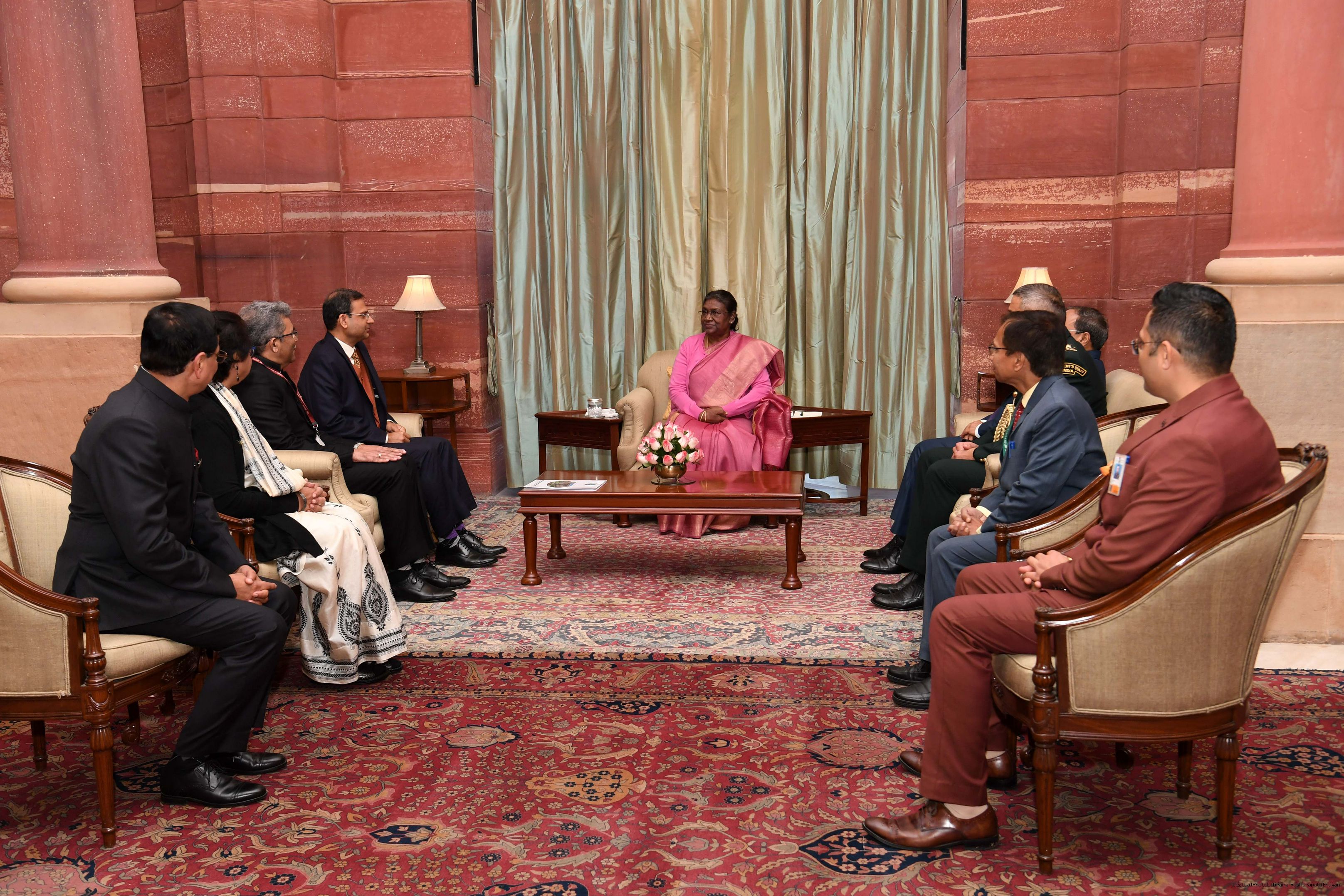 | Caption: | Shri Sanjay Molhotra, Revenue Secretary along with others meeting with the President of India Smt. Droupadi Murmu at Rashtrapati Bhavan on February 03, 2023. |