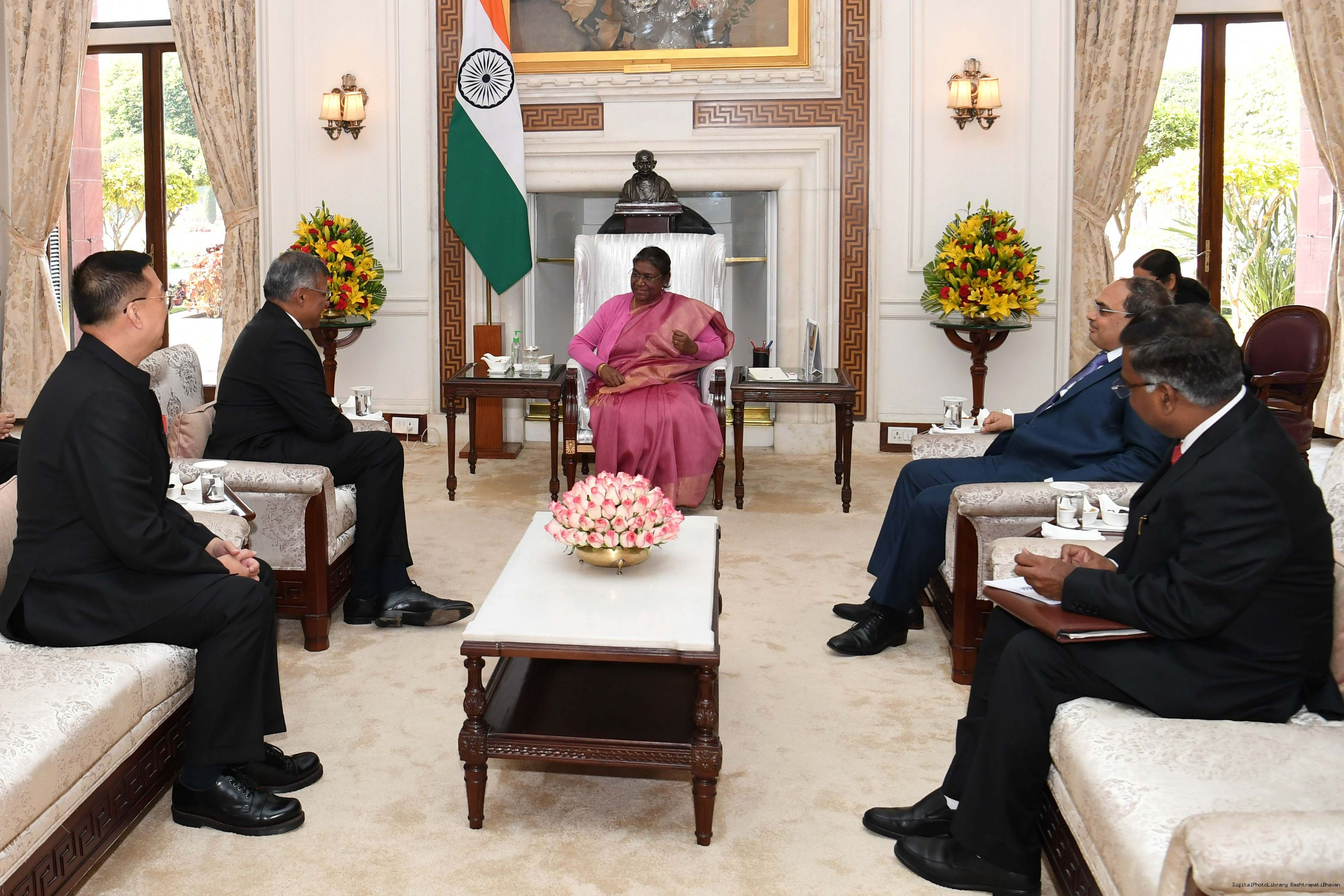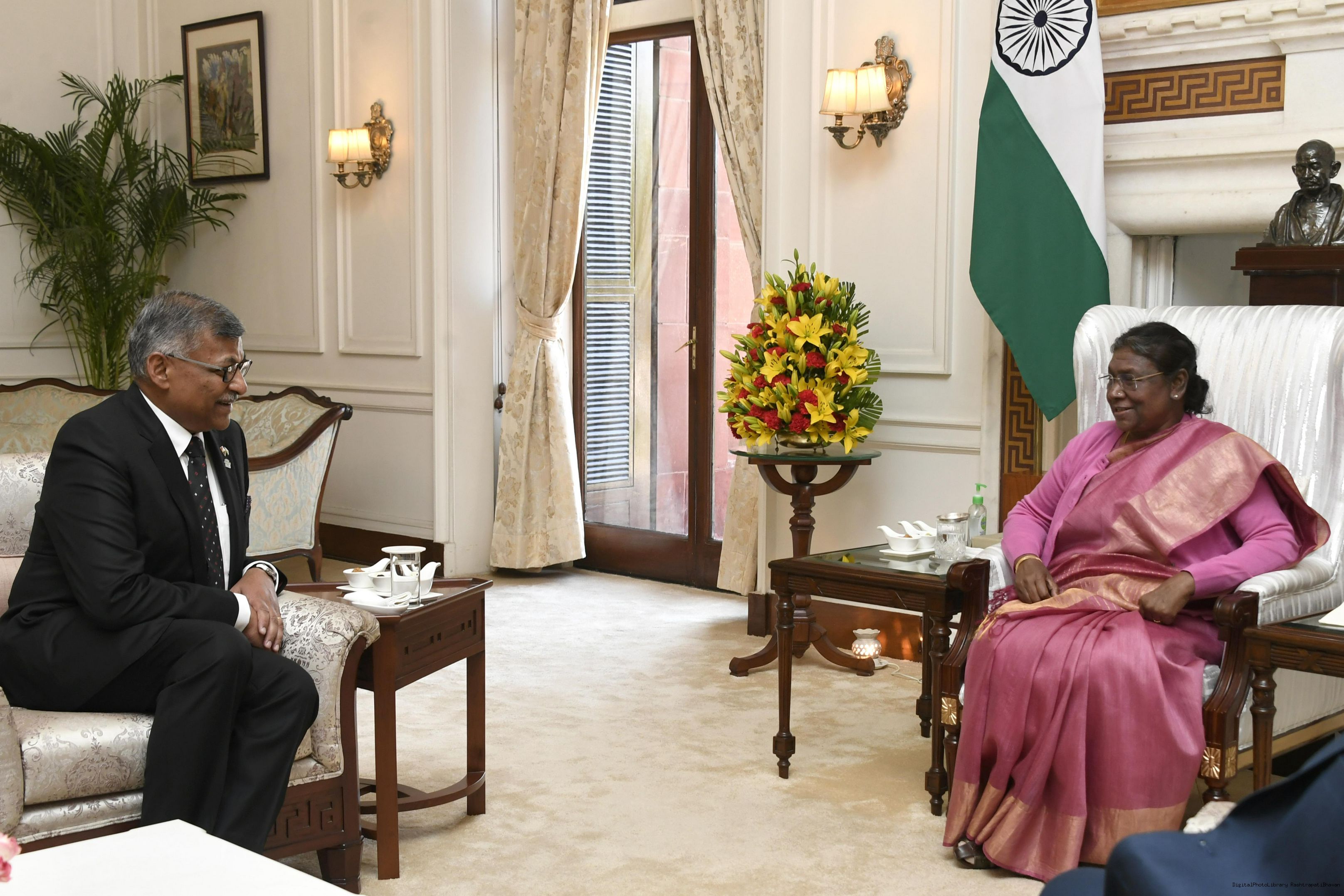 | Caption: | The Chief Justice of the Supreme Court of Singapore, Mr. Sundaresh Menon called on the President of India, Smt. Droupadi Murmu, at Rashtrapati Bhavan on February 03, 2023. |
