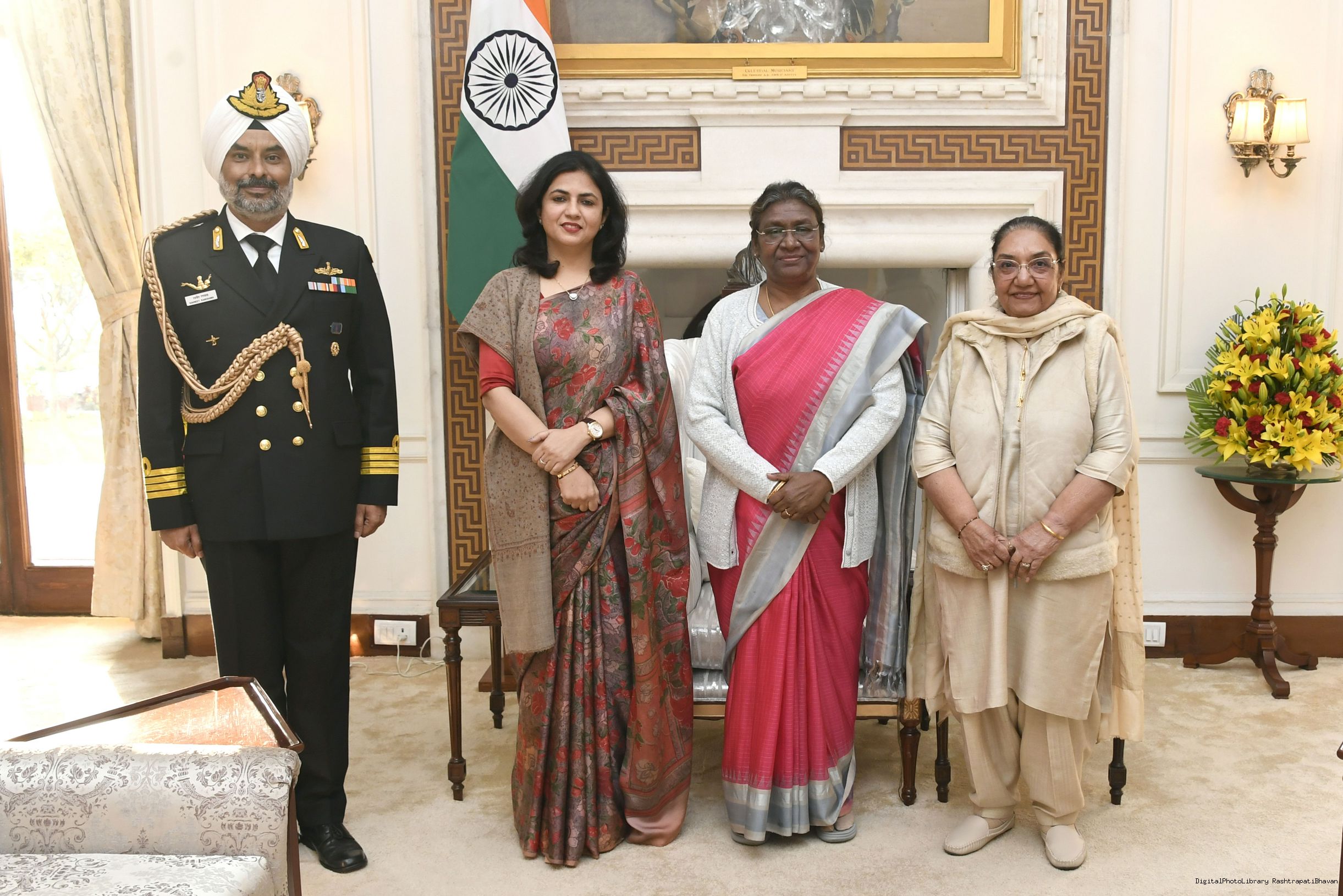 | Caption: | Capt. RS Randhawa, Comptroller, President's Household along with his family meeting with the President of India Smt. Droupadi Murmu at Rashtrapati Bhavan on February 03, 2023. |